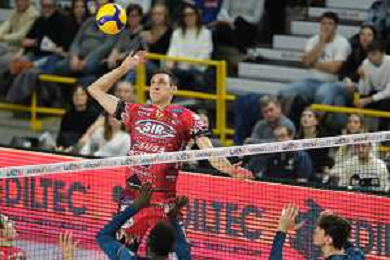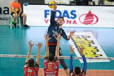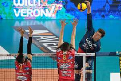 Attacco di Roberto Russo - Sir Safety Susa Perugia durante la partita tra WithU Verona e Sir Safety Susa Perugia valida per la terza giornata del girone di ritorno, campionato italiano di volley maschile serie A Superlega, Verona Italia, 8 Dicembre 2023 presso il pala AGSM-AIM di Verona. FOTO ROBERTO TOMMASINI-AG ALDO LIVERANI SAS