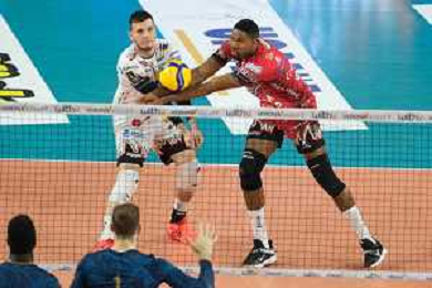 Ricezione in bagher di Wilfredo Leon Venero - Sir Safety Susa Perugia durante la partita tra WithU Verona e Sir Safety Susa Perugia valida per la terza giornata del girone di ritorno, campionato italiano di volley maschile serie A Superlega, Verona Italia, 8 Dicembre 2023 presso il pala AGSM-AIM di Verona. FOTO ROBERTO TOMMASINI-AG ALDO LIVERANI SAS