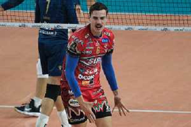 Esultanza di Simone Giannelli - Sir Safety Susa Perugia durante la partita tra WithU Verona e Sir Safety Susa Perugia valida per la terza giornata del girone di ritorno, campionato italiano di volley maschile serie A Superlega, Verona Italia, 8 Dicembre 2023 presso il pala AGSM-AIM di Verona. FOTO ROBERTO TOMMASINI-AG ALDO LIVERANI SAS