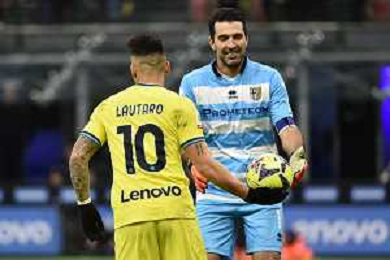 Lautaro Martinez (Inter) e Gianluigi Buffon (Parma) Inter vs Parma Milano 10-01-2023 Stadio Giuseppe Meazza San Siro Coppa Italia Frecciarossa - ottavi di finale foto Roberto Garavaglia/ag. Aldo Liverani sas / AGENZIA ALDO LIVERANI SAS