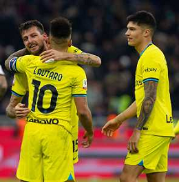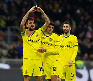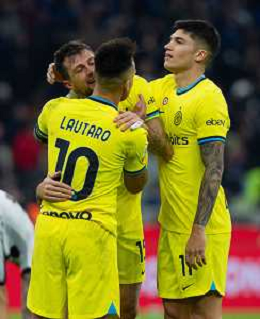 ESULTANZA DOPOGOL FRANCESCO ACERBI CON LAUTARO MARTINEZ E JOAQUIN CORREA - Inter vs Parma Ottavi di Finale Coppa Italia Frecciarossa 10-01-2023 ©Giampietri Paolo / AGENZIA ALDO LIVERANI SAS