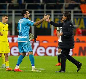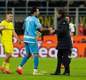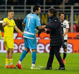 GIANLUIGI BUFFON E SIMONE INZAGHI A FINE GARA- Inter vs Parma Ottavi di Finale Coppa Italia Frecciarossa 10-01-2023 ©Giampietri Paolo / AGENZIA ALDO LIVERANI SAS