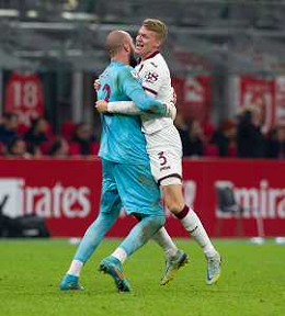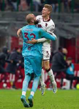 Esultanza a fine gara di vanja milinkovic savic e Perr Schuurs -Milan vs Torino Ottavi di Finale Coppa Italia Frecciarossa Milano 11-01-2023 ©Giampietri Paolo/ AGENZIA ALDO LIVERANI SAS