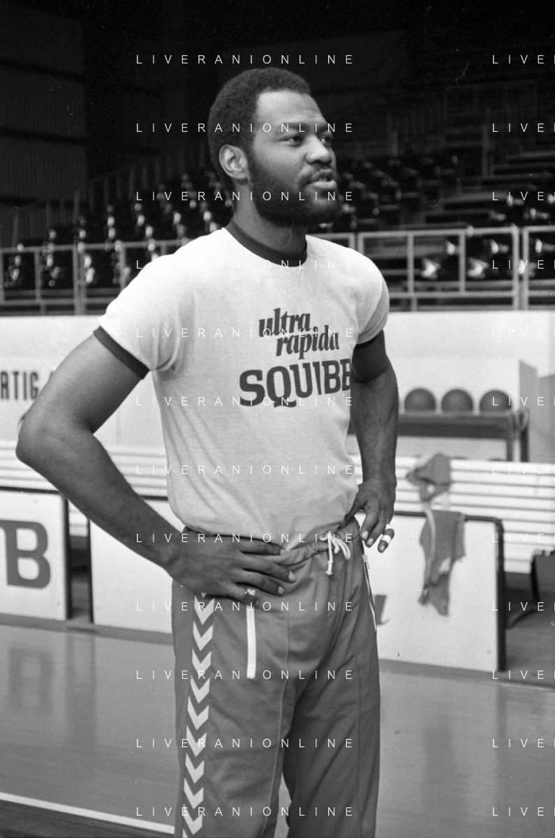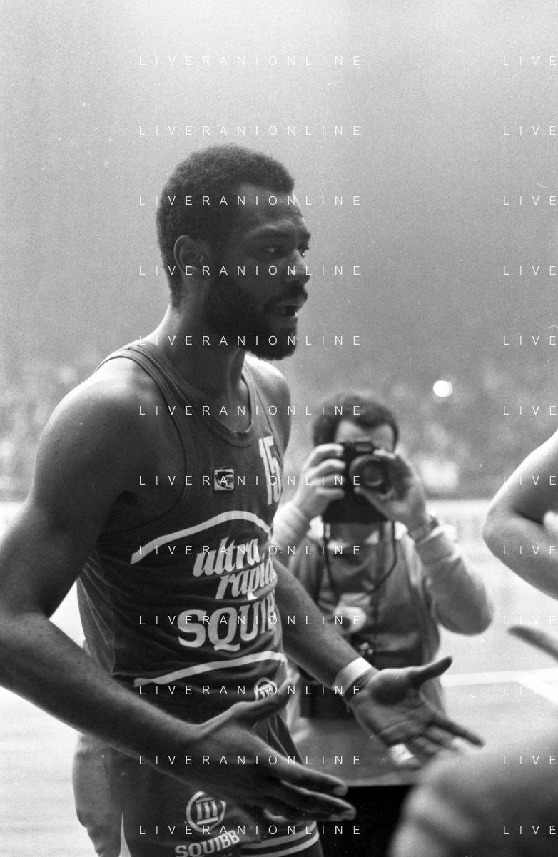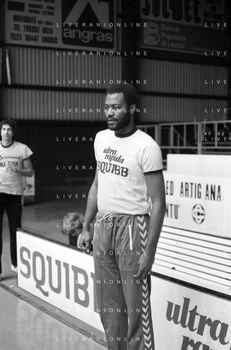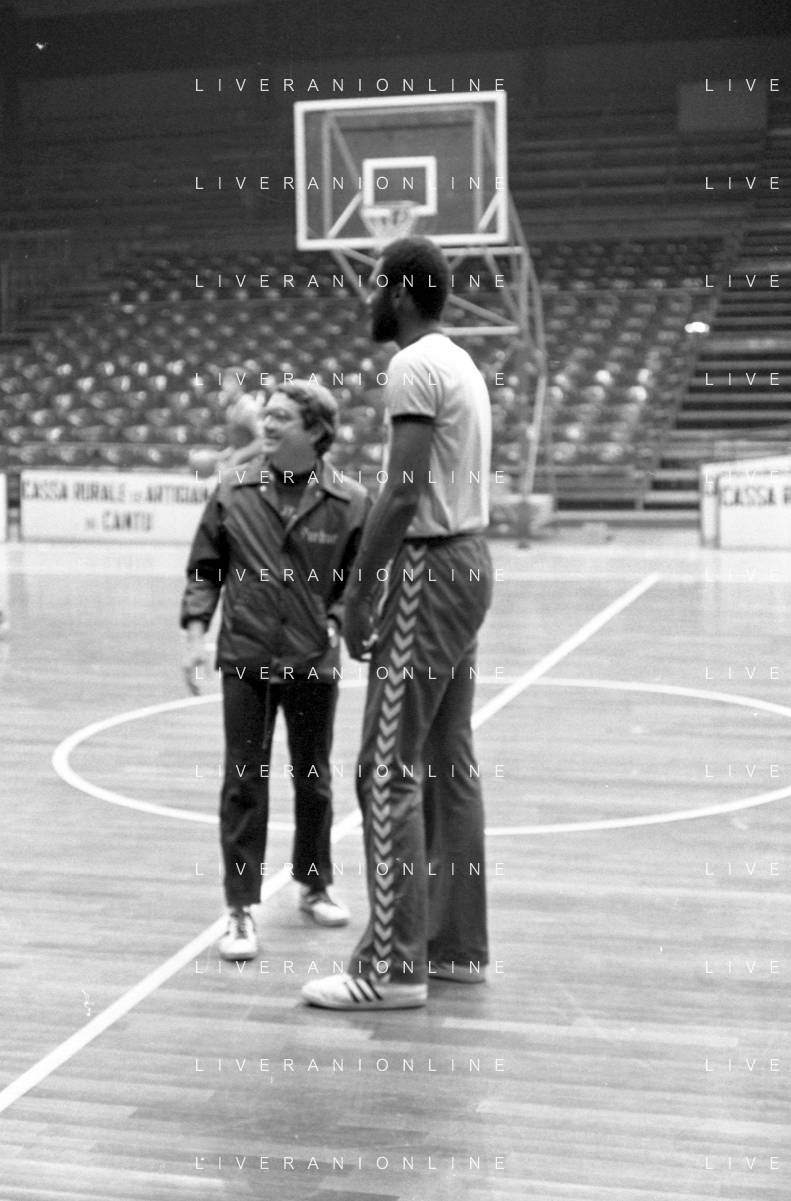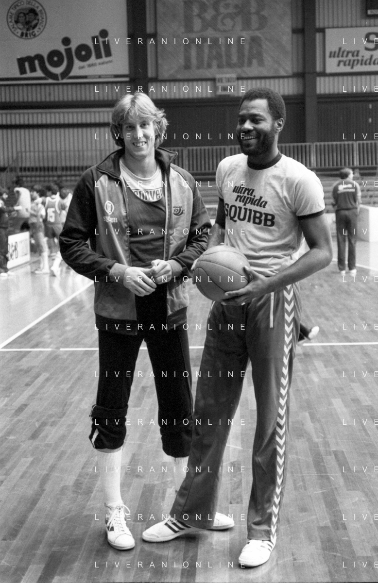 RETROSPETTIVA BASKET TOM BOSWELL GIOCATORE PALLACANESTRO NELLA FOTO CON LA MAGLIA DELLA SQUIBB CANTU' NELL'ANNO 1980-1981 CON BRUCE FLOWERS AG ALDO LIVERANI SAS