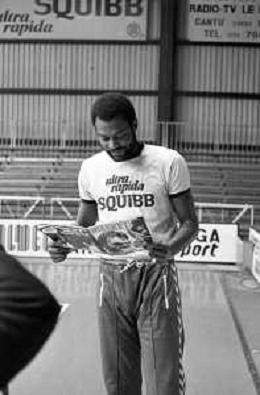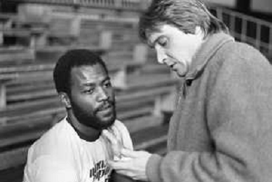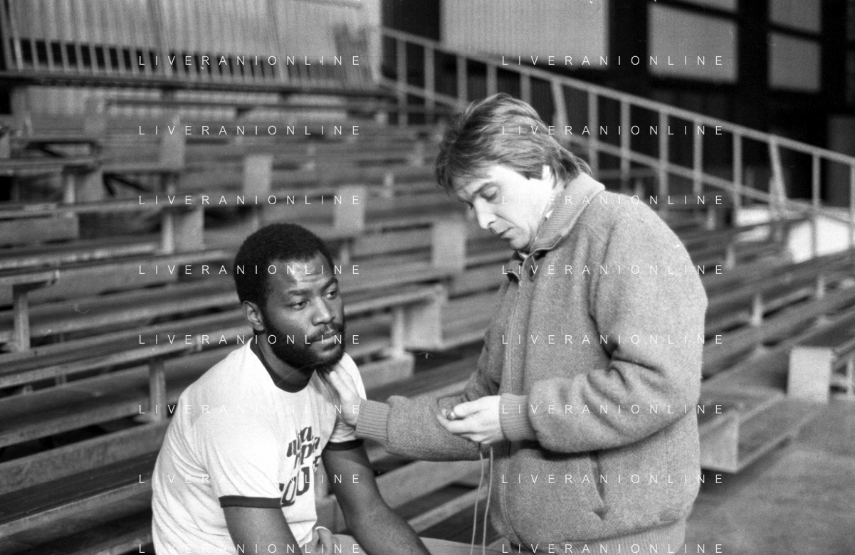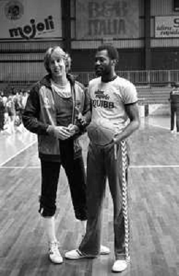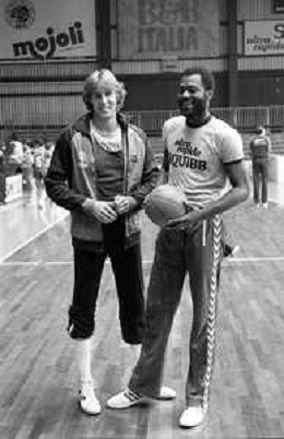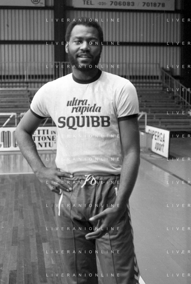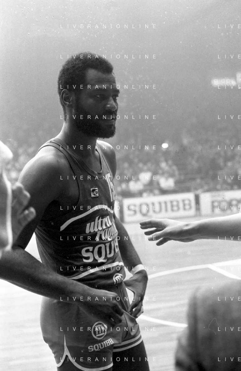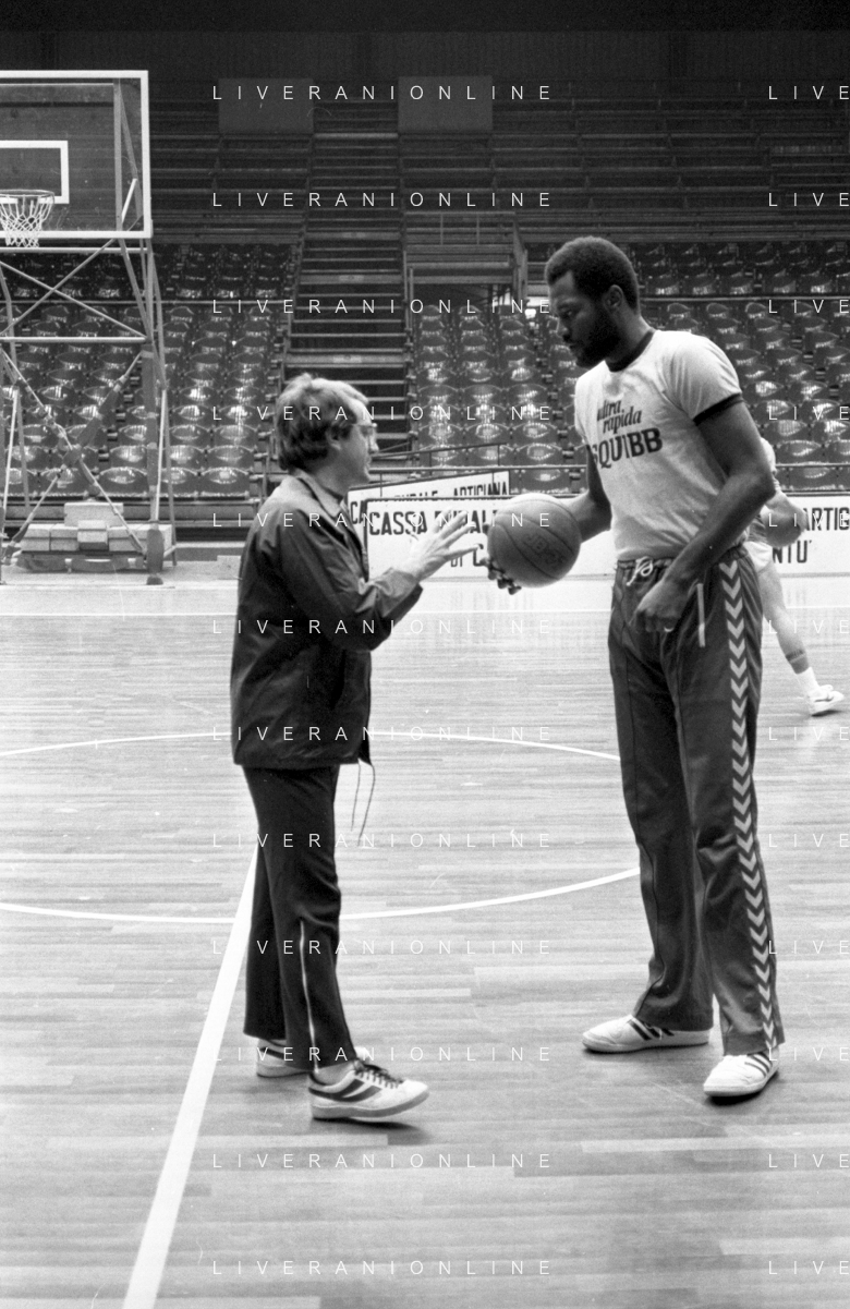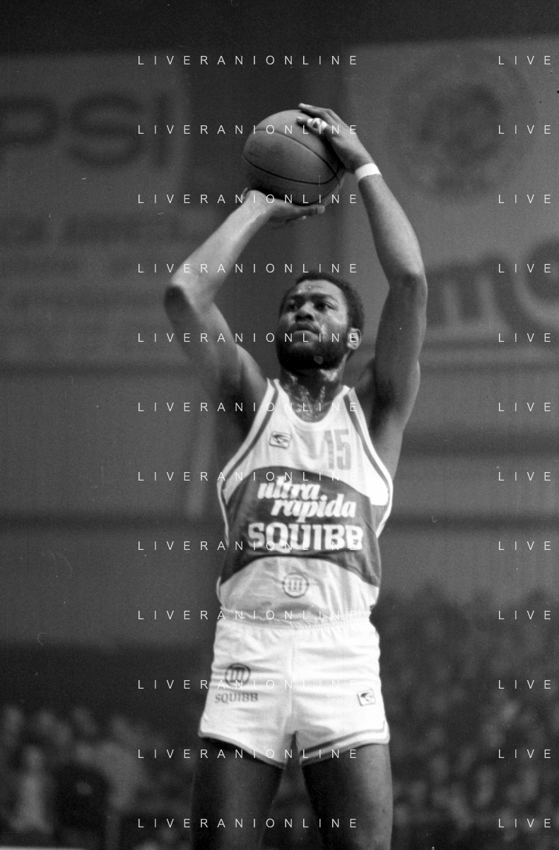 RETROSPETTIVA BASKET TOM BOSWELL GIOCATORE PALLACANESTRO NELLA FOTO CON LA MAGLIA DELLA SQUIBB CANTU' NELL'ANNO 1980-1981 CON BRUCE FLOWERS AG ALDO LIVERANI SAS