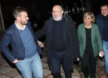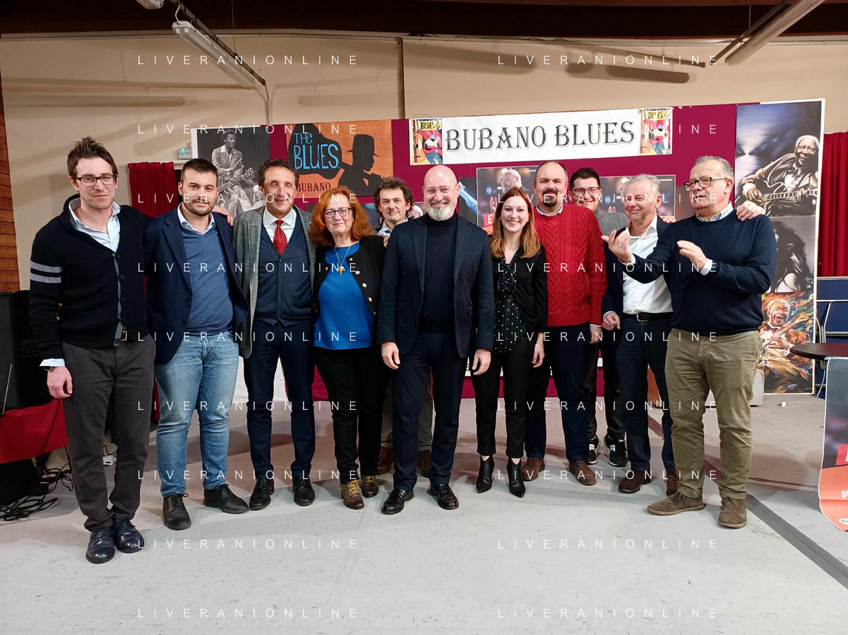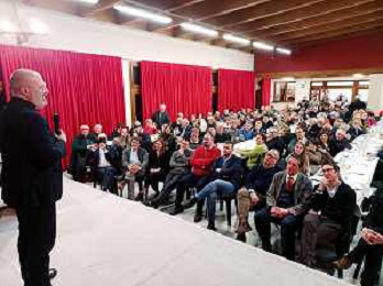 IMOLA 19 01 2023 BUBANO DI MORDANO CENA DI AUTOFINANZIAMENTO DEL PARTITO DEMOCRATICO OSPITE CANDIDATO PER IL SEGRETARIO NAZIONALE PRESIDENTE DELLA REGIONE EMILIA ROMAGNA STEFANO BONACCINI NELLA FOTO DA SINISTRA I SINDACI NICOLA TASSINARI MARCO PANIERI DANIELE BASSI PAOLA PULA MAURO GHINI PRESIDENTE DELLA REGIONE EMILIA ROMAGNA STEFANO BONACCINI,BEATRICE POLI GABRIELE MELUZZI MATTEO MONTANARI CLAUDIO FRANCESCHI E FAUSTO TINTI ©SANNA / AGENZIA ALDO LIVERANI SAS