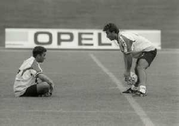 1995 MILANELLO- ALLENAMENTO NAZIONALE ITALIANA DI CALCIO NELLA FOTO ROBERTO DI MATTEO E PIERLUIGI CASIRAGHI AG ALDO LIVERANI SAS