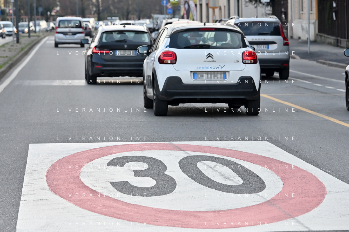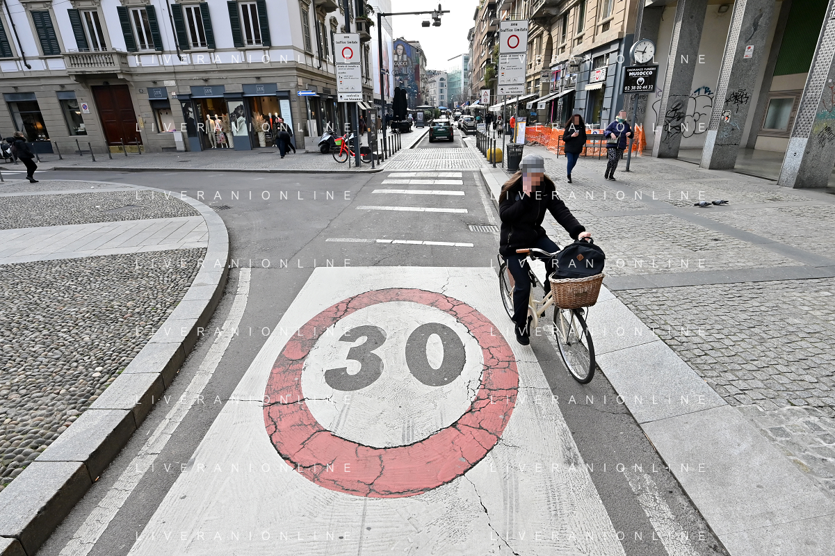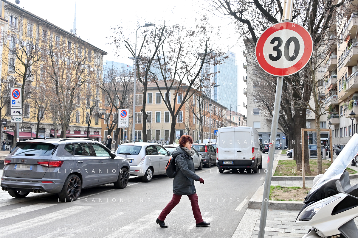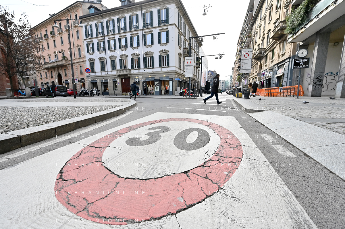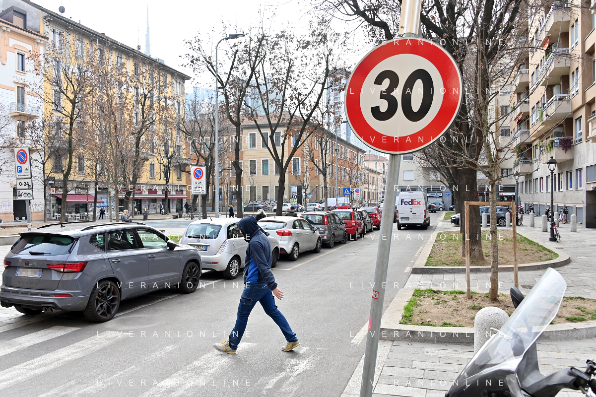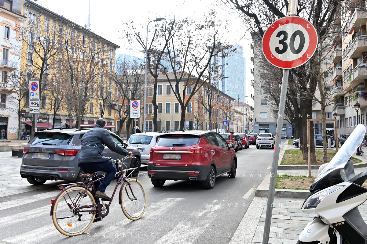TVRG Zona 30 Milano Milano 26-01-2023 Zone della citta' dove e' presente il limite di velocita' a 30 Km all'ora, zona 30 foto Roberto Garavaglia/ag. Aldo Liverani sas / AGENZIA ALDO LIVERANI SAS