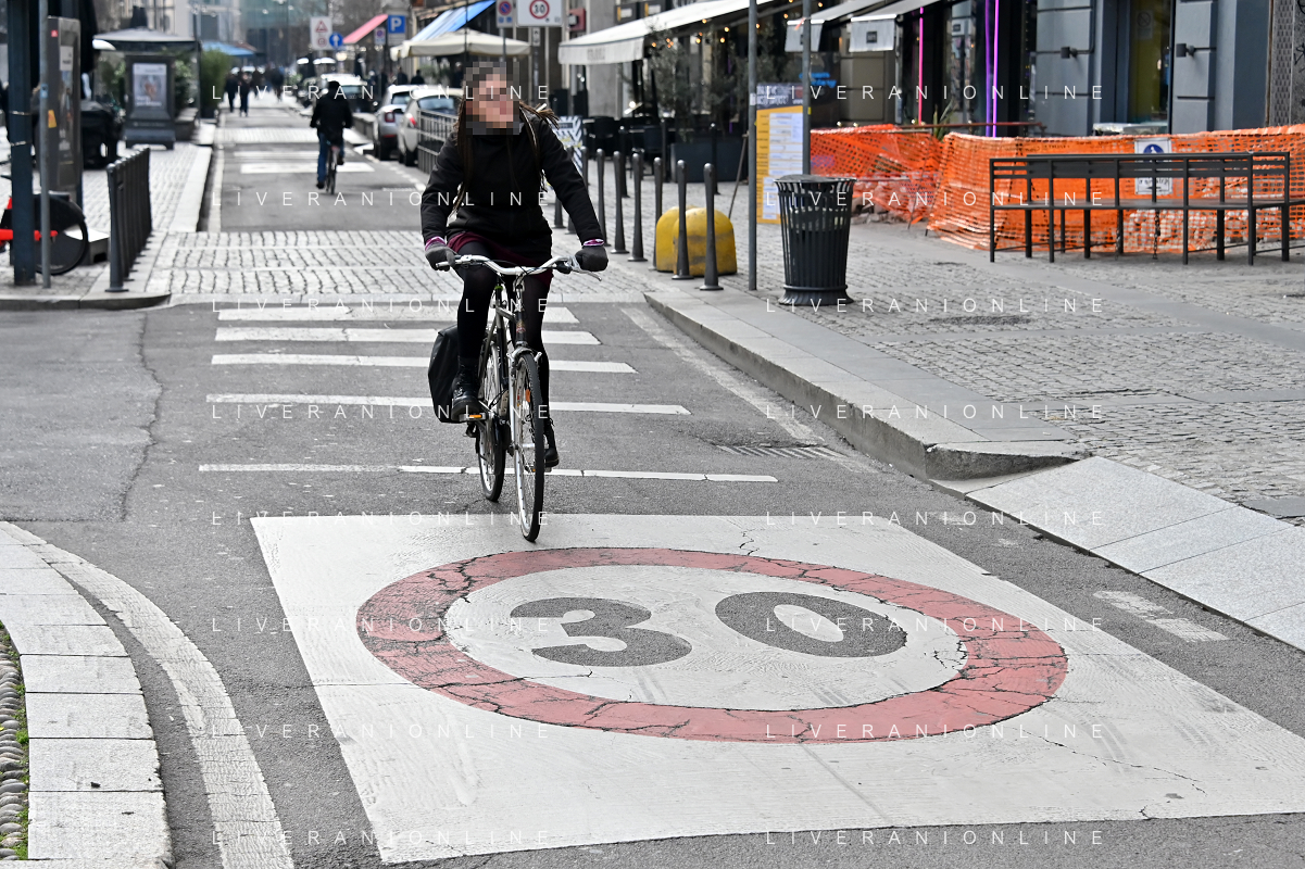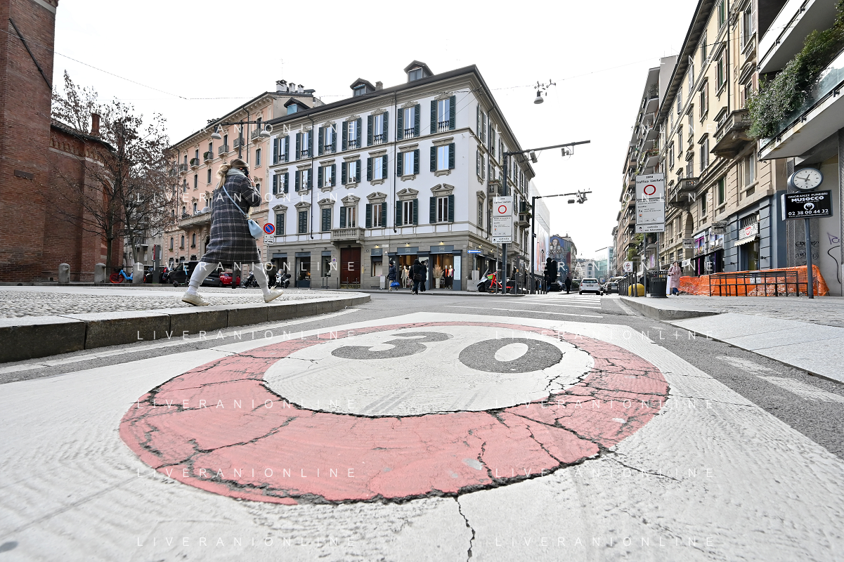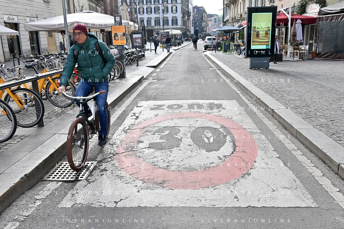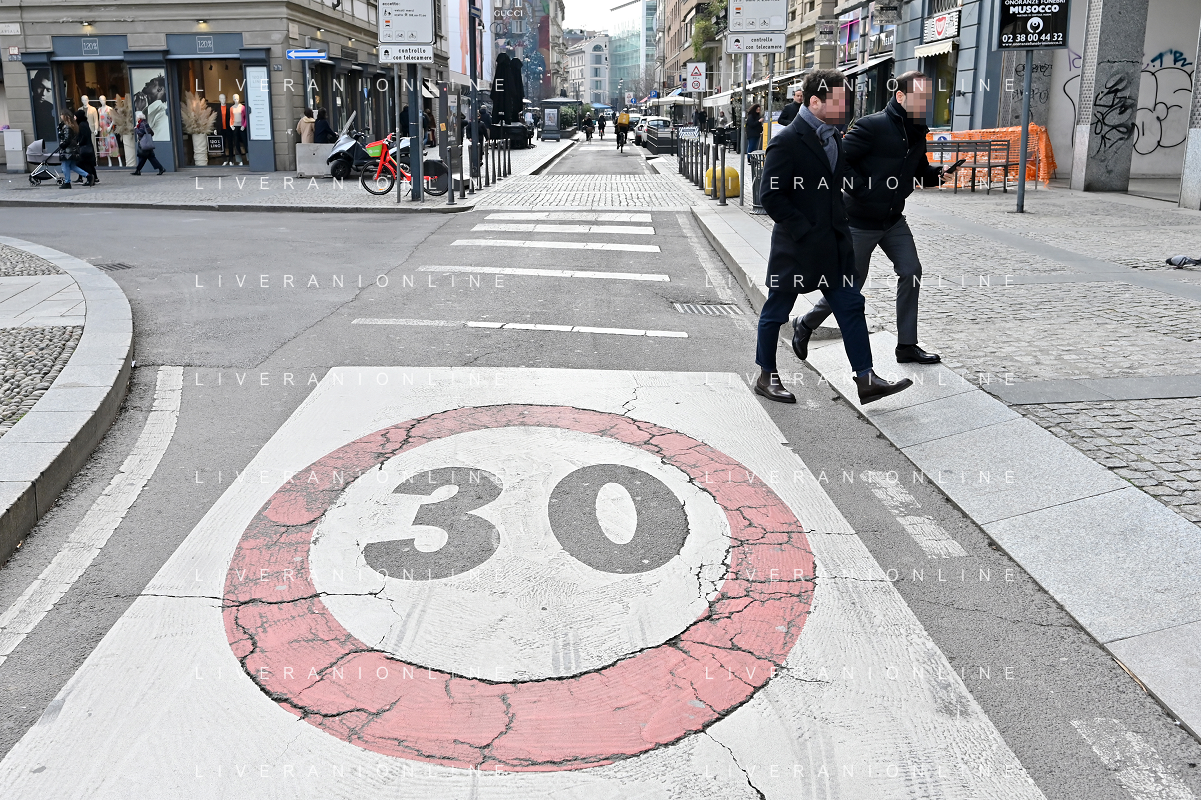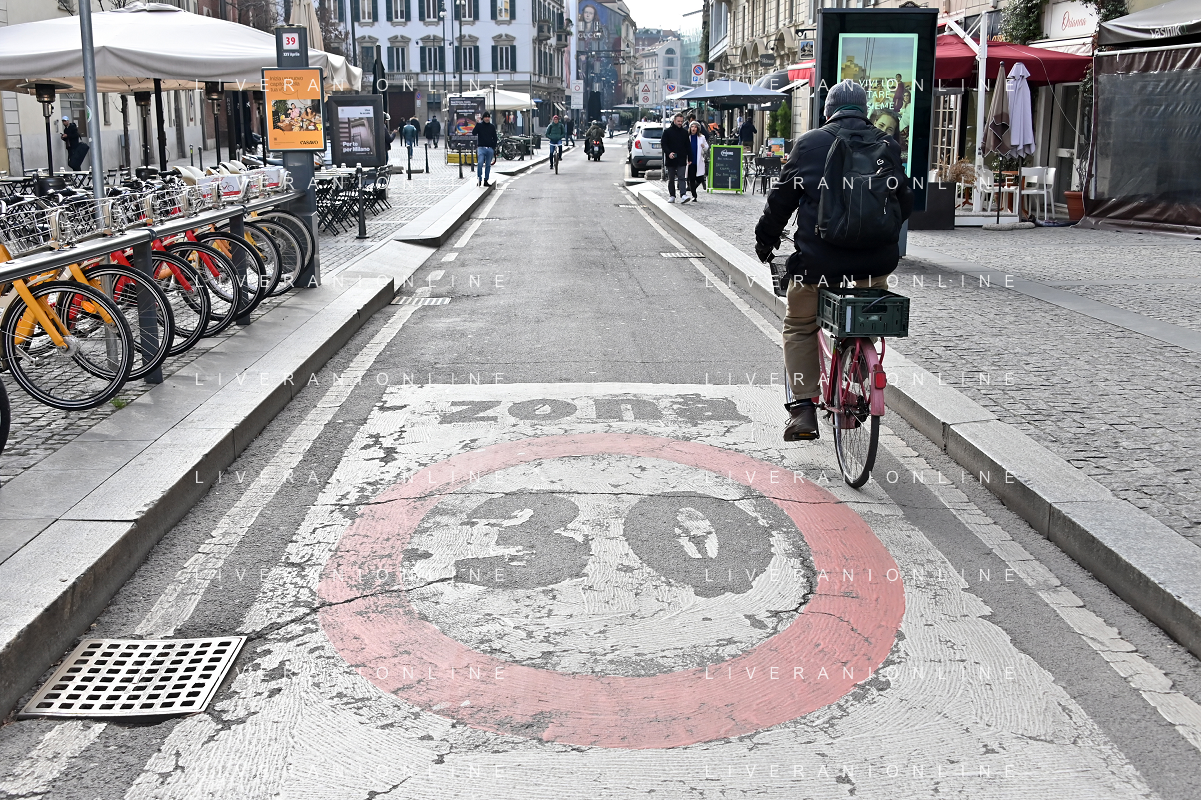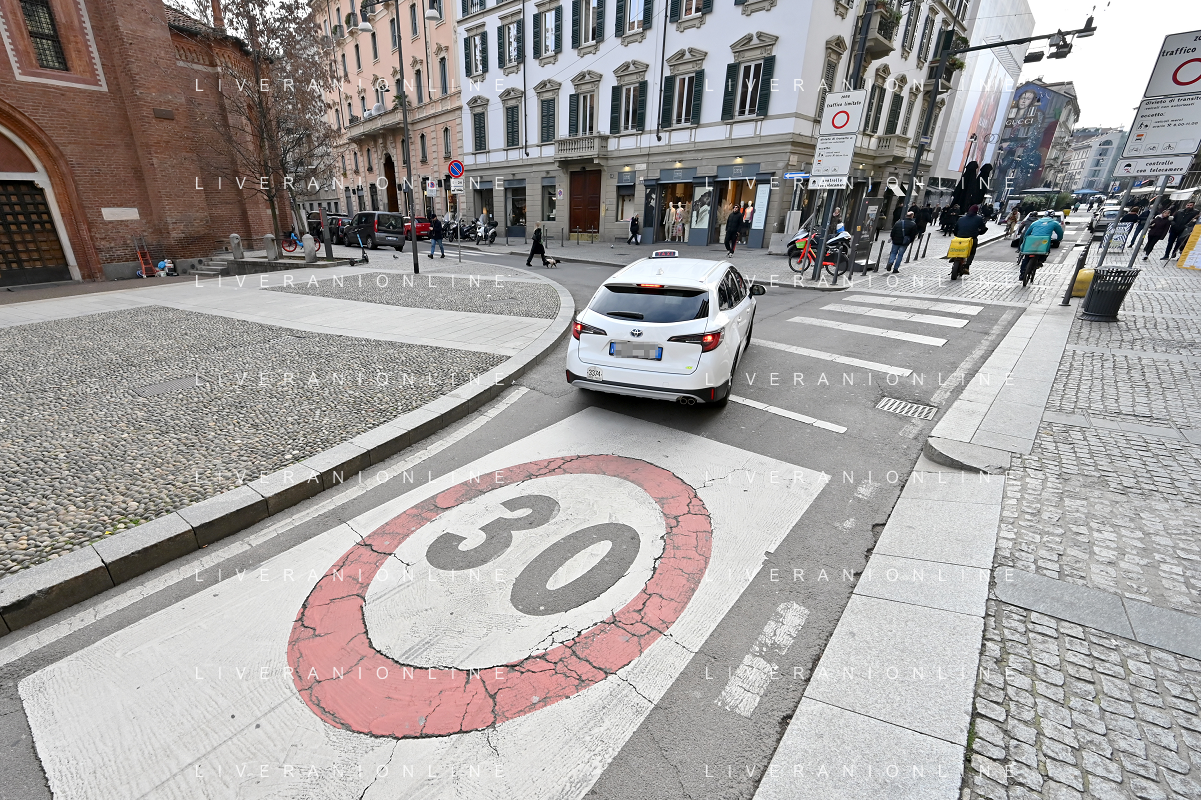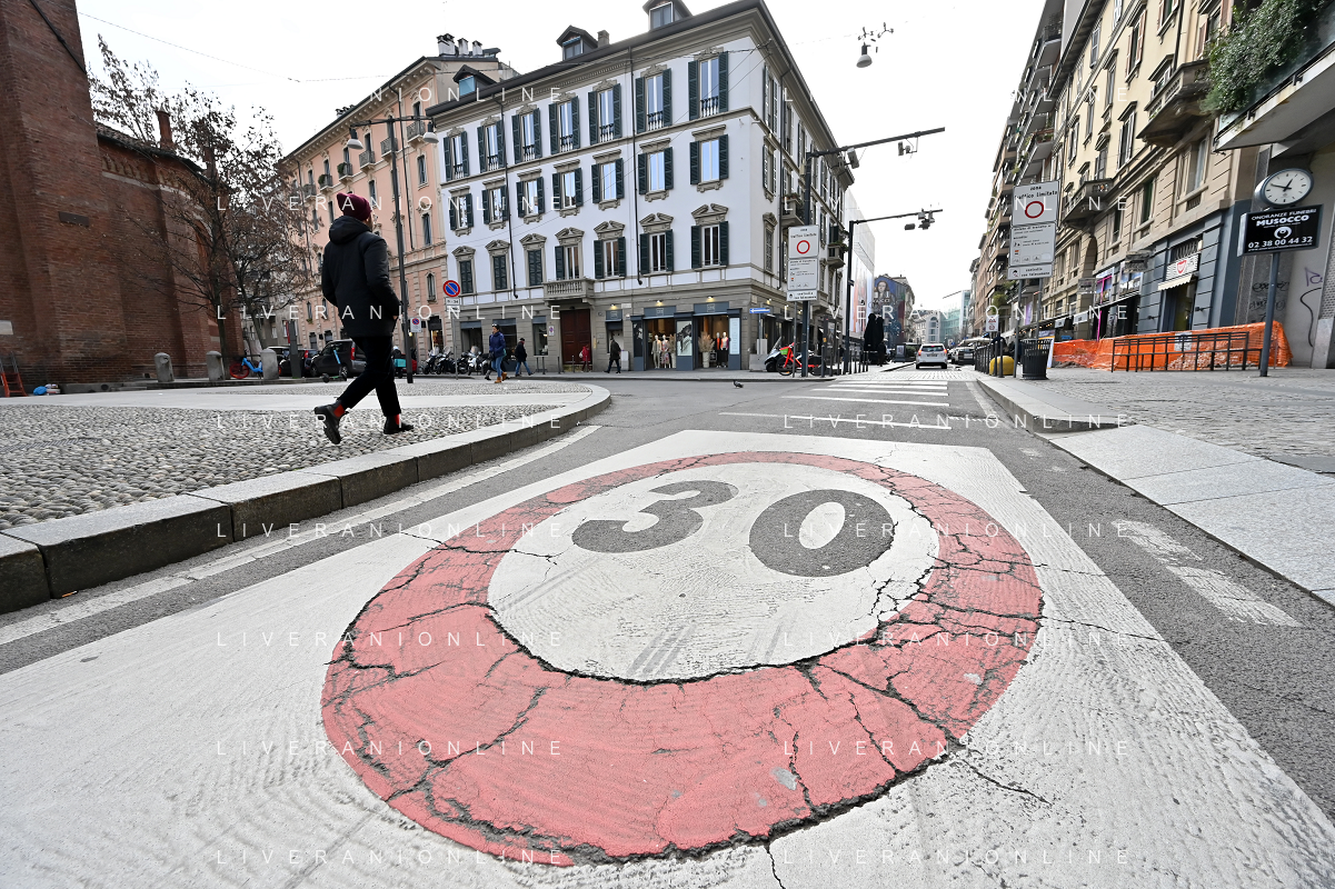 TVRG Zona 30 Milano Milano 26-01-2023 Zone della citta' dove e' presente il limite di velocita' a 30 Km all'ora, zona 30 foto Roberto Garavaglia/ag. Aldo Liverani sas / AGENZIA ALDO LIVERANI SAS