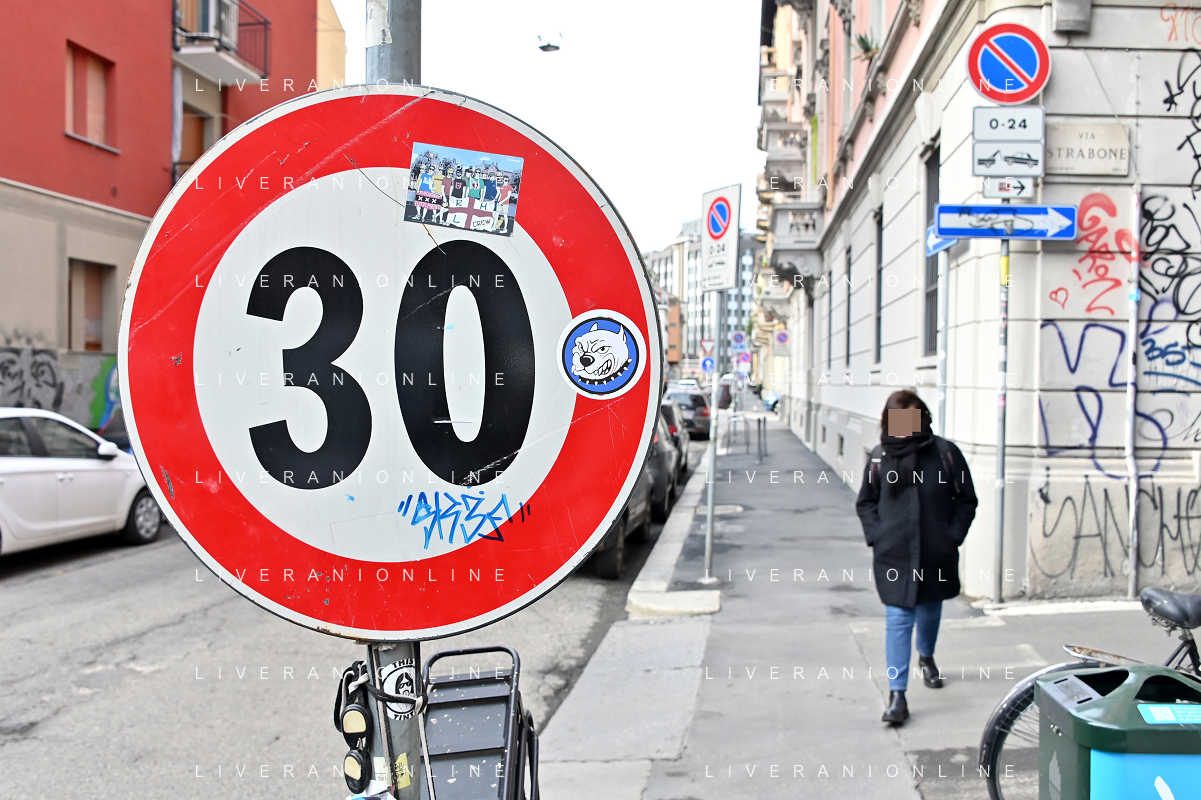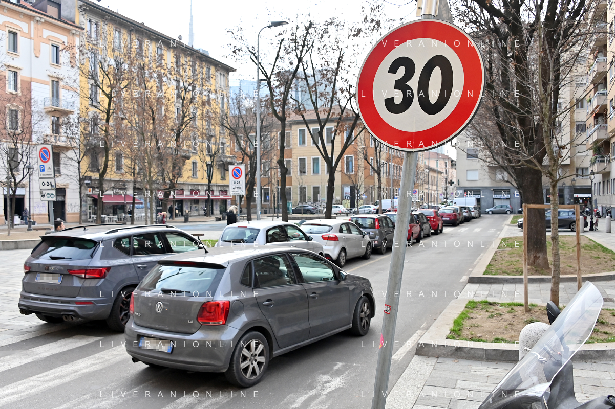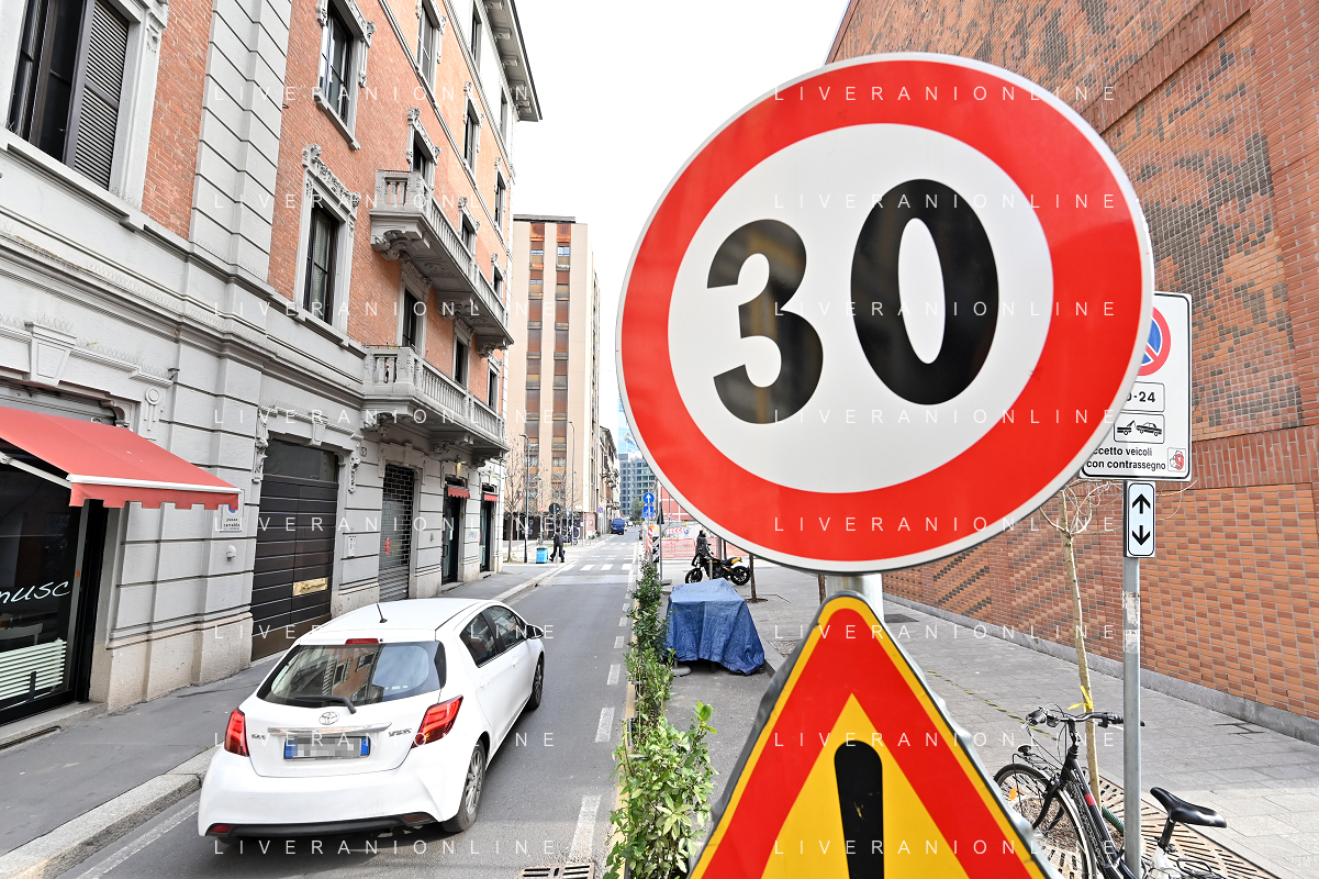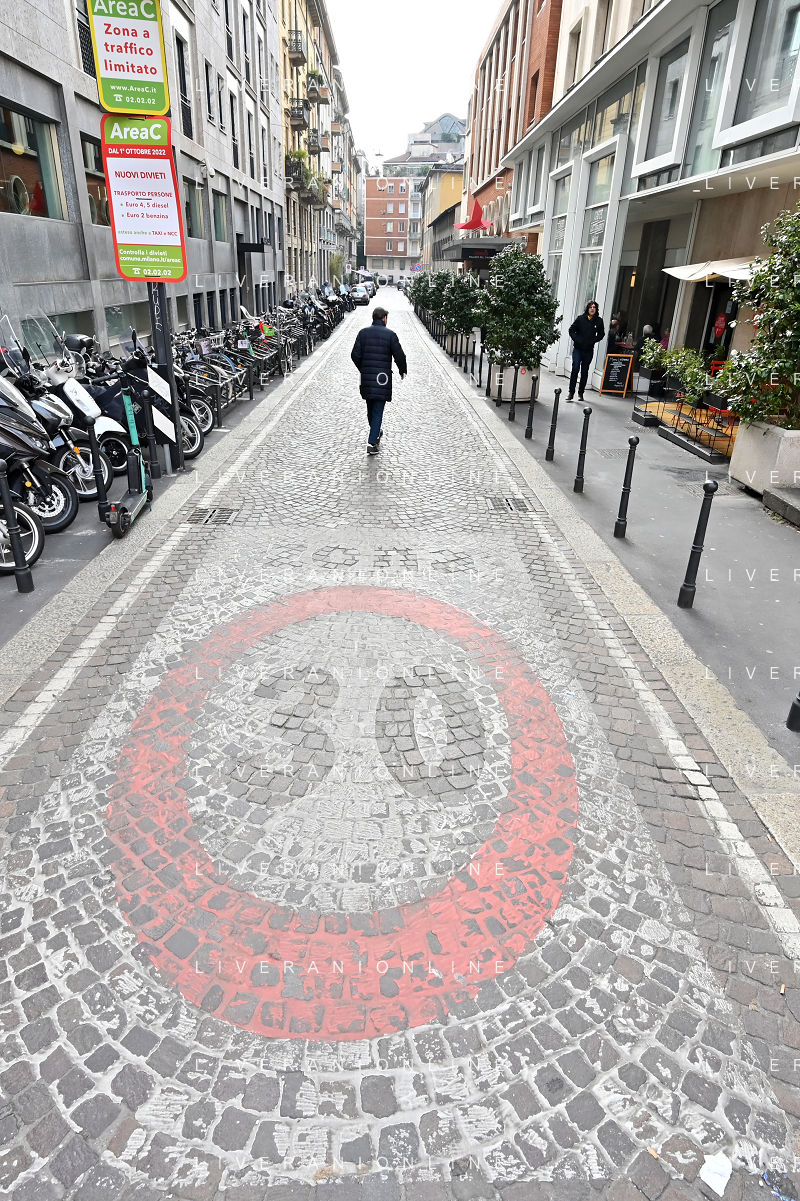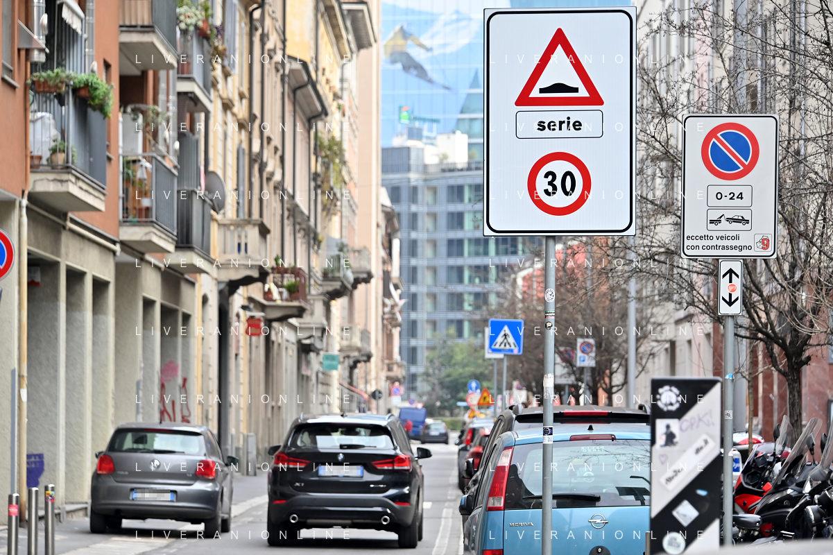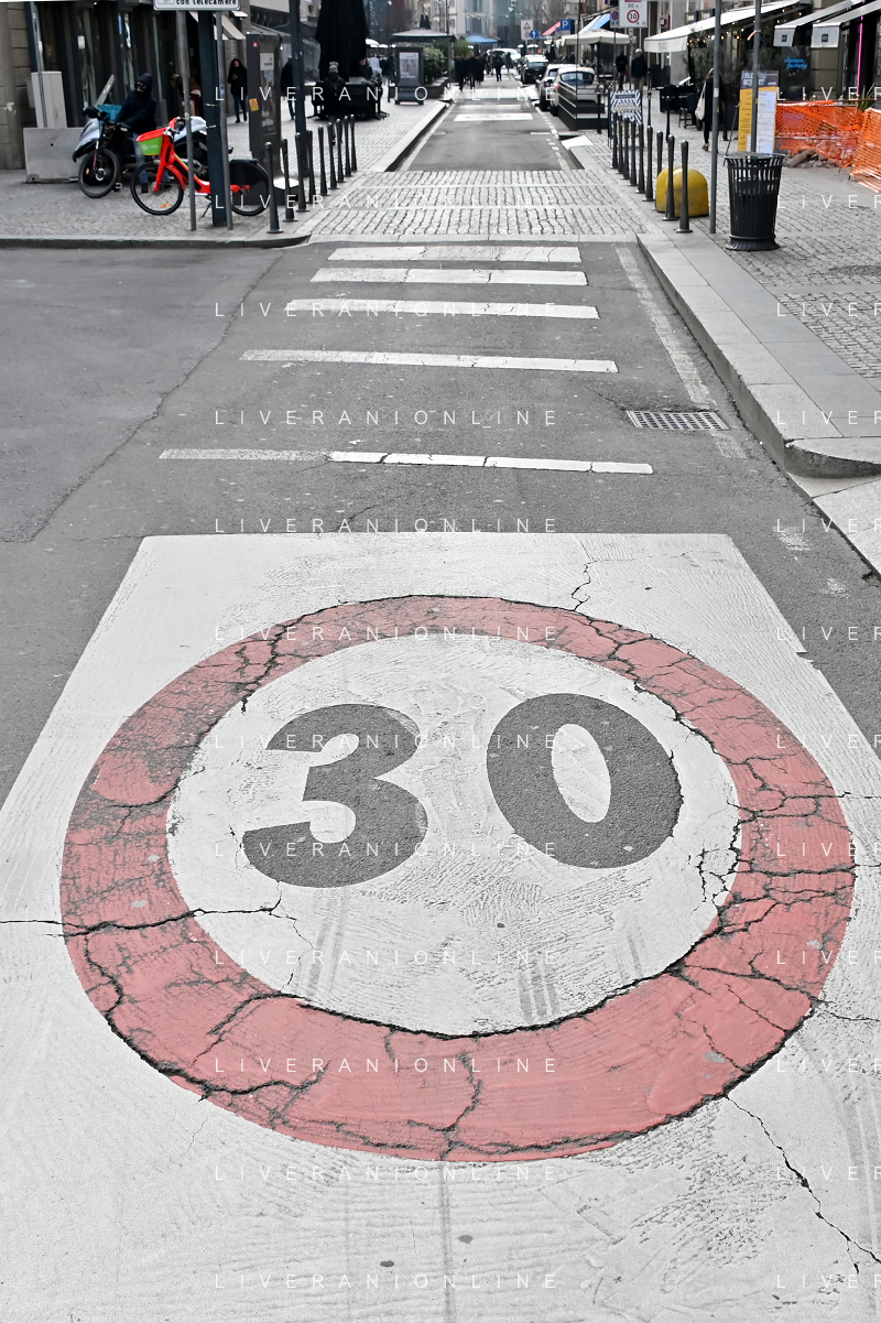 TVRG Zona 30 Milano Milano 26-01-2023 Zone della citta' dove e' presente il limite di velocita' a 30 Km all'ora, zona 30 foto Roberto Garavaglia/ag. Aldo Liverani sas / AGENZIA ALDO LIVERANI SAS