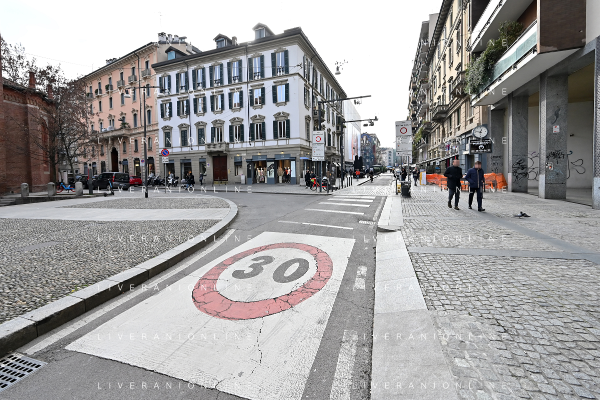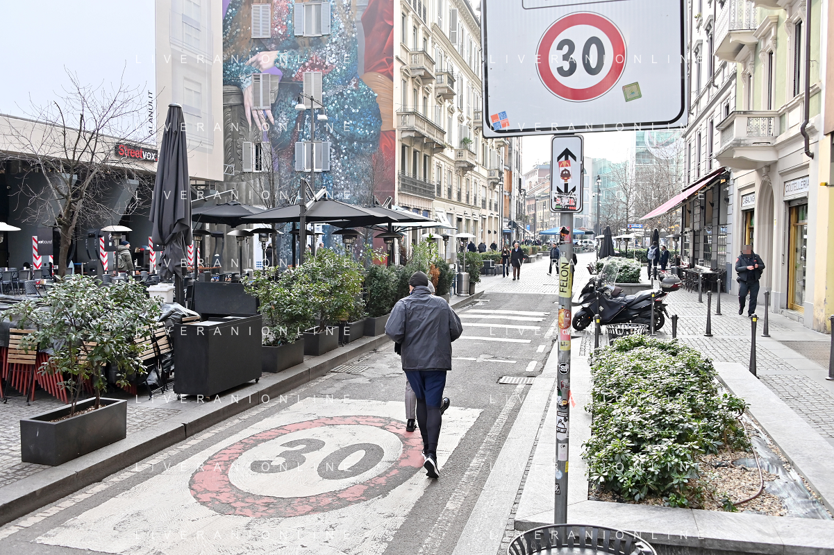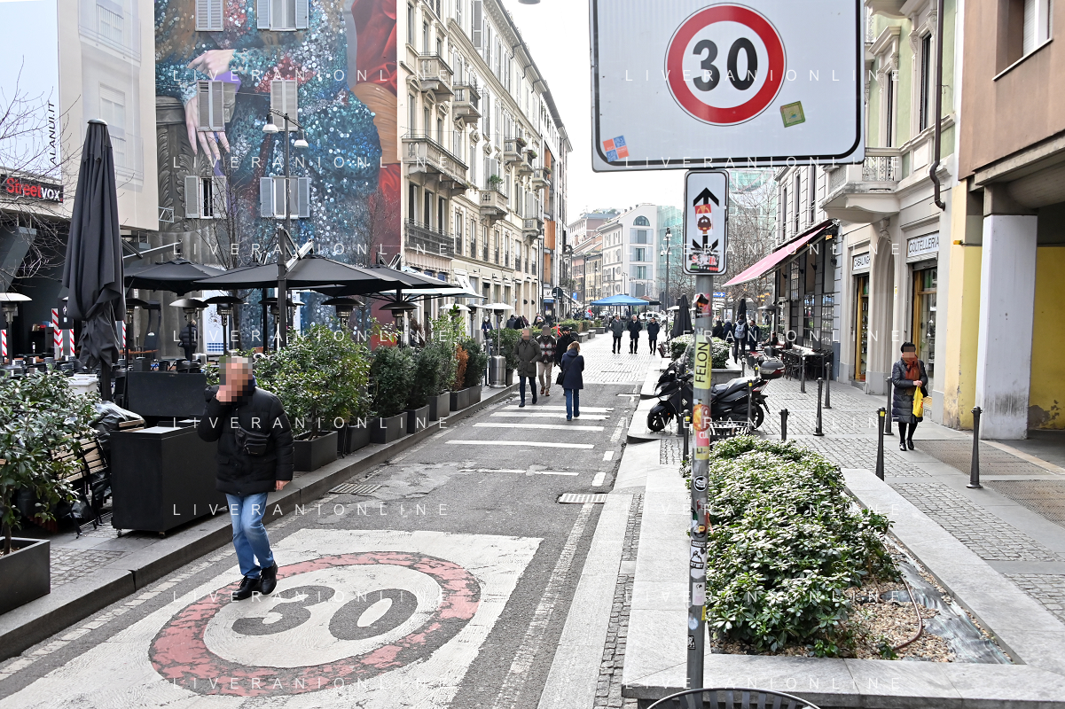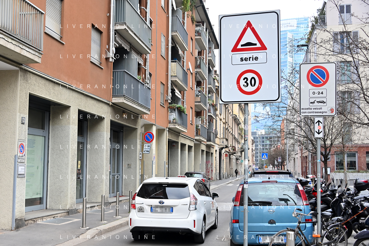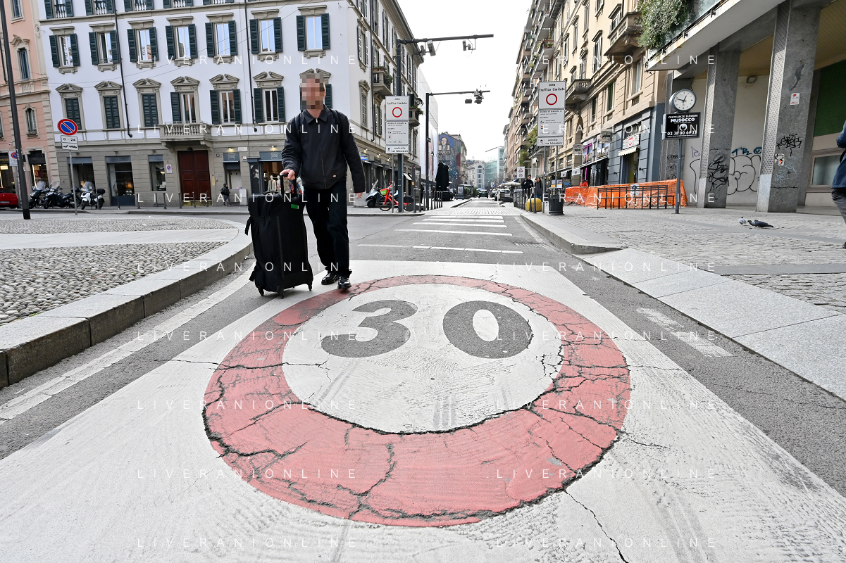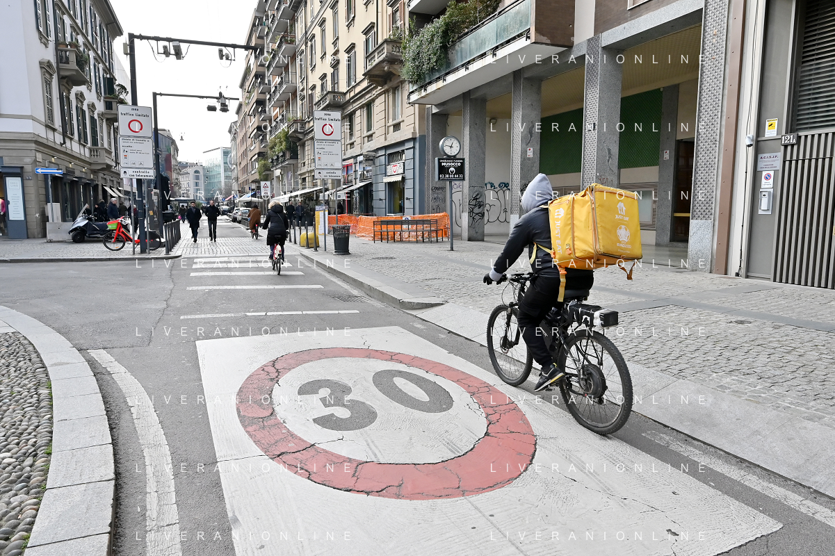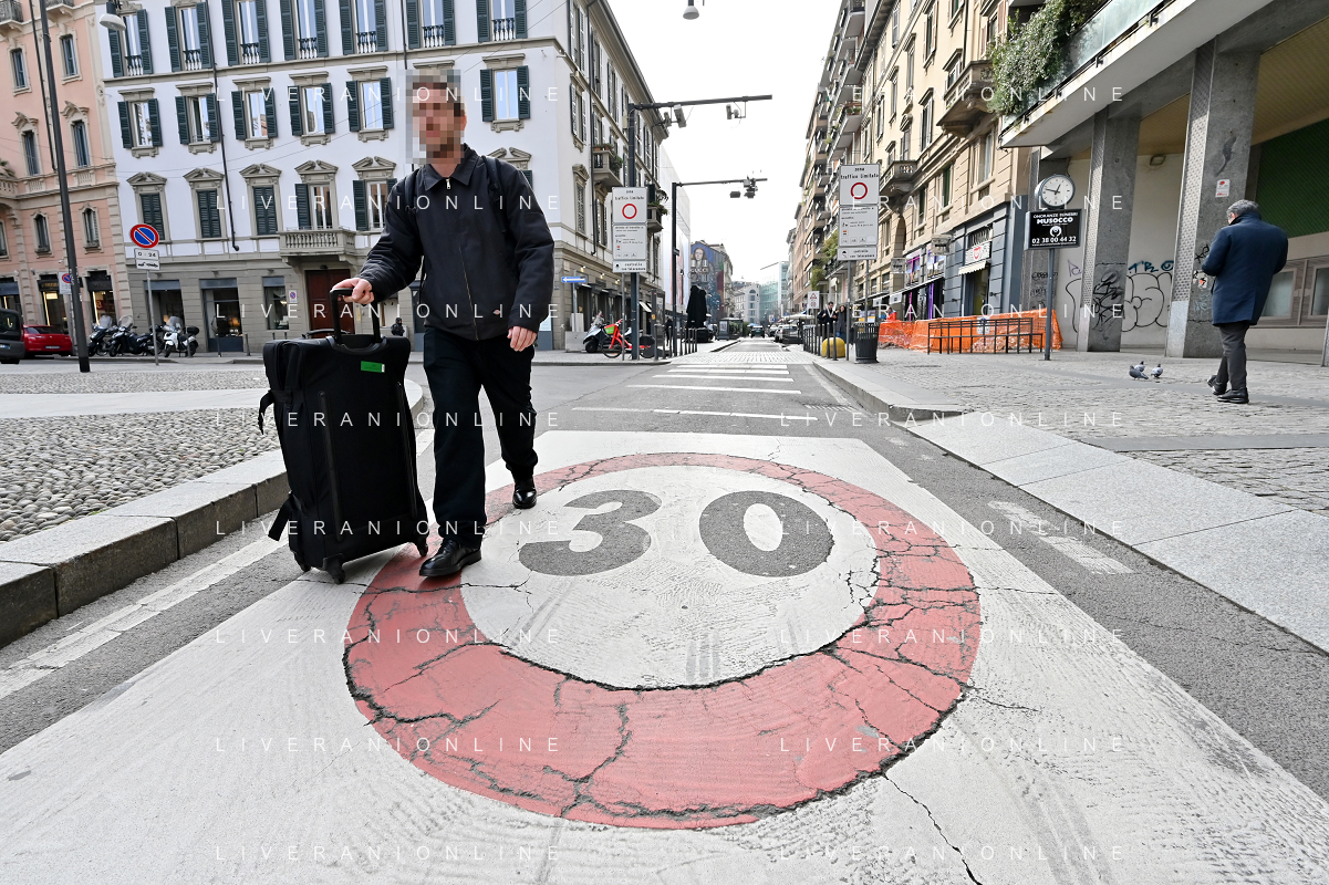 TVRG Zona 30 Milano Milano 26-01-2023 Zone della citta' dove e' presente il limite di velocita' a 30 Km all'ora, zona 30 foto Roberto Garavaglia/ag. Aldo Liverani sas / AGENZIA ALDO LIVERANI SAS