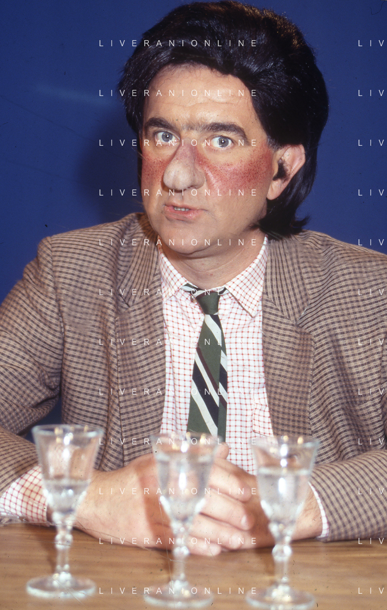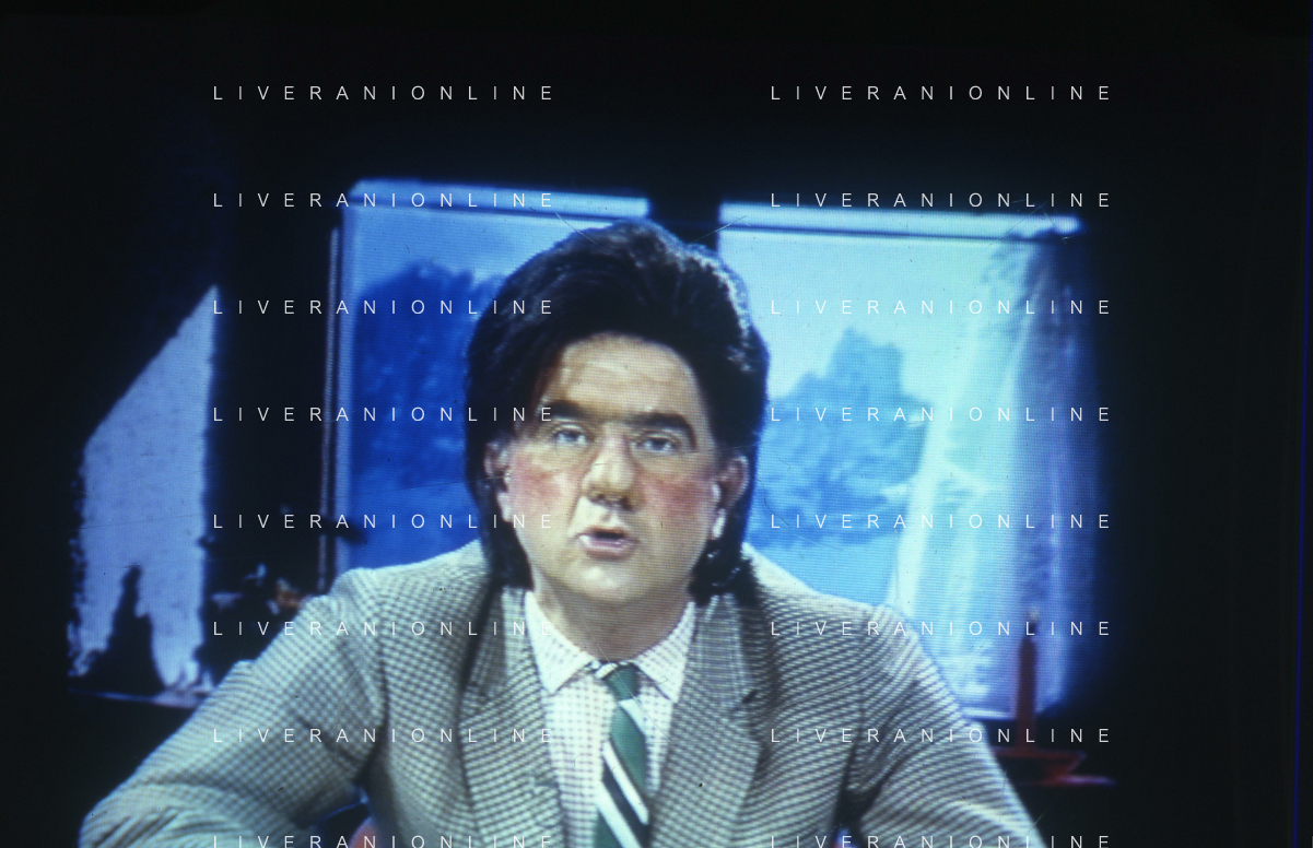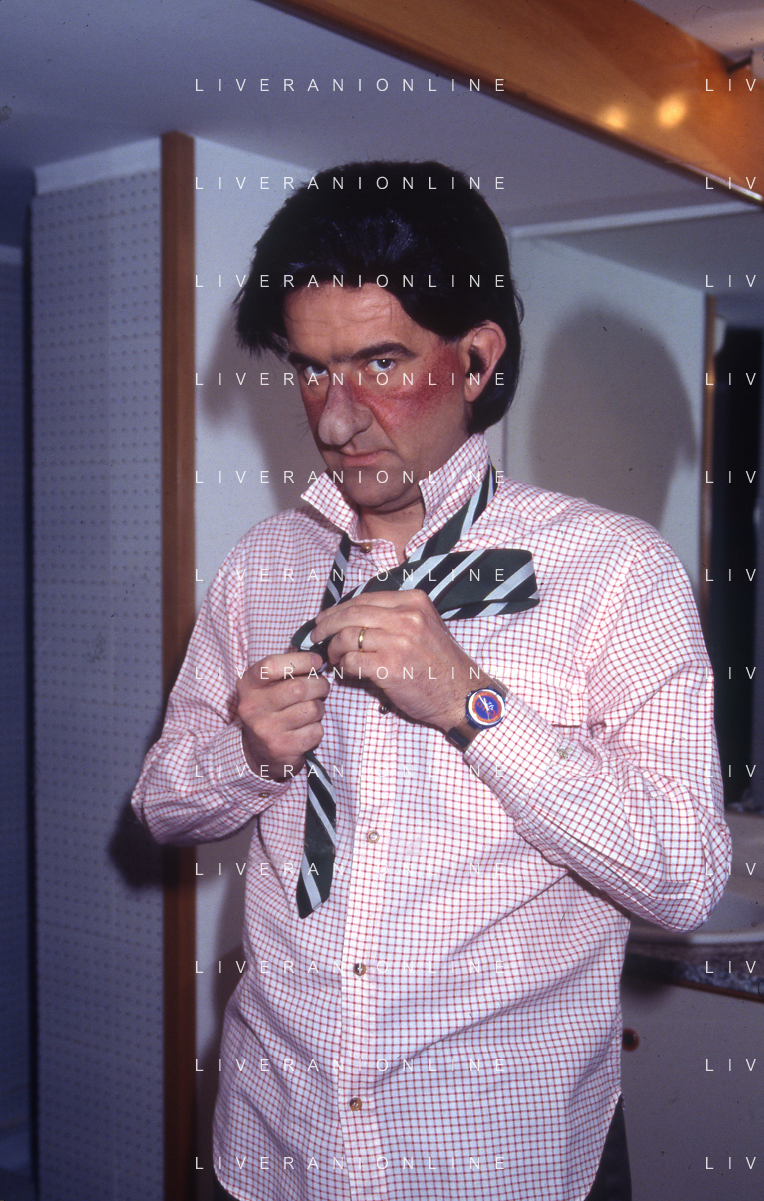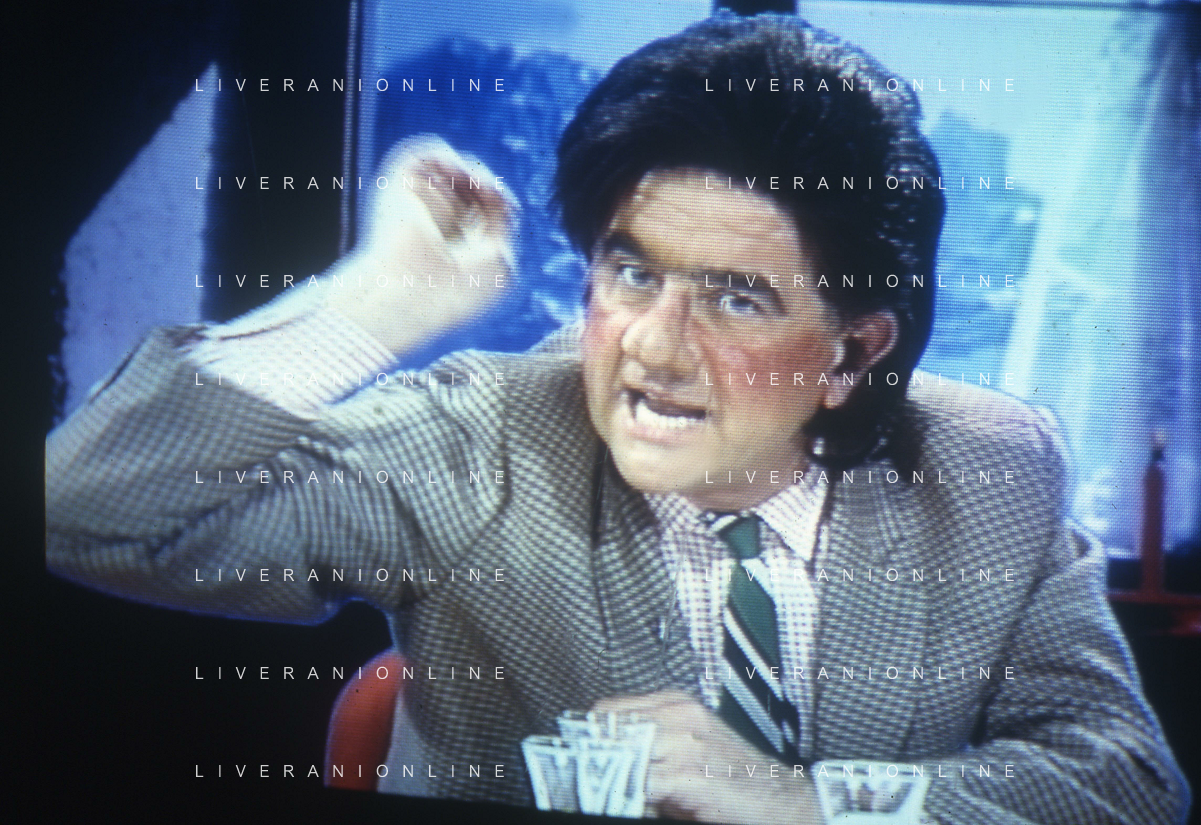 RETROOSPETTIVA GENE GNOCCHI ATTORE NELLA FOTO GENE GNOCCHI IMITA HERMES RUBAGOTTI NELL'ANNO 1993 NELLA TRASMISSIONE TELEVISIVA “MAI DIRE GOAL“ AG ALDO LIVERANI SAS