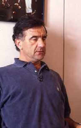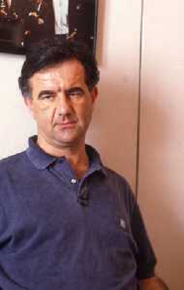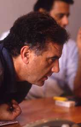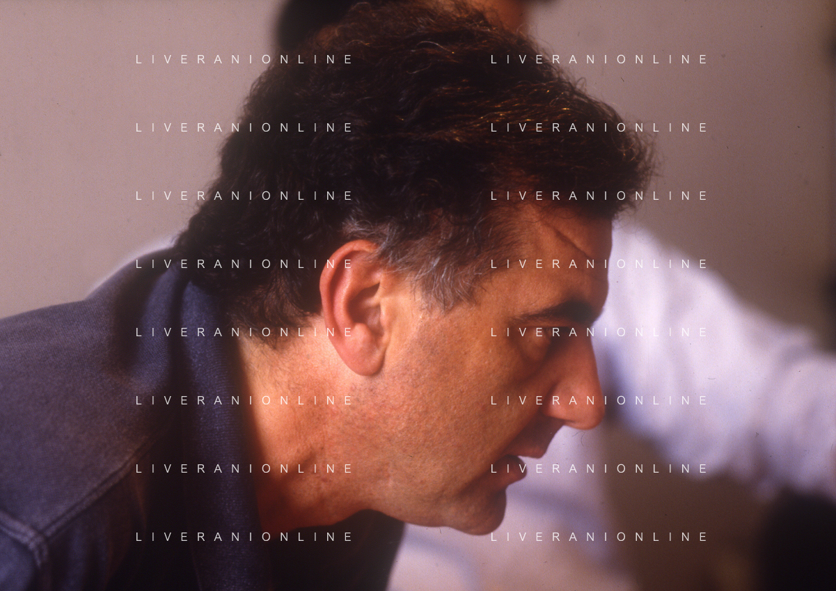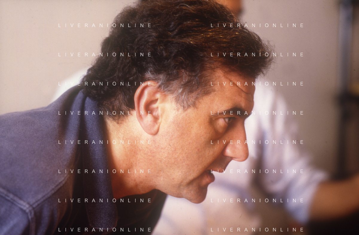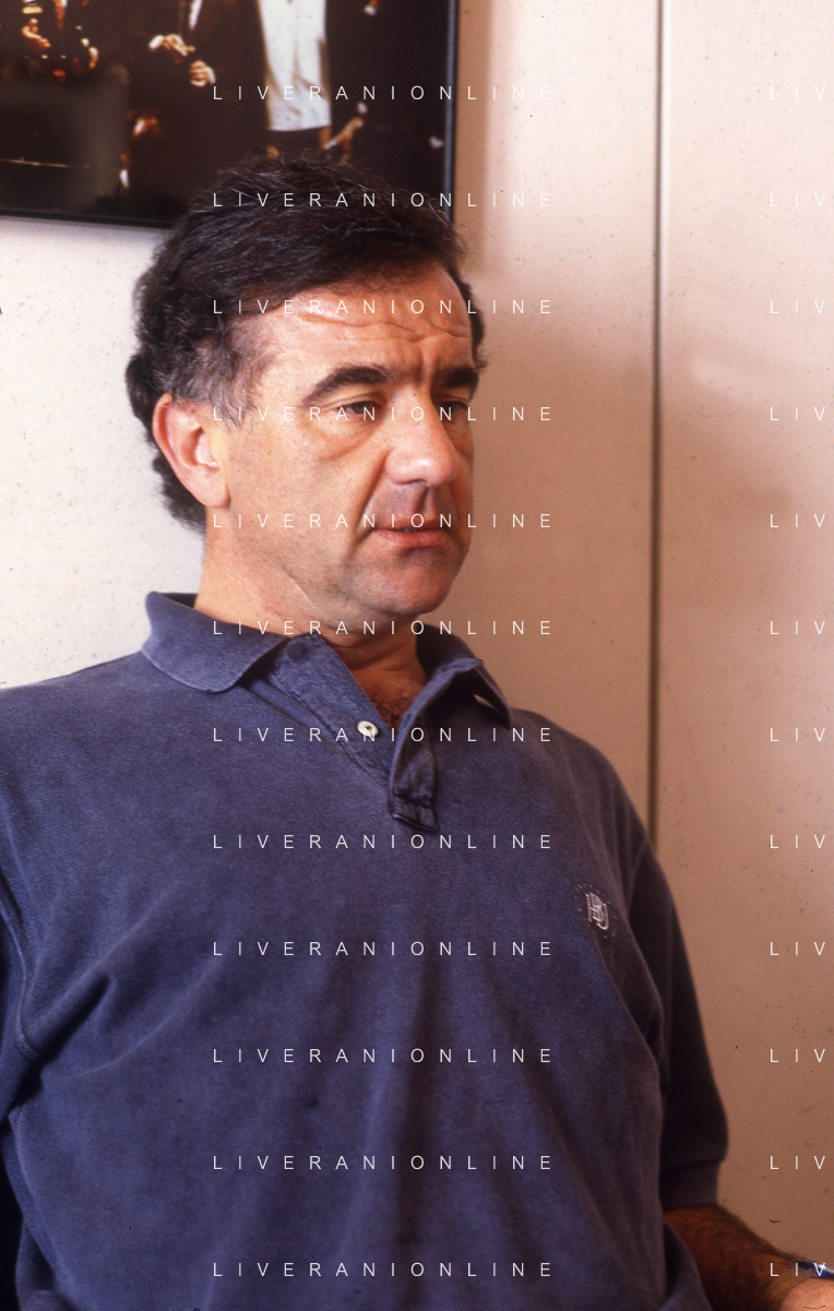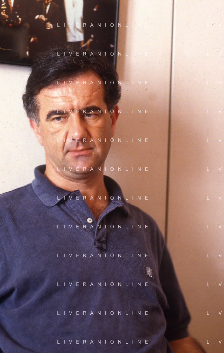 1993 MILANO REDAZIONE DELLA GAZZETTA DELLO SPORT OSPITE PER LE TELEFONATE COI LETTORI GENE GNOCCHI E TEO TEOCOLI NELLA FOTO GENE GNOCCHI AG ALDO LIVERANI SAS