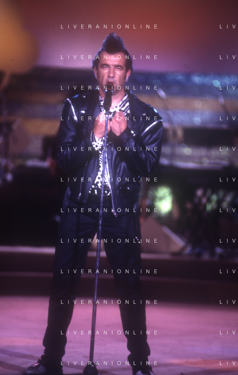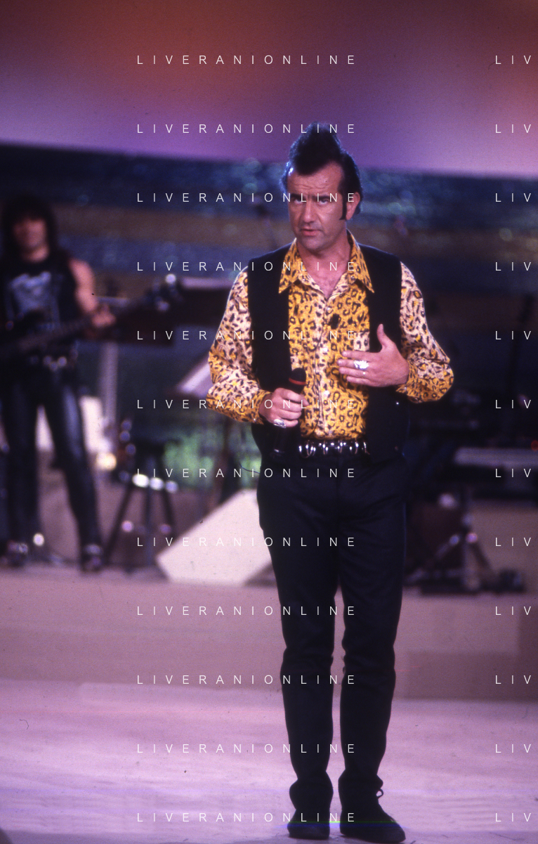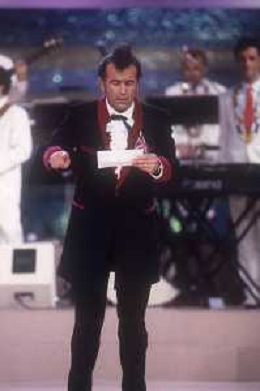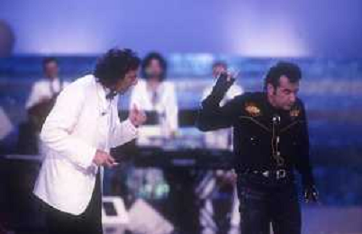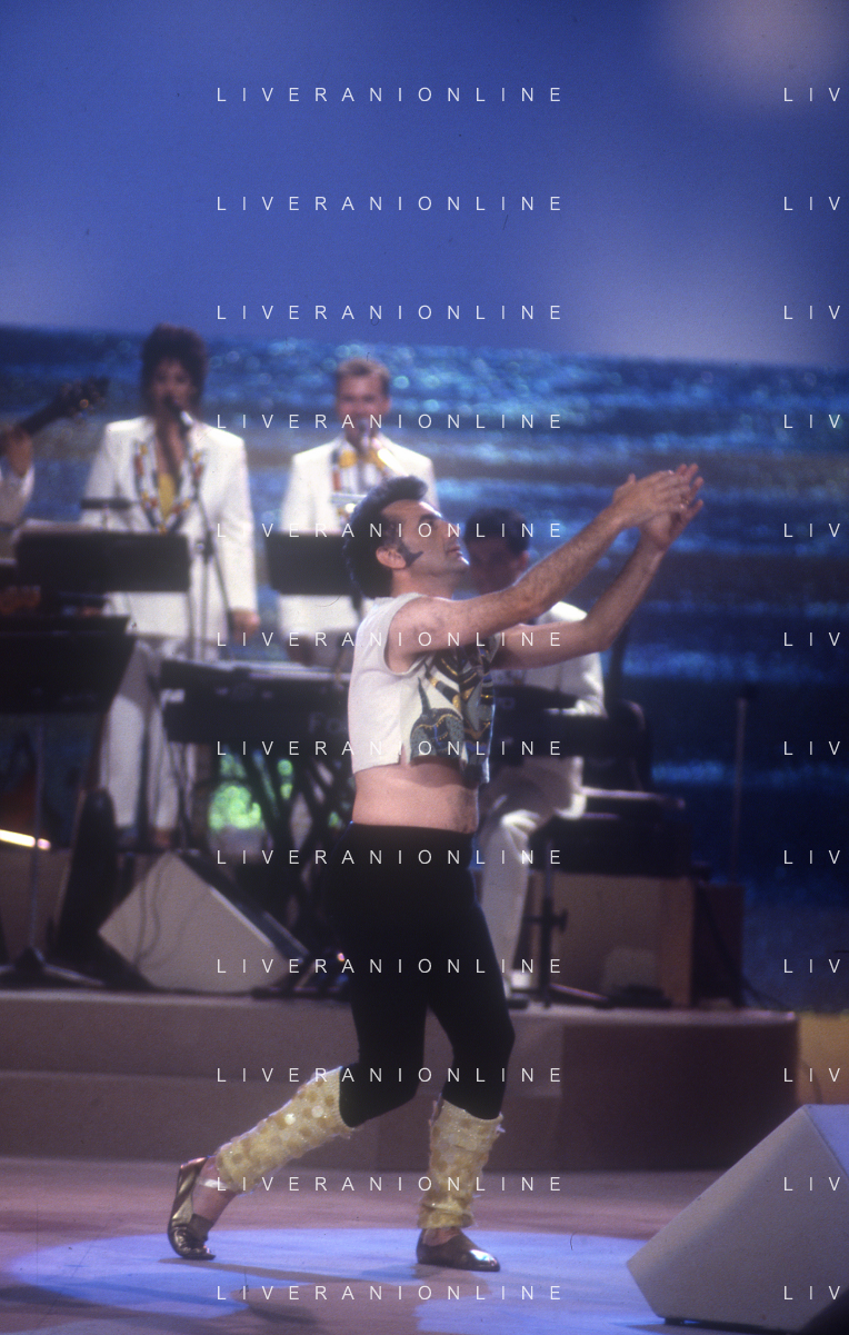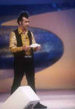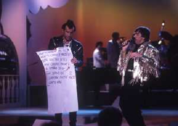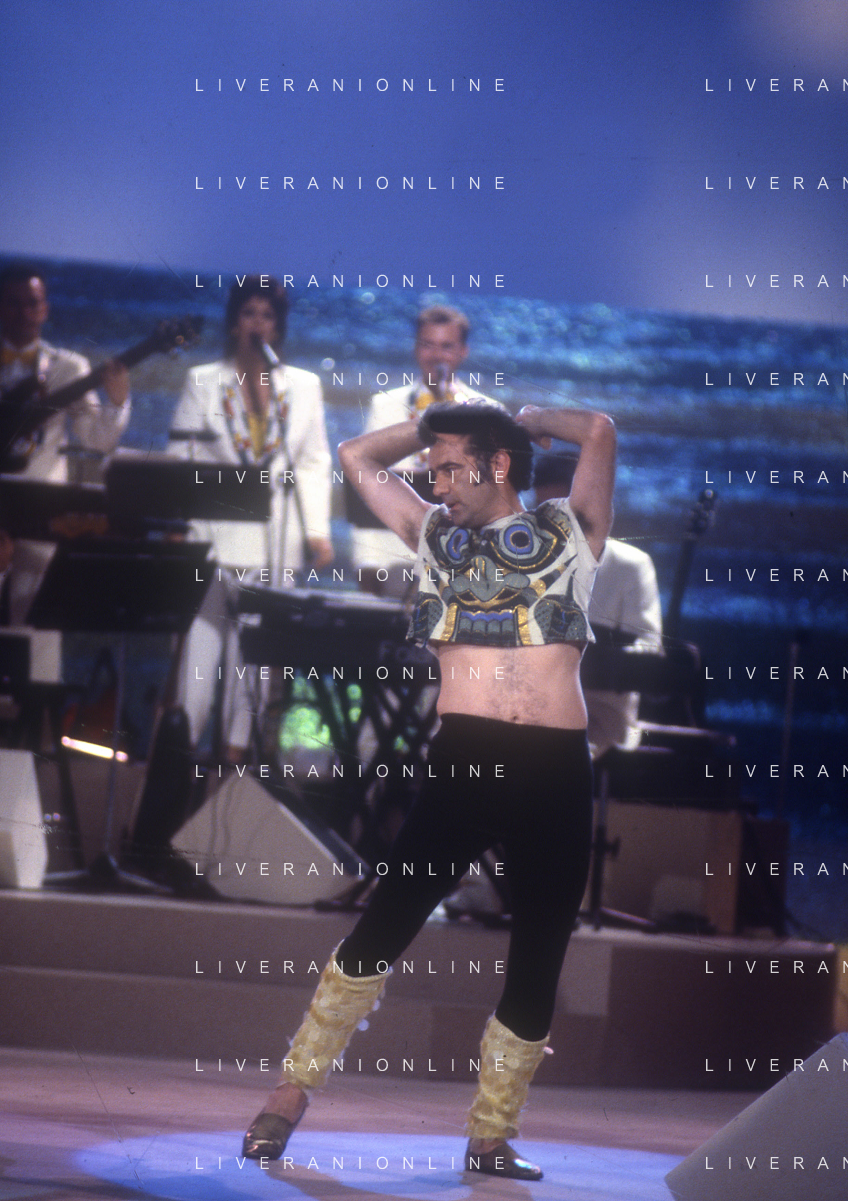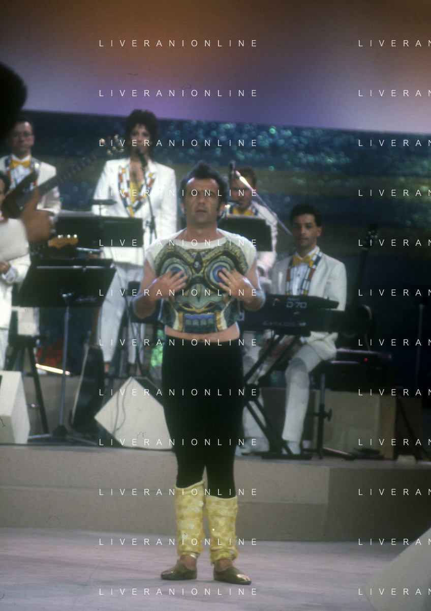 RETROSPETTIVA GENE GNOCCHI ATTORE E COMICO NELLA FOTO GENE GNOCCHI NELL'ANNO 1991 NELLA TRASMISSIONE TELEVISIVA “SAPORE DI SALE“ CON TEO TEOCOLI AG ALDO LIVERANI SAS
