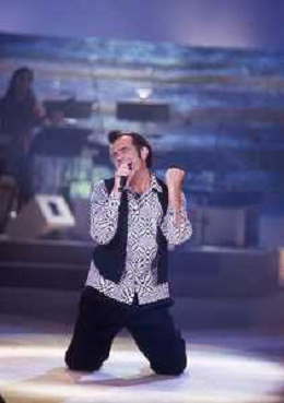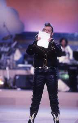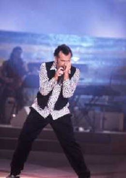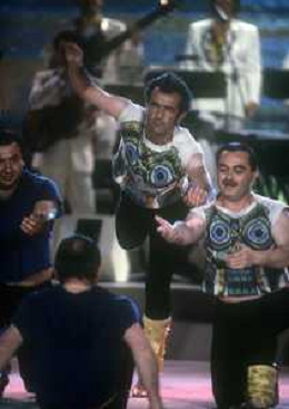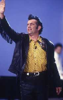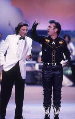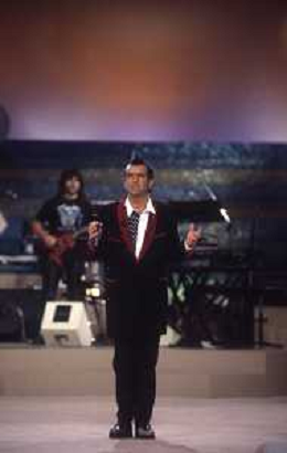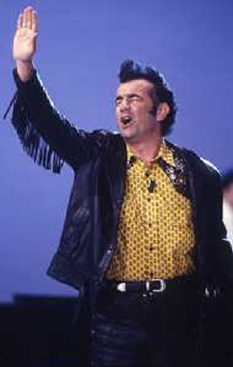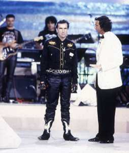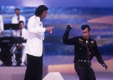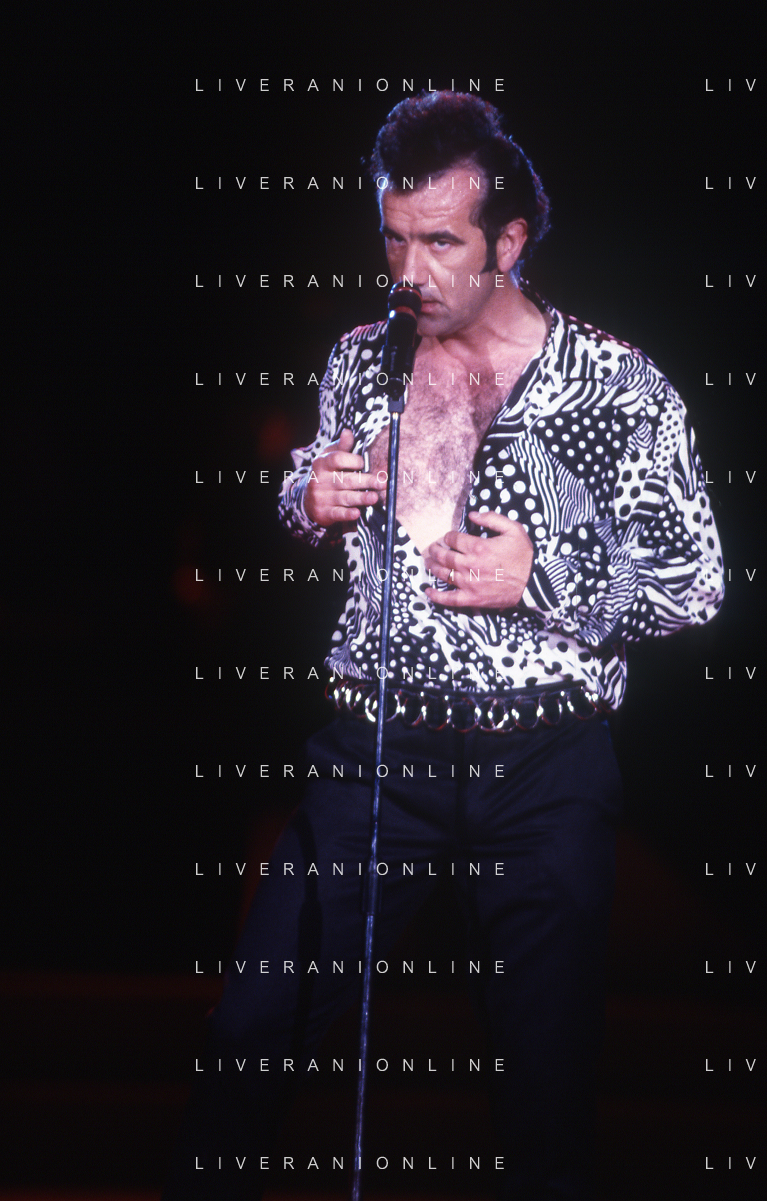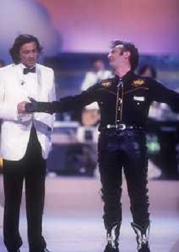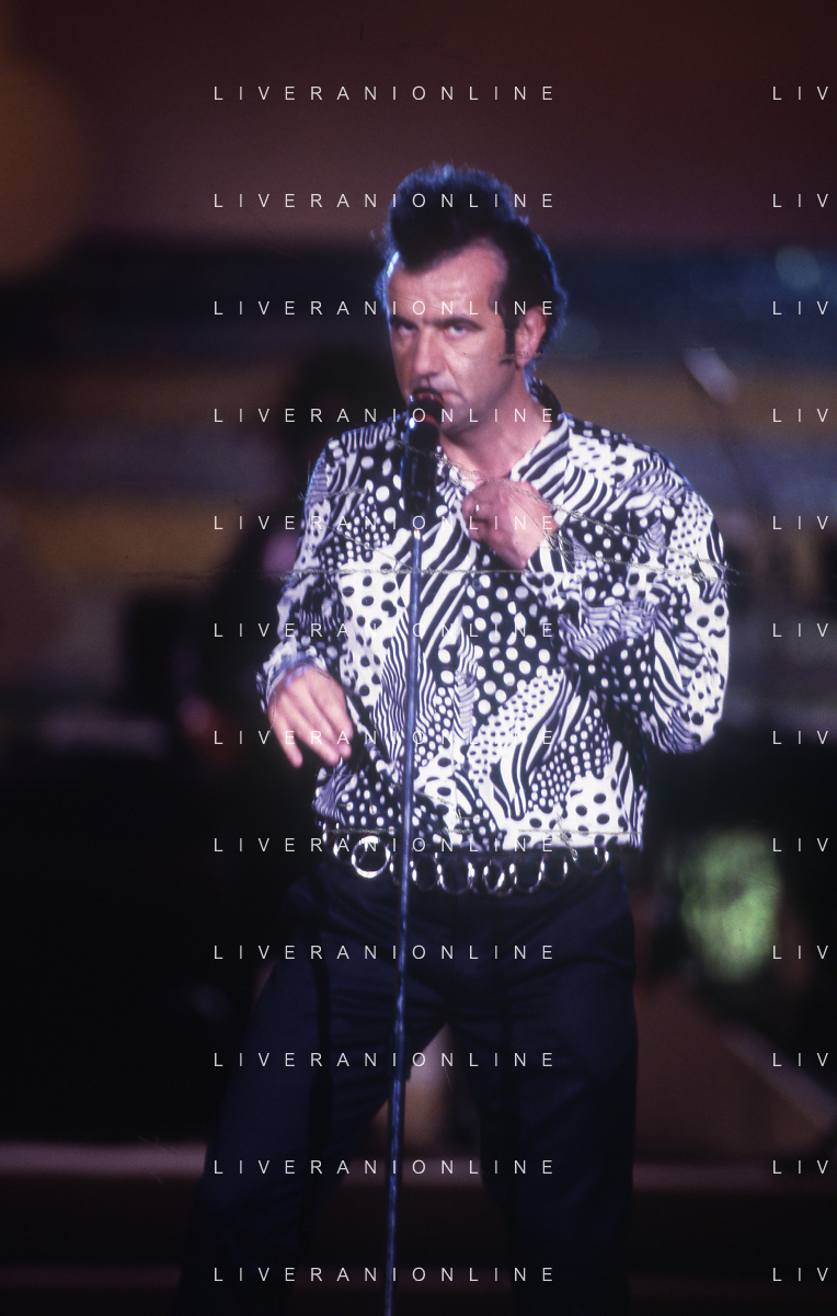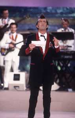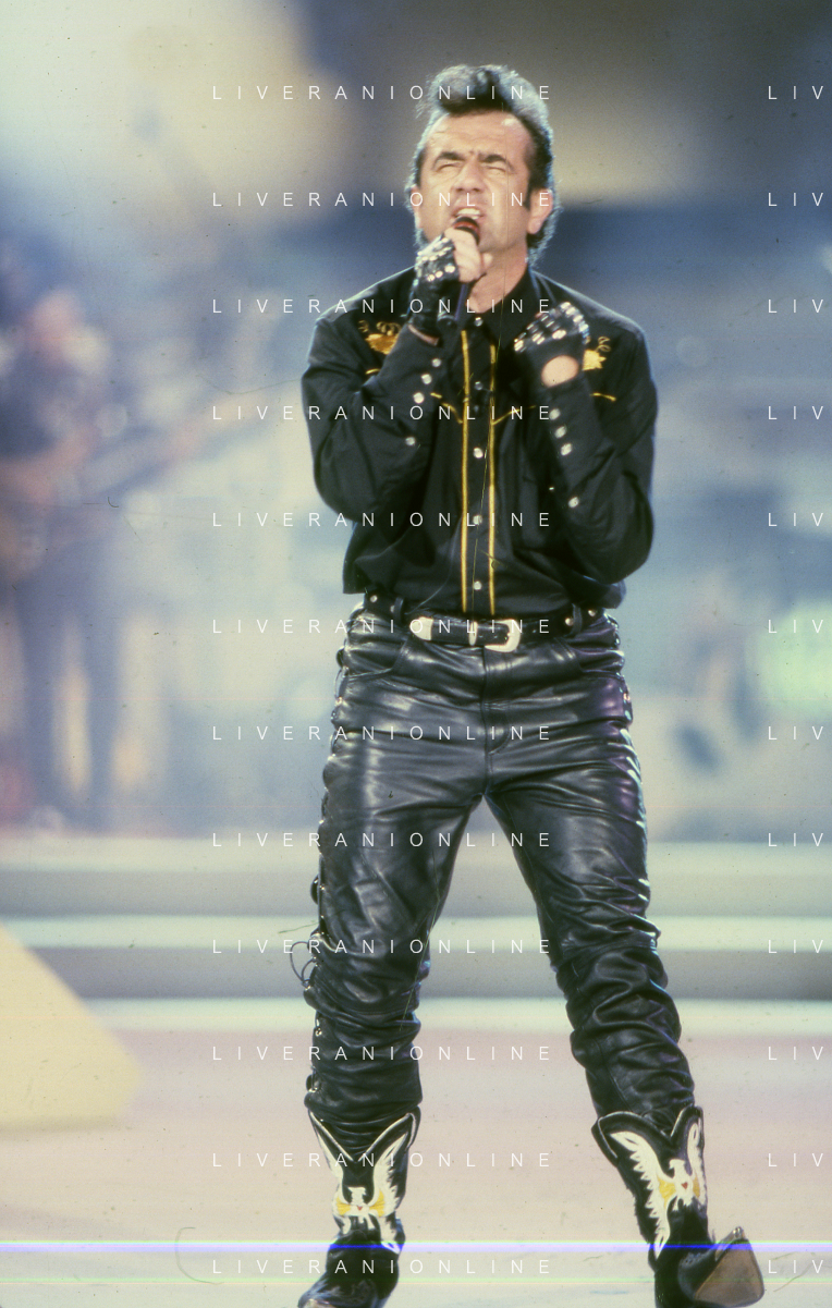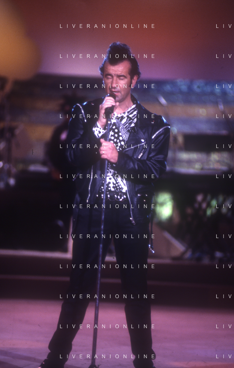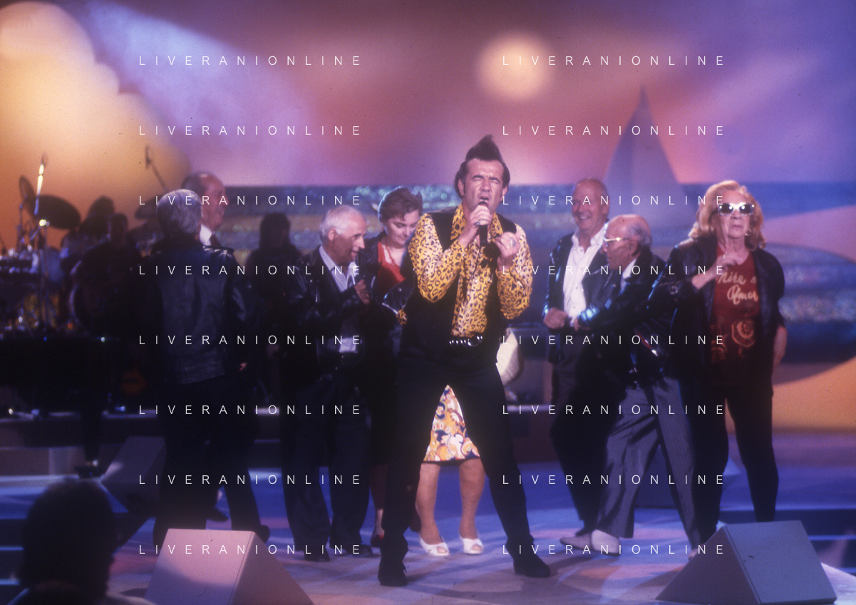 RETROSPETTIVA GENE GNOCCHI ATTORE E COMICO NELLA FOTO GENE GNOCCHI NELL'ANNO 1991 NELLA TRASMISSIONE TELEVISIVA “SAPORE DI SALE“ CON TEO TEOCOLI AG ALDO LIVERANI SAS