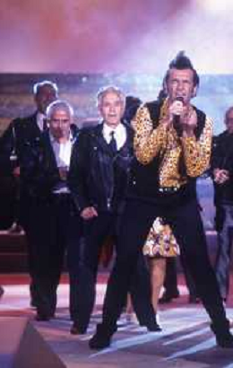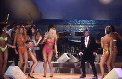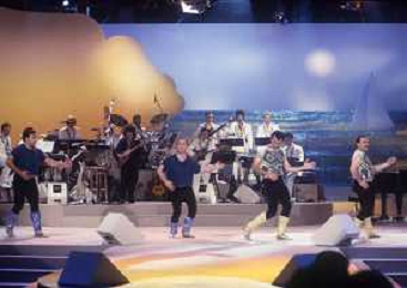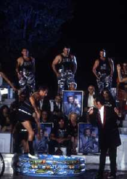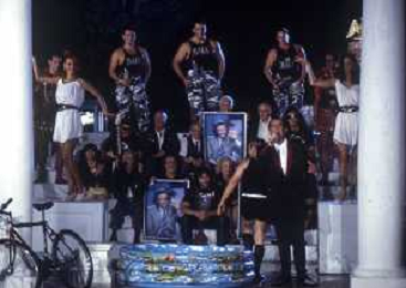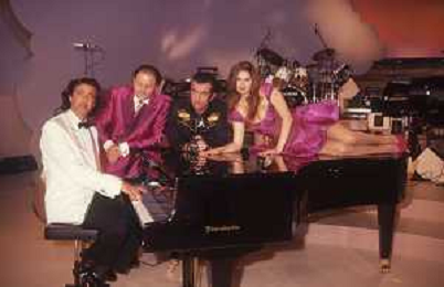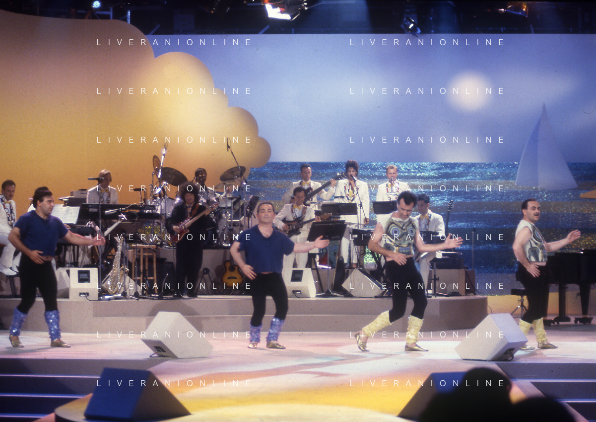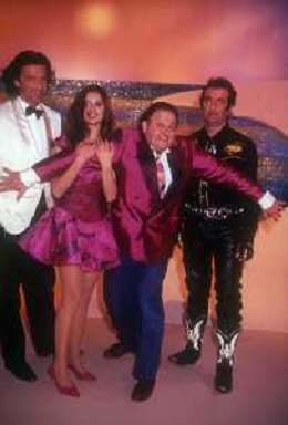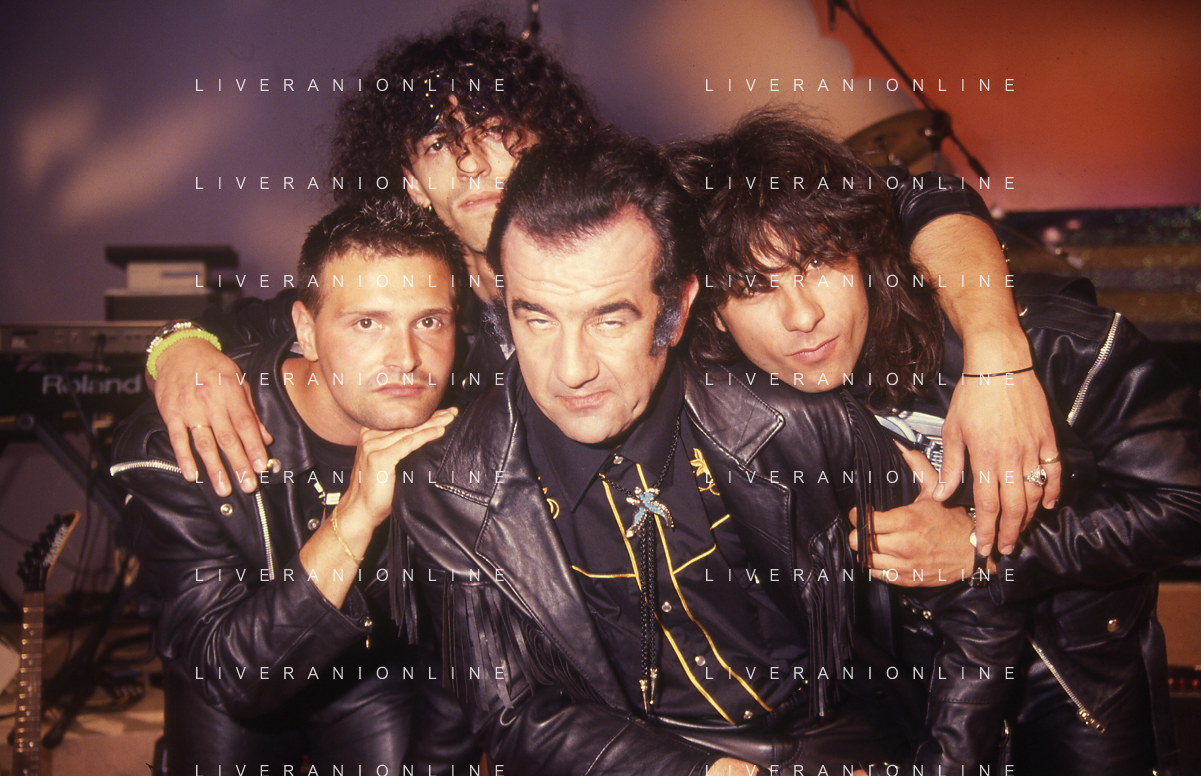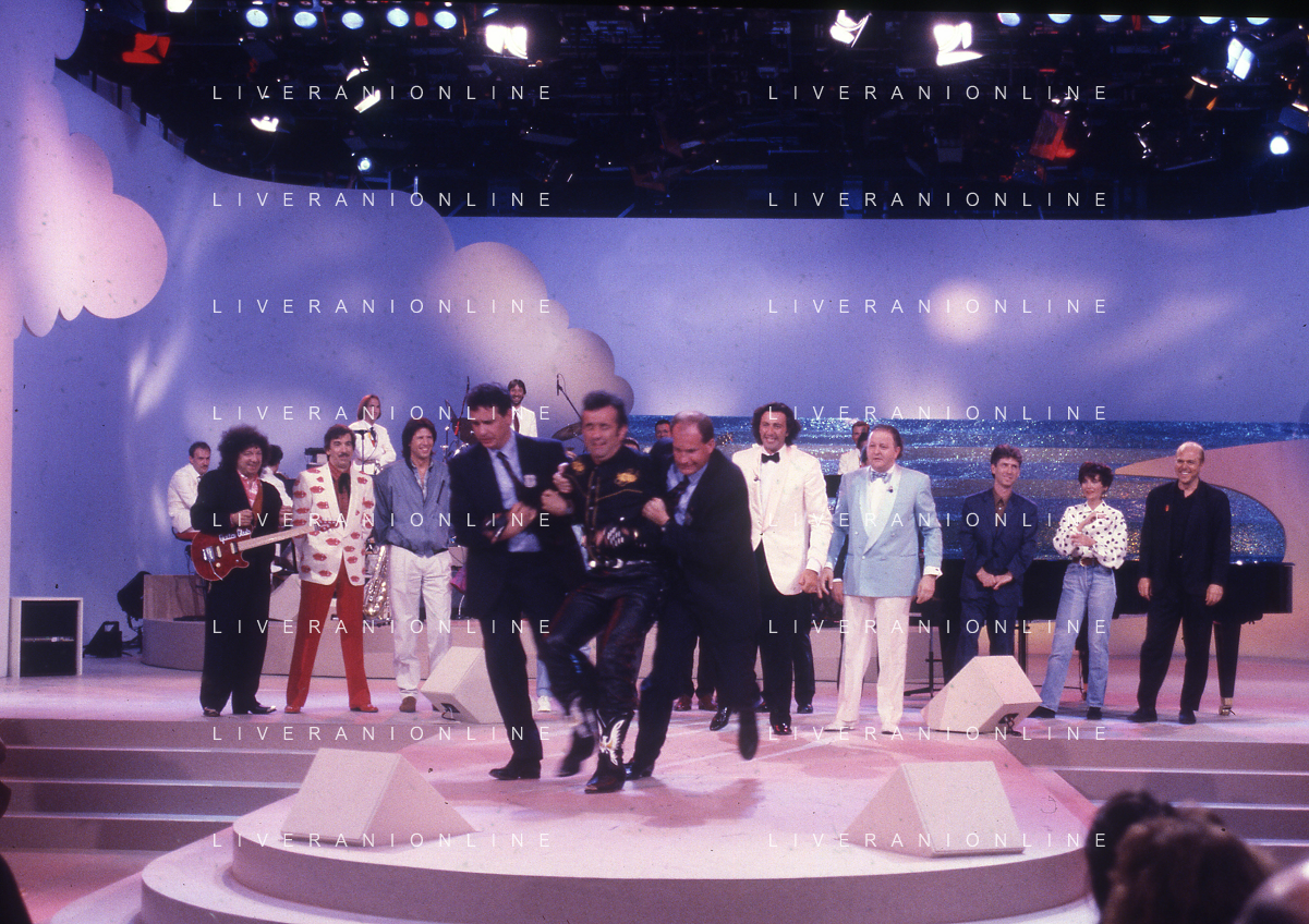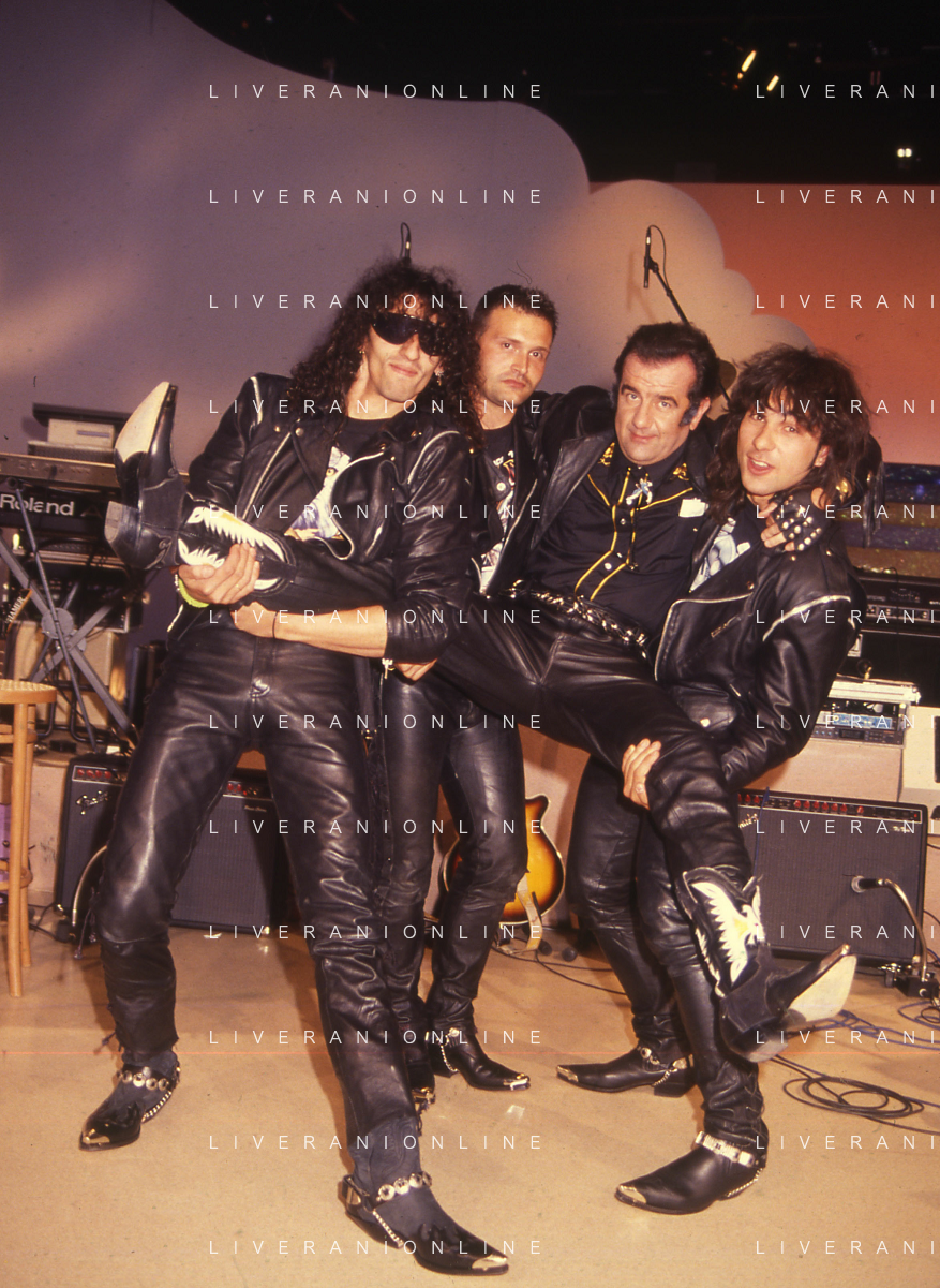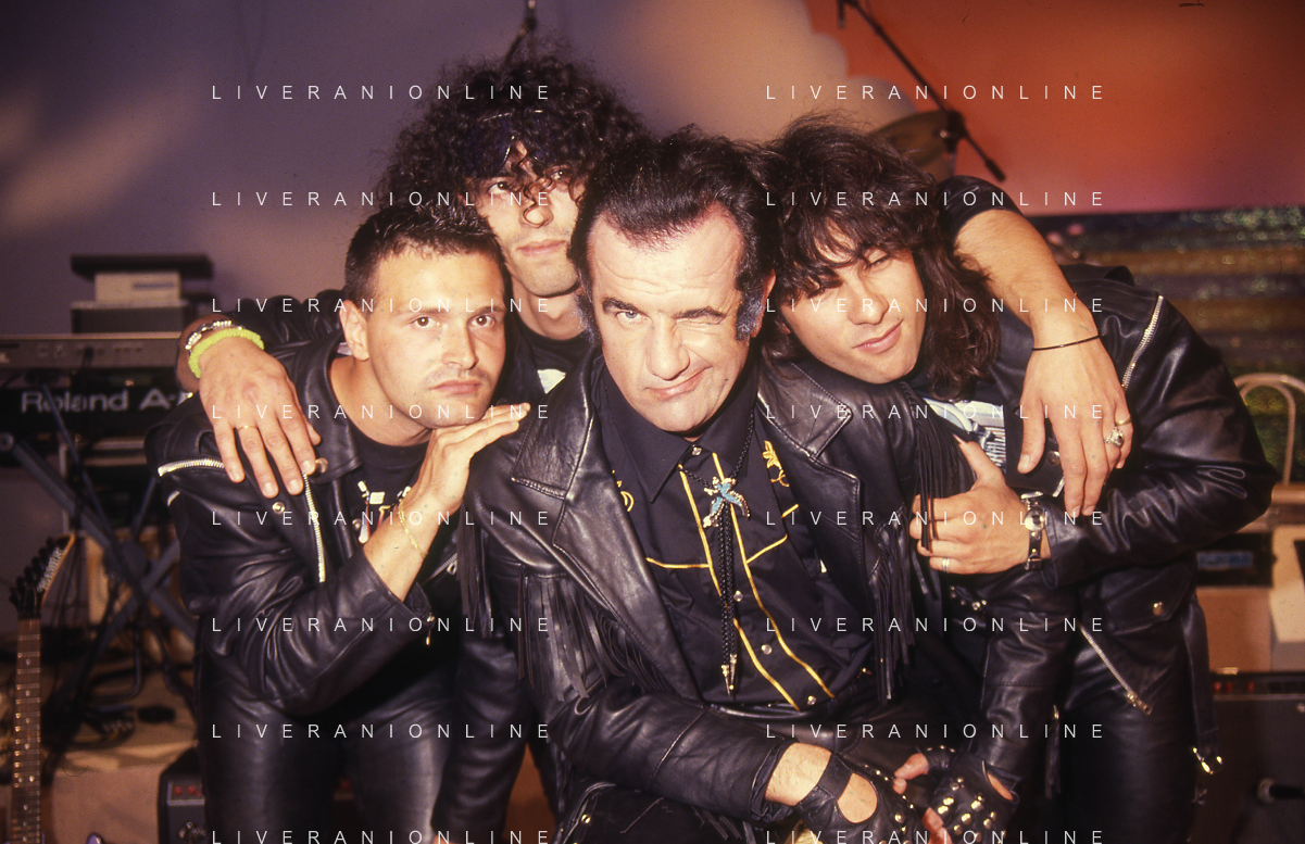 RETROSPETTIVA GENE GNOCCHI ATTORE E COMICO NELLA FOTO GENE GNOCCHI NELL'ANNO 1991 NELLA TRASMISSIONE TELEVISIVA “SAPORE DI SALE“ CON MASSIMO BOLDI LUCA BARBARESCHI E DEBORA CAPRIOGLIO AG ALDO LIVERANI SAS