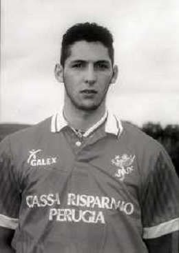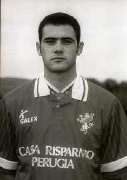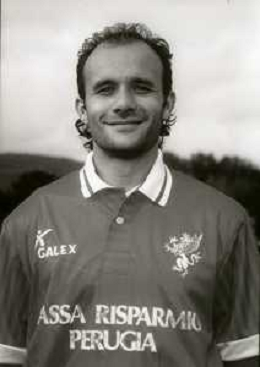 1995-1996 PERUGIA CALCIO PRIMI PIANI ROSA GIOCATORI NELLA FOTO LUCA EVANGELISTI AG ALDO LIVERANI SAS