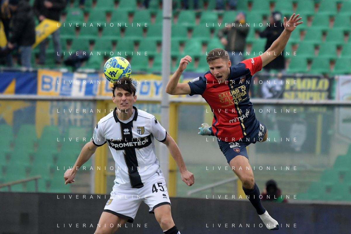 Cosenza, 28 Gennaio 2023 Stadio San Vito-Gigi Marulla Serie B 2022-2023 Cosenza-Parma In foto: Adrian Bernabè e Marco Brescianini FOTO ANDREA ROSITO-AG ALDO LIVERANI SAS