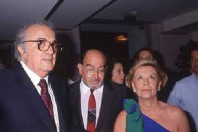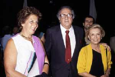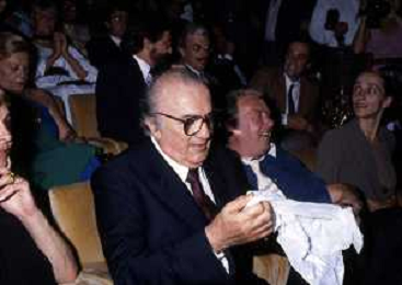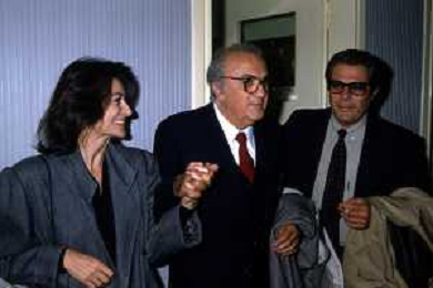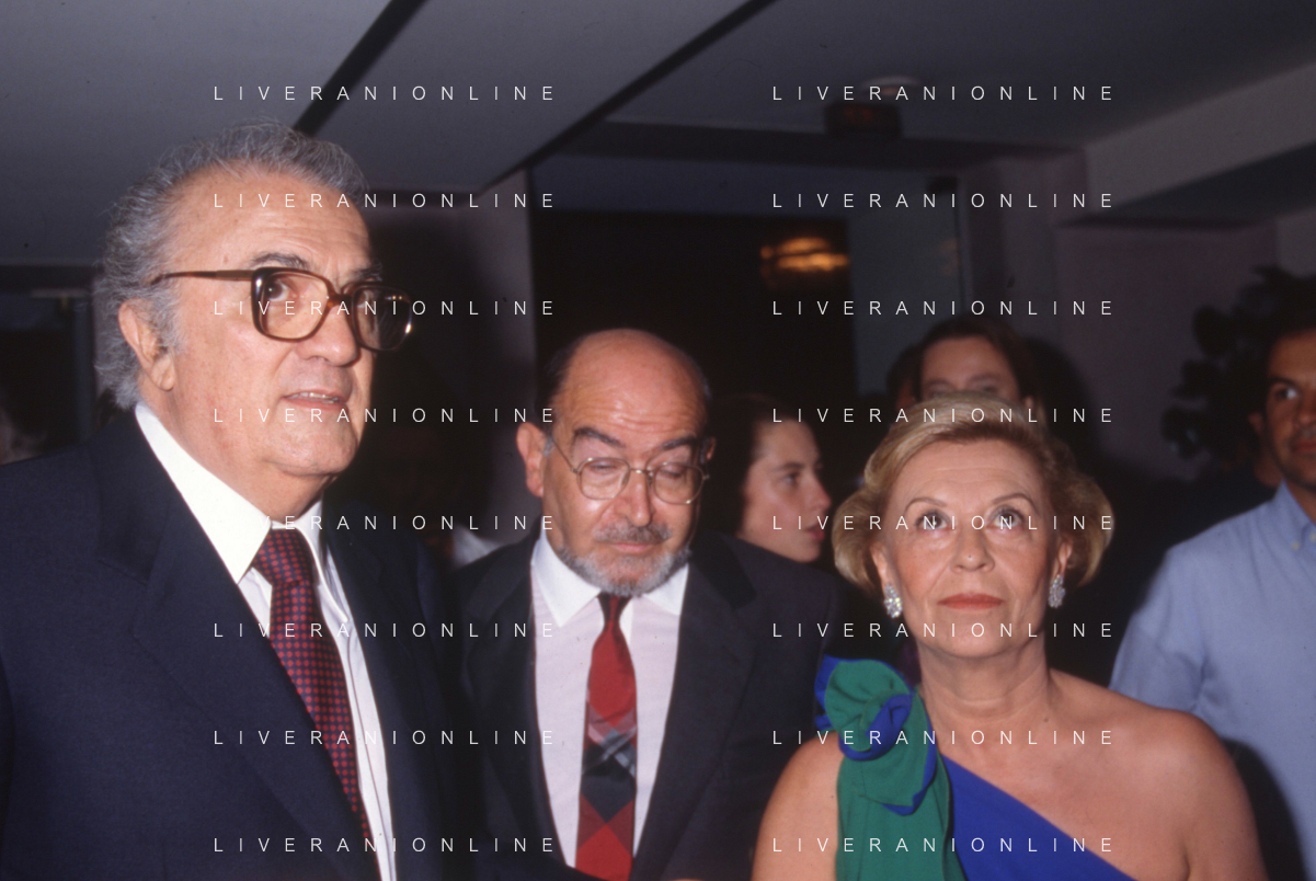 DIAP-RETROSPETTIVA GIULIETTA MASINA ATTRICE NELLA FOTO GIULIETTA MASINA CON FEDERICO FELLINI E GIAN LUIGI RONDI A VENEZIA NELL'ANNO 1983 AG ALDO LIVERANI SAS