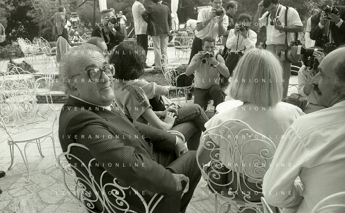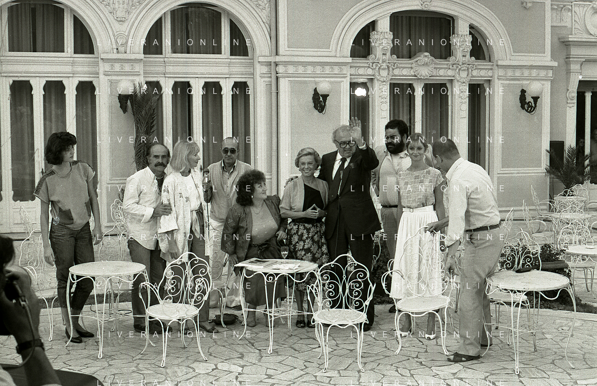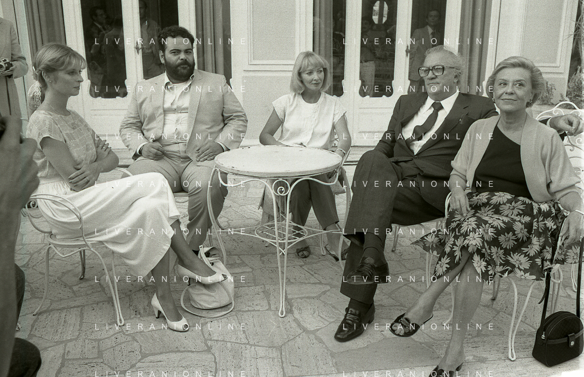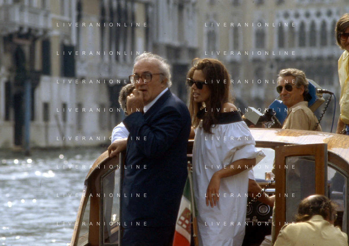 DIAP-RETROSPETTIVA GIULIETTA MASINA ATTRICE NELLA FOTO GIULIETTA MASINA CON FEDERICO FELLIBI FRANCO CRSTALDI E ZEUDI ARAYA A VENEZIA NELL'ANNO 1983 AG ALDO LIVERANI SAS