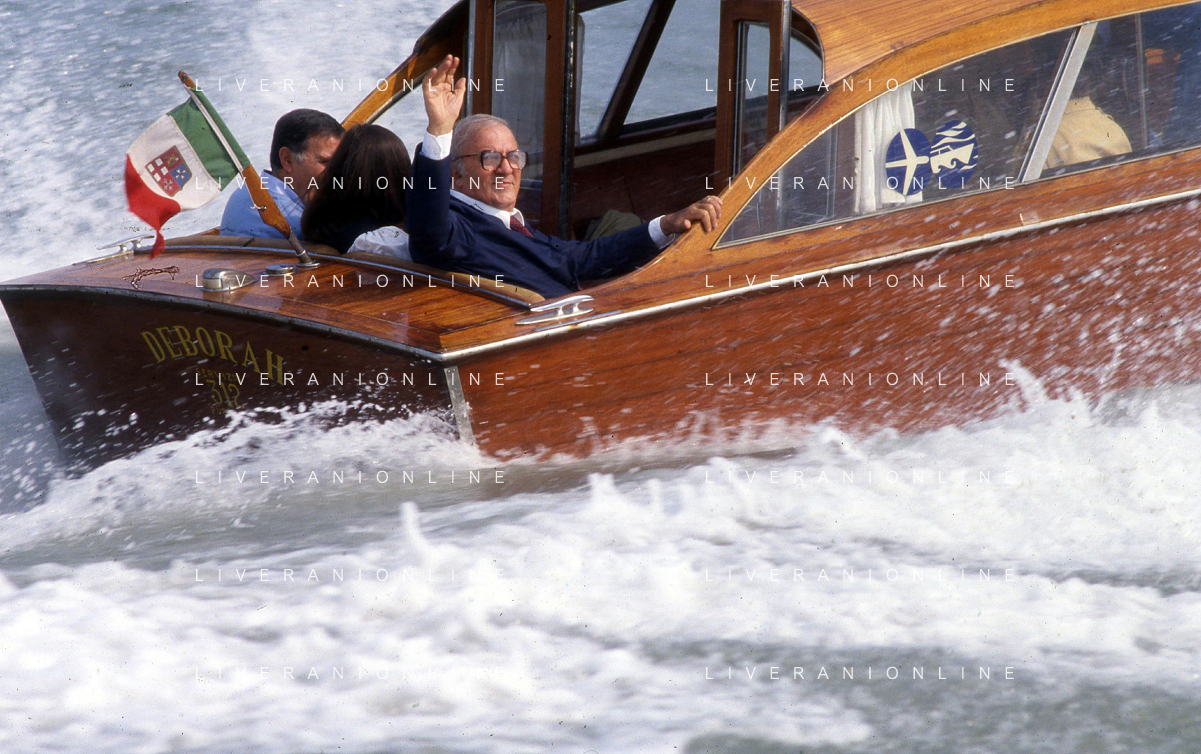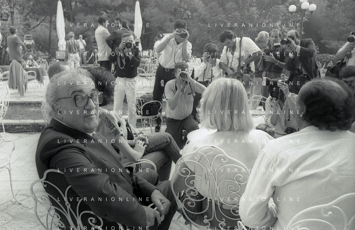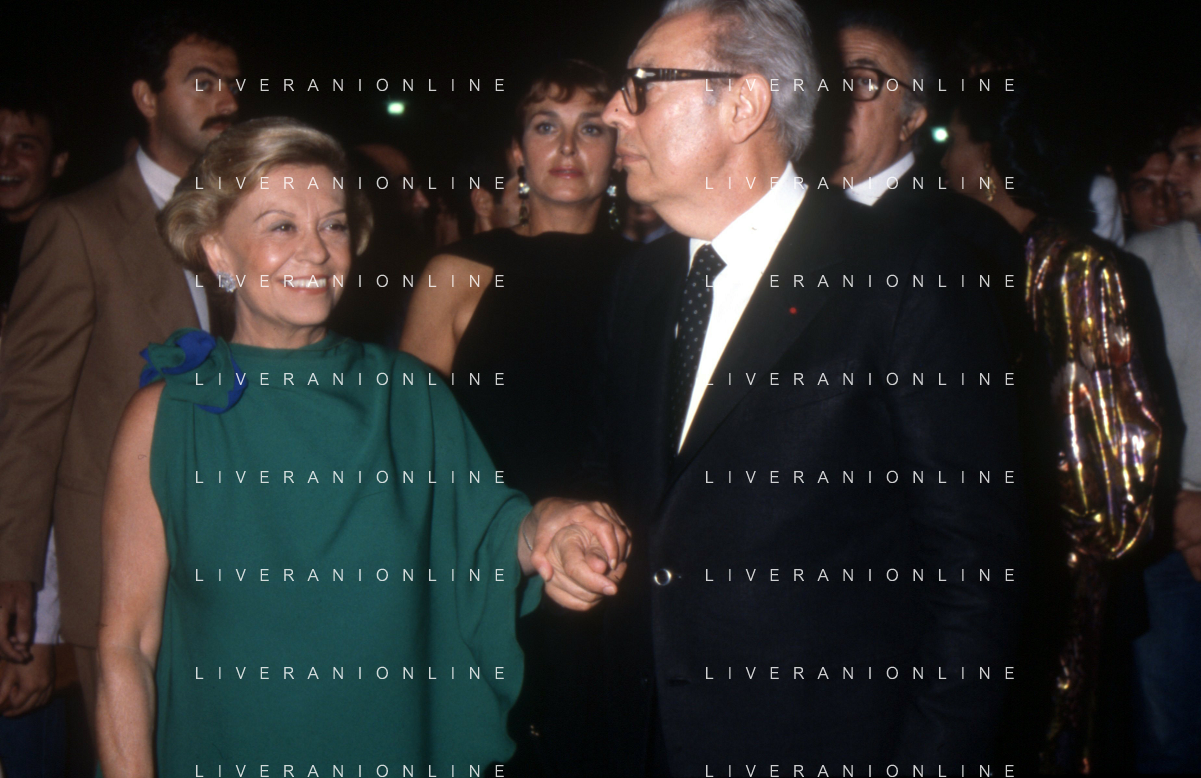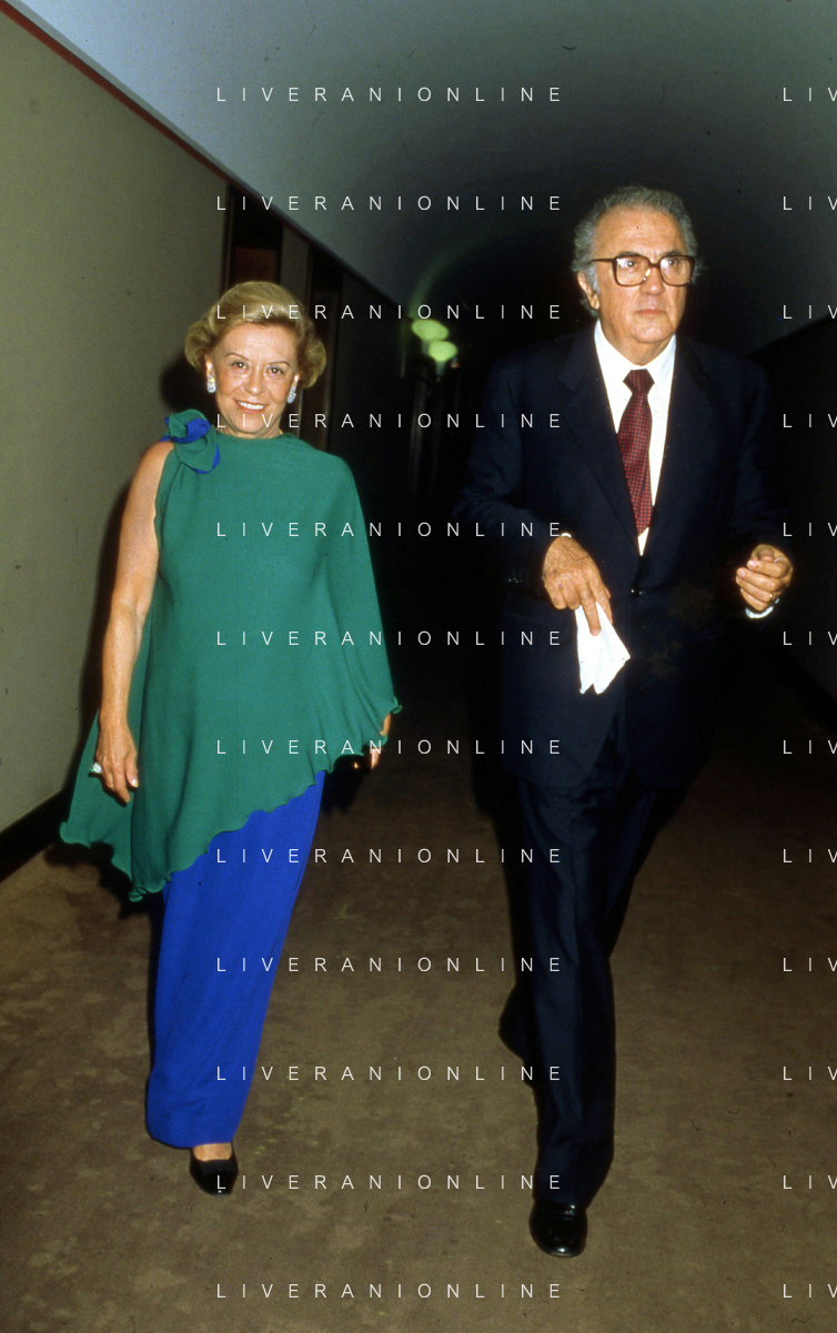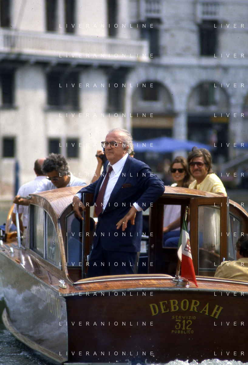 DIAP-RETROSPETTIVA GIULIETTA MASINA ATTRICE NELLA FOTO GIULIETTA MASINA CON FEDERICO FELLIBI FRANCO CRSTALDI E ZEUDI ARAYA A VENEZIA NELL'ANNO 1983 AG ALDO LIVERANI SAS