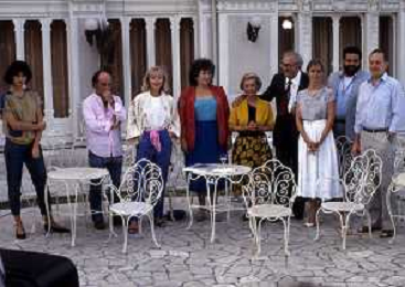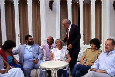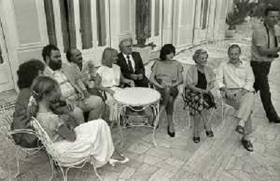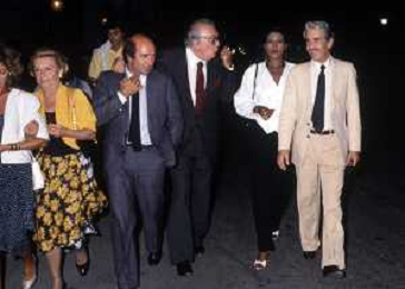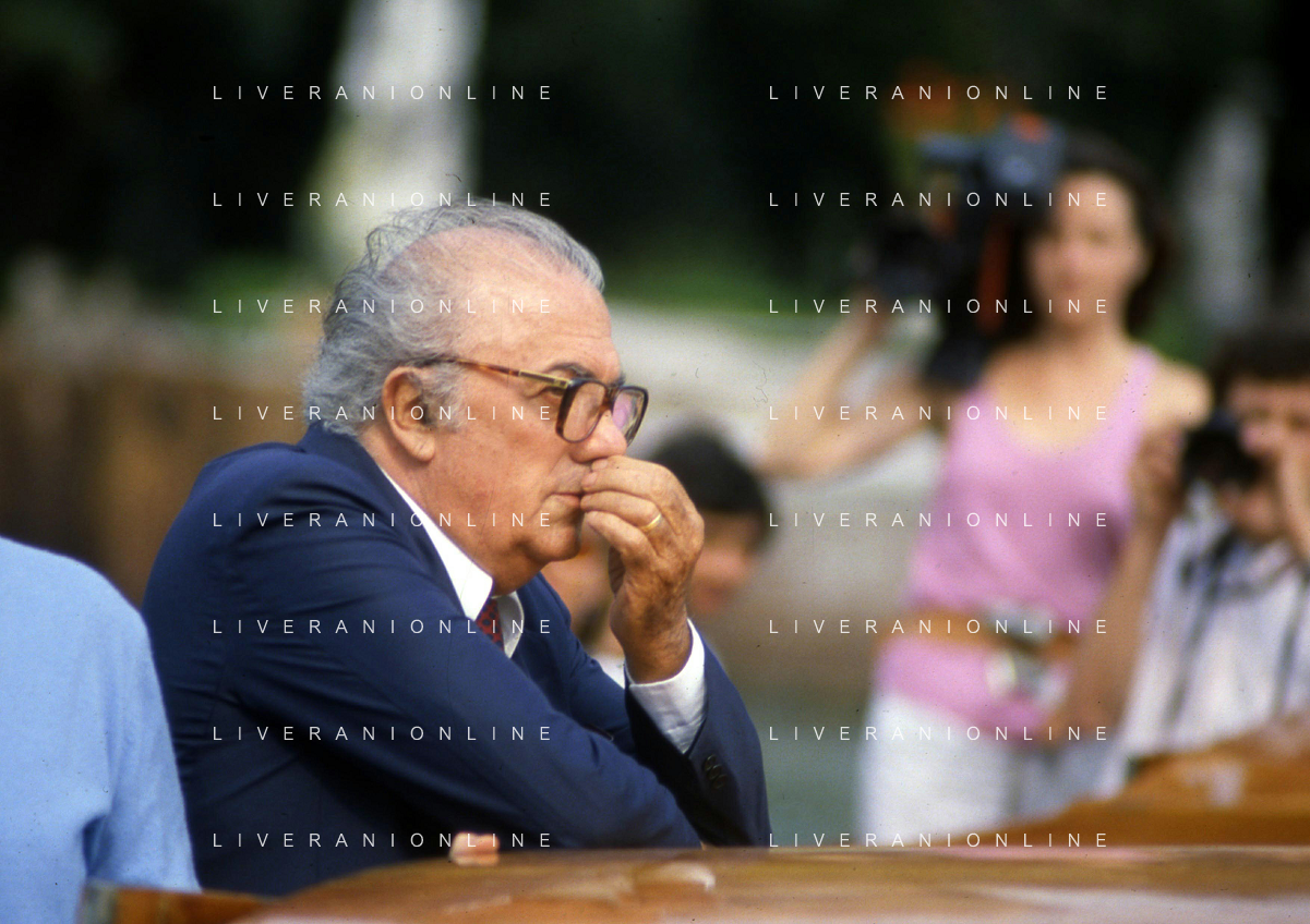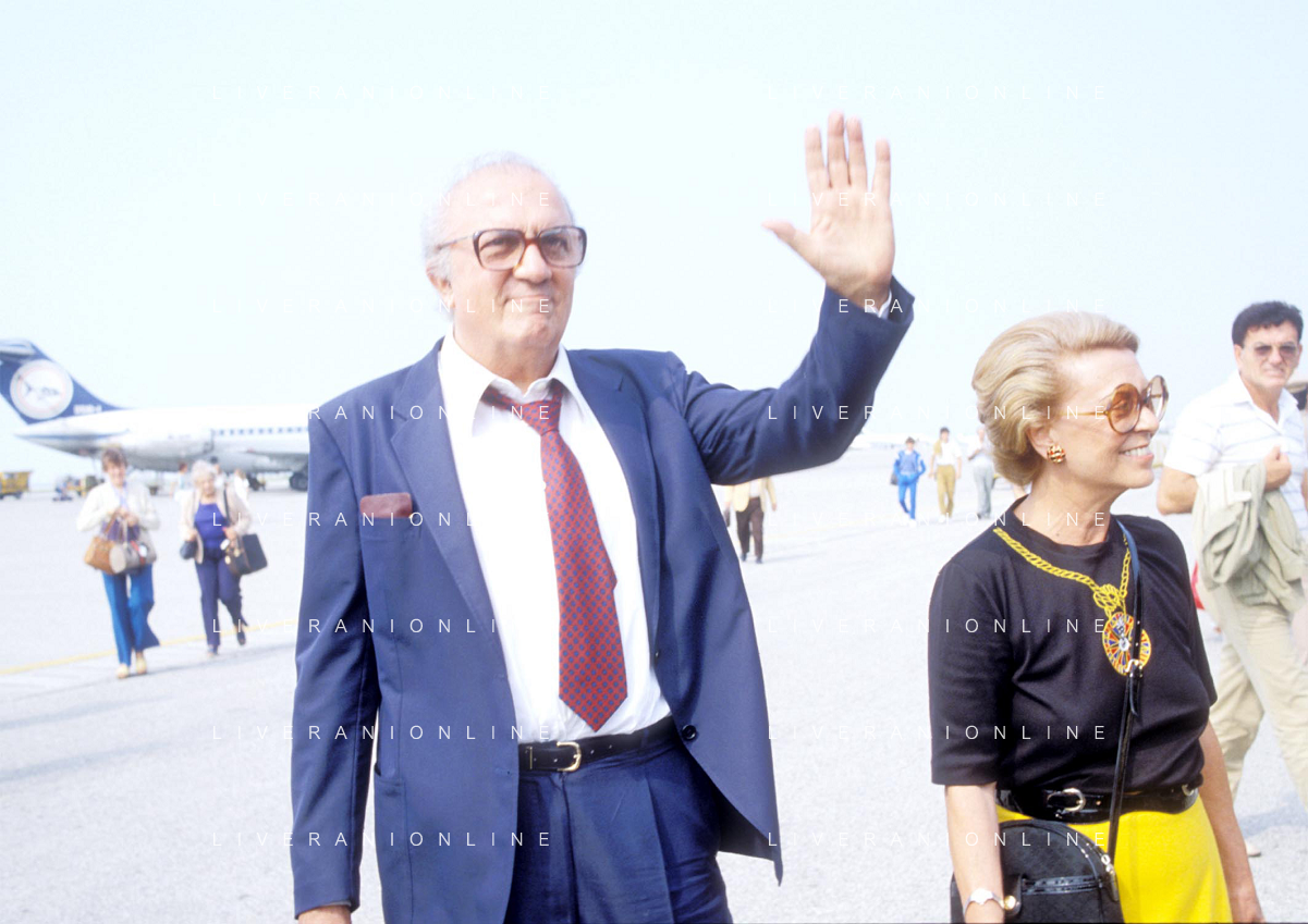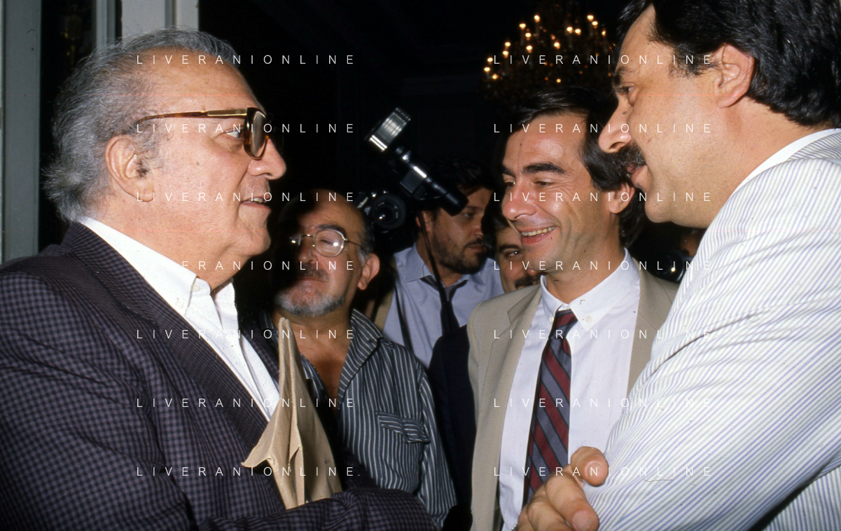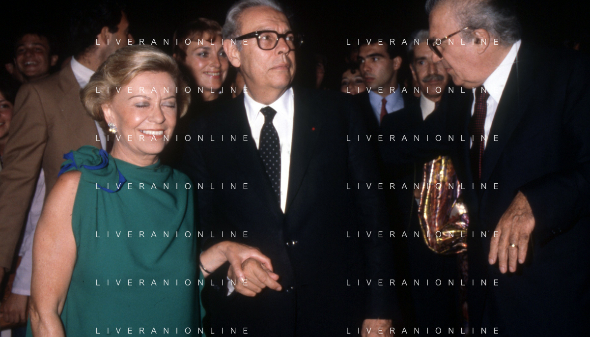 DIAP-RETROSPETTIVA GIULIETTA MASINA ATTRICE NELLA FOTO GIULIETTA MASINA CON FEDERICO FELLIBI FRANCO CRSTALDI E ZEUDI ARAYA A VENEZIA NELL'ANNO 1983 AG ALDO LIVERANI SAS
