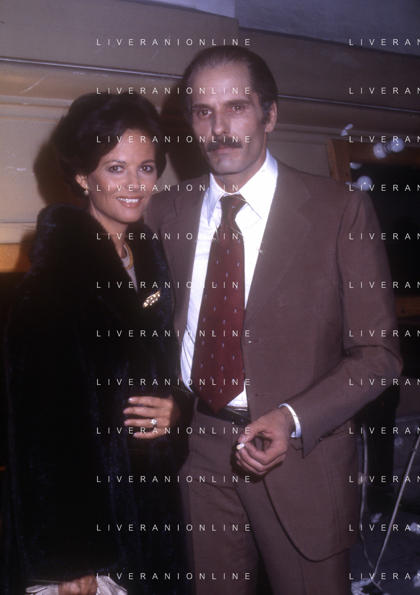 RETROSPETTIVA CLAUDIA CARDINALE ATTRICE NELLA FOTO CON GIULIANO GEMMA DURANTE UNA PAUSA DELLE RIPRESE DEL FILM 'CORLEONE' NELL'ANNO 1978 AG ALDO LIVERANI SAS
