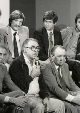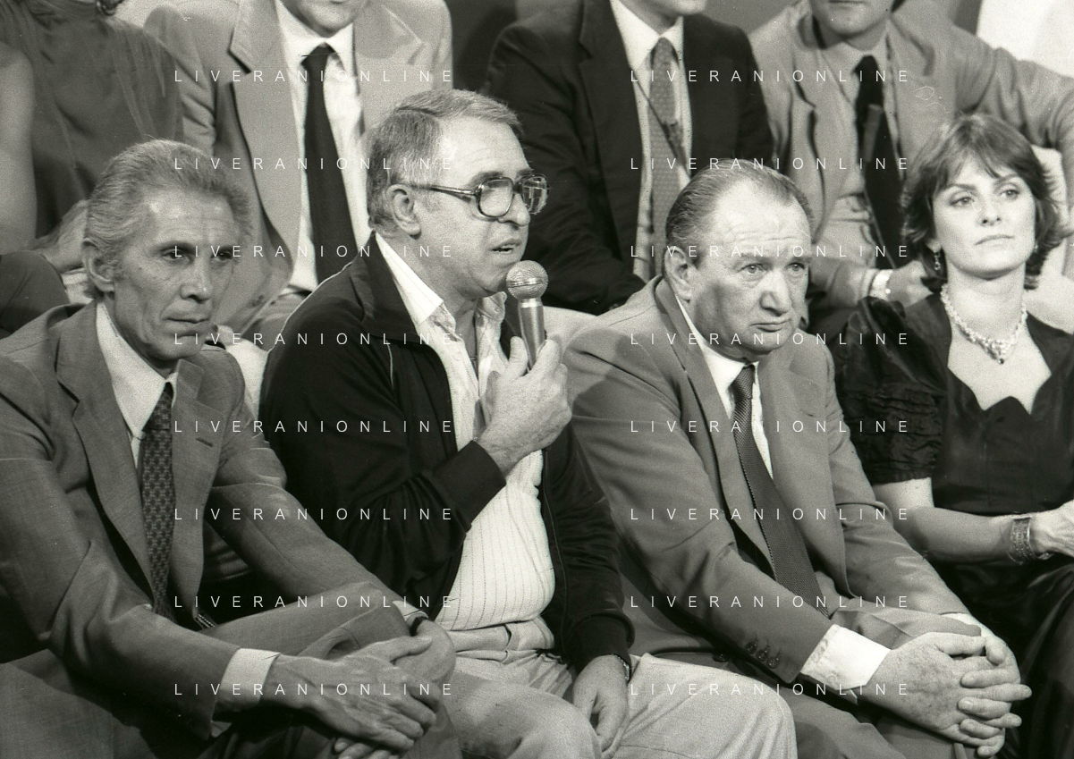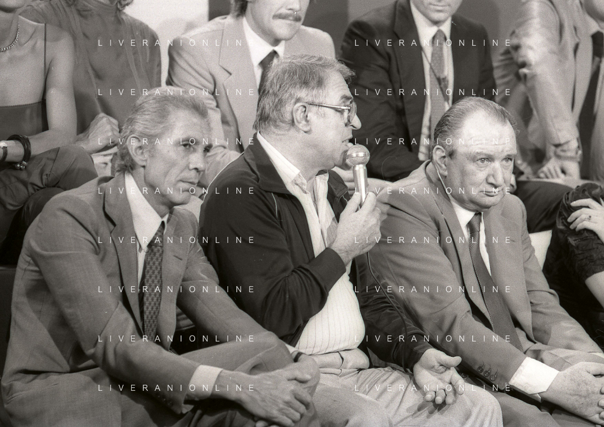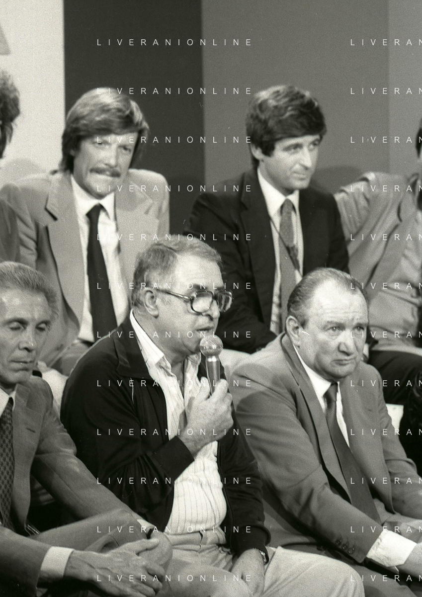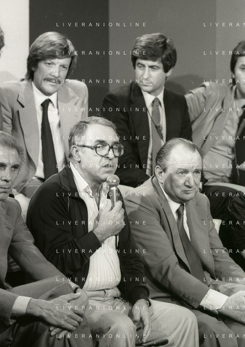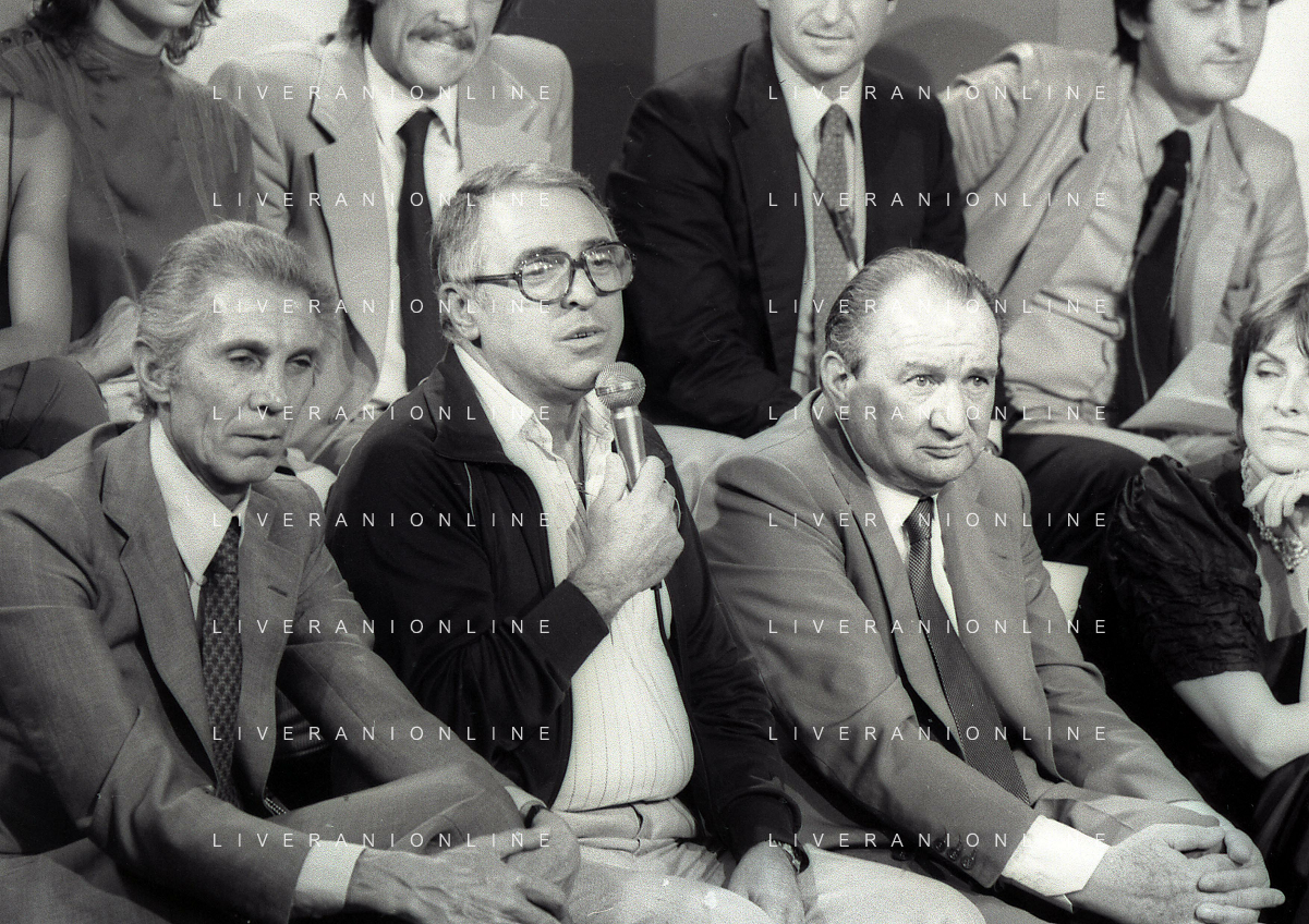RETROSPETTIVA FULVIO ASTORI GIORNALISTA NELLA FOTO FULVIO ASTORI GIORNALISTA ( CON OCCHIALI) A UNA TRASMISSIONE TELEVISIVA NELL'ANNO 1982 AG ALDO LIVERANI SAS