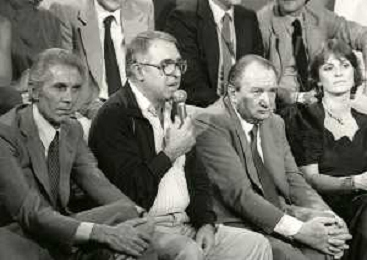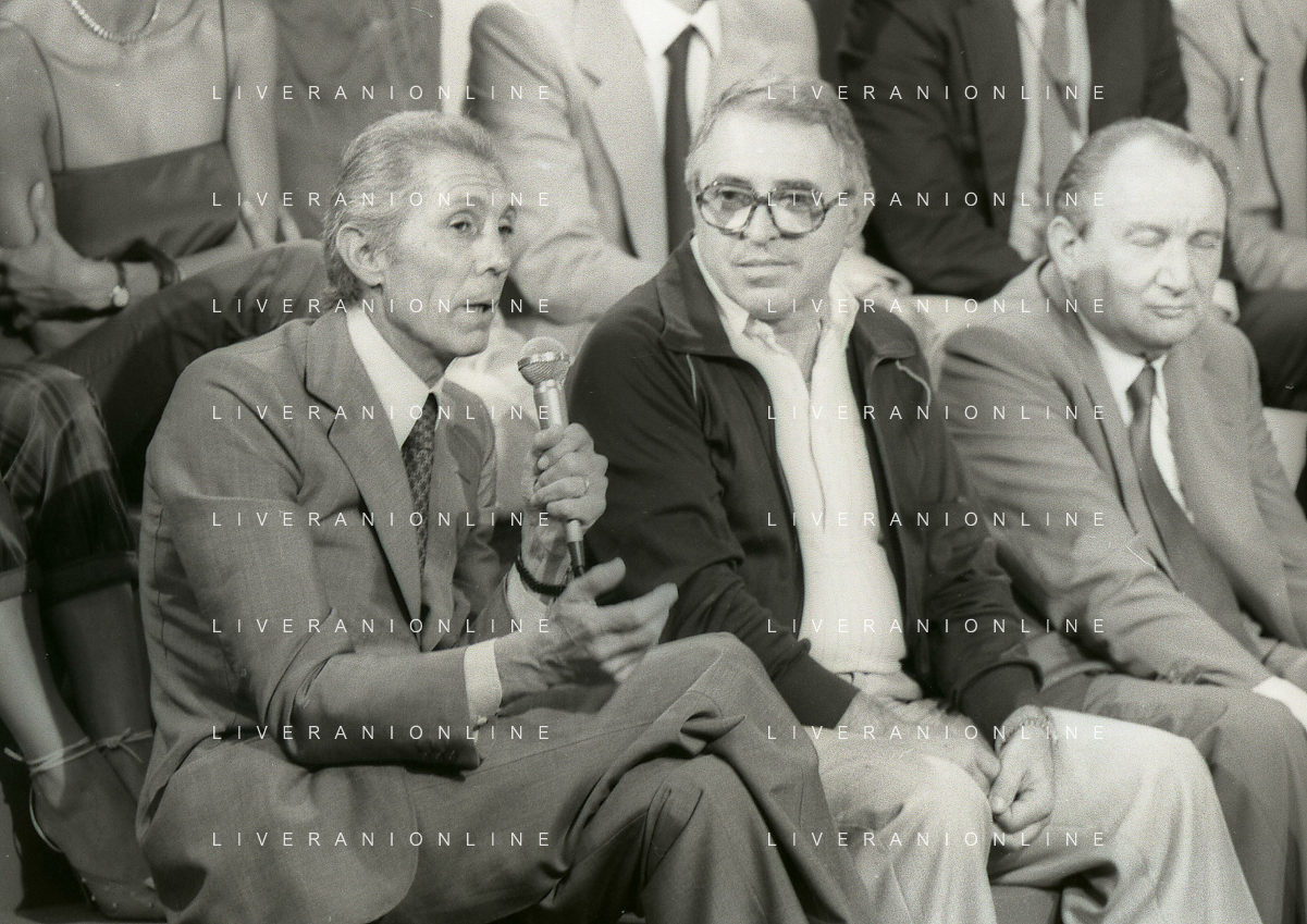 RETROSPETTIVA FULVIO ASTORI GIORNALISTA NELLA FOTO FULVIO ASTORI GIORNALISTA( CON OCCHIALI) A UNA TRASMISSIONE TELEVISIVA NELL'ANNO 1982 AG ALDO LIVERANI SAS