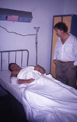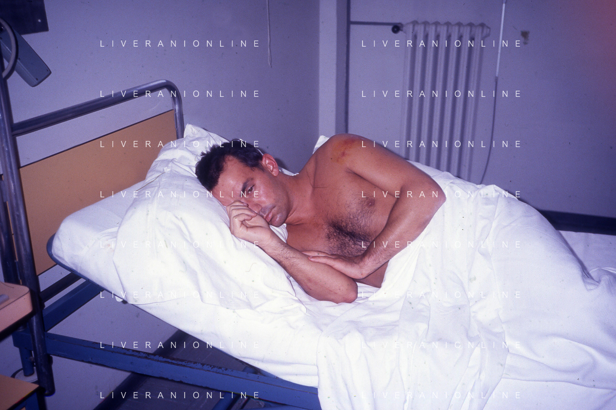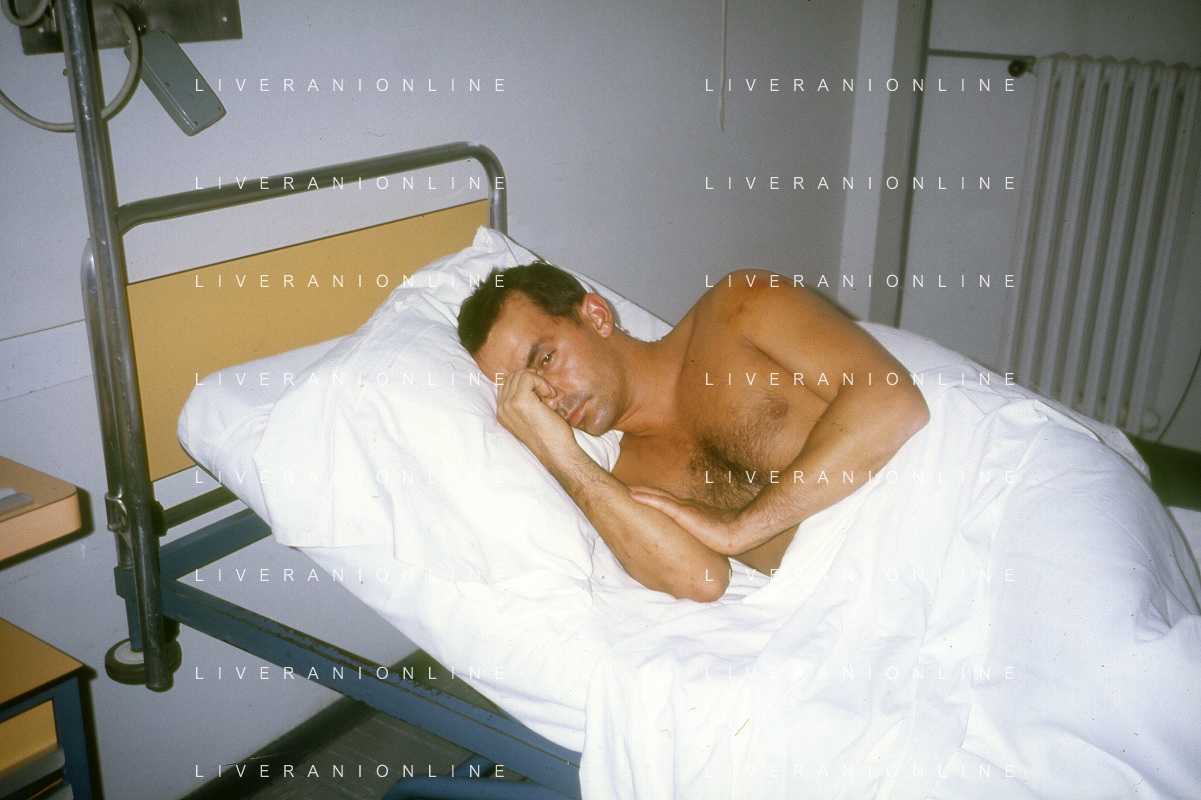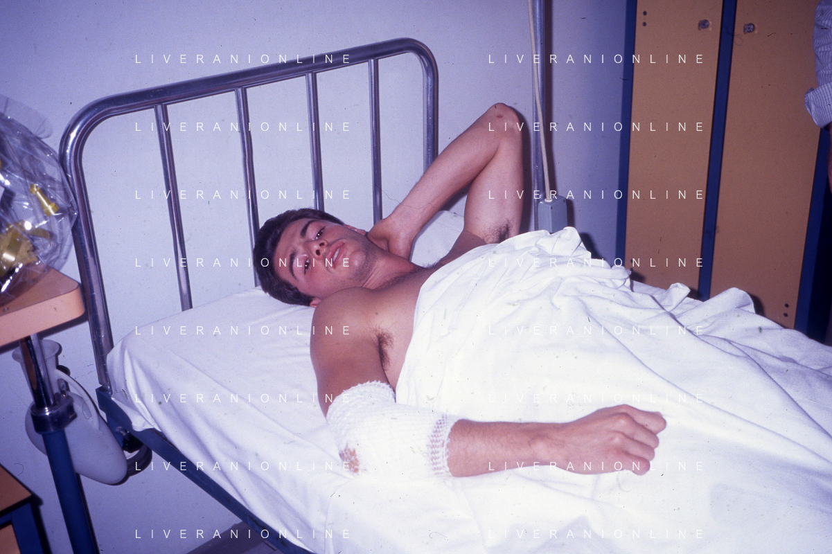 RETROSPETTIVA ALESSANDRO NANNINI PILOTA F1 NELLA FOTO ALESSANDRO NANNINI IN OSPEDALE DOPO L'INCIDENTE CON L'ELICOTTERO ARCHIVIO SAVOIA JAMES-AG ALDO LIVERANI SAS