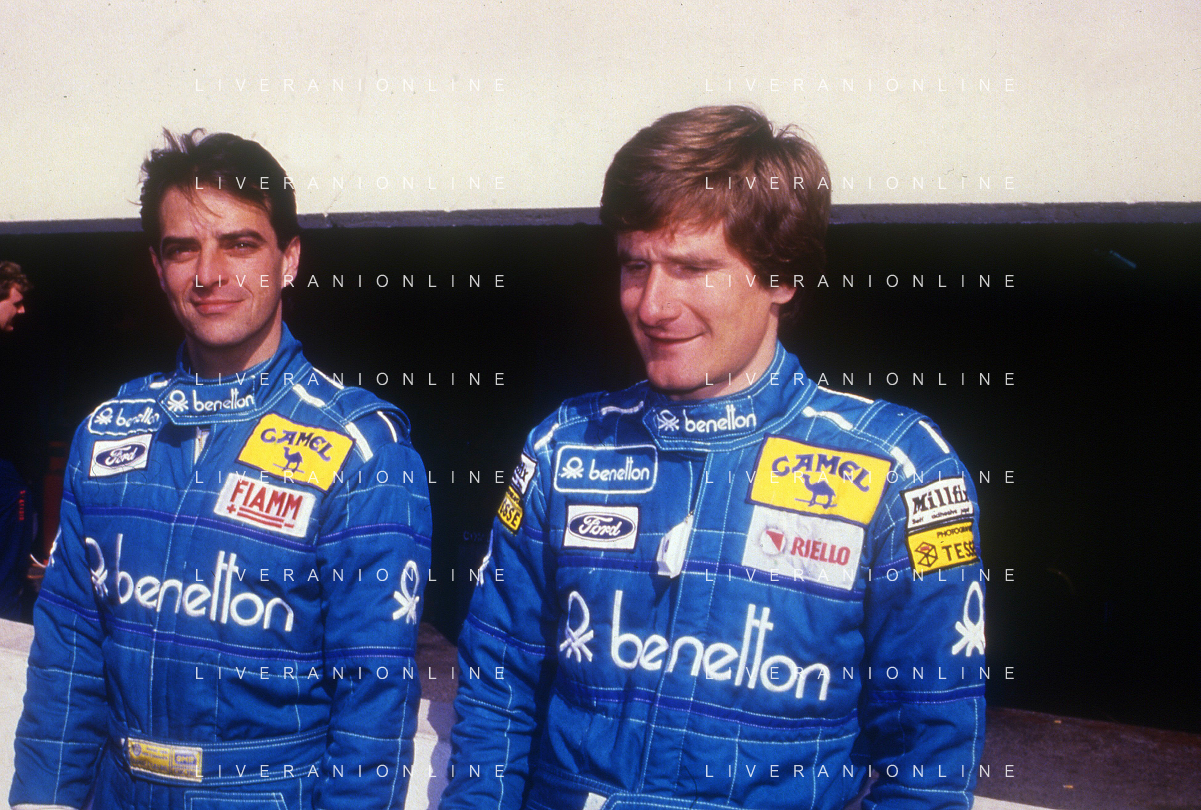 RETROSPETTIVA ALESSANDRO NANNINI PILOTA F1 NELLA FOTO ALESSANDRO NANNINI CON Thierry Boutsen ARCHIVIO SAVOIA JAMES-AG ALDO LIVERANI SAS