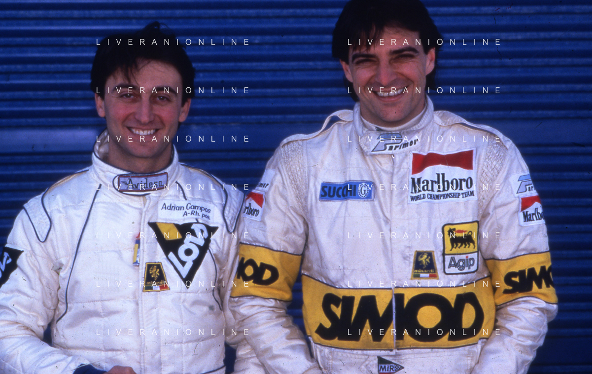 RETROSPETTIVA ALESSANDRO NANNINI PILOTA F1 NELLA FOTO ALESSANDRO NANNINI CON ADRIAN CAMPOS ARCHIVIO SAVOIA JAMES-AG ALDO LIVERANI SAS