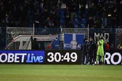 TVRG la temporanea sospensione del gioco per permettere i soccorsi ad un tifoso del Como Como vs Frosinone Como 04-02-2023 Stadio Giuseppe Sinigaglia Campionato Serie BKT - 23a giornata foto Roberto Garavaglia/ag. Aldo Liverani sas / AGENZIA ALDO LIVERANI SAS