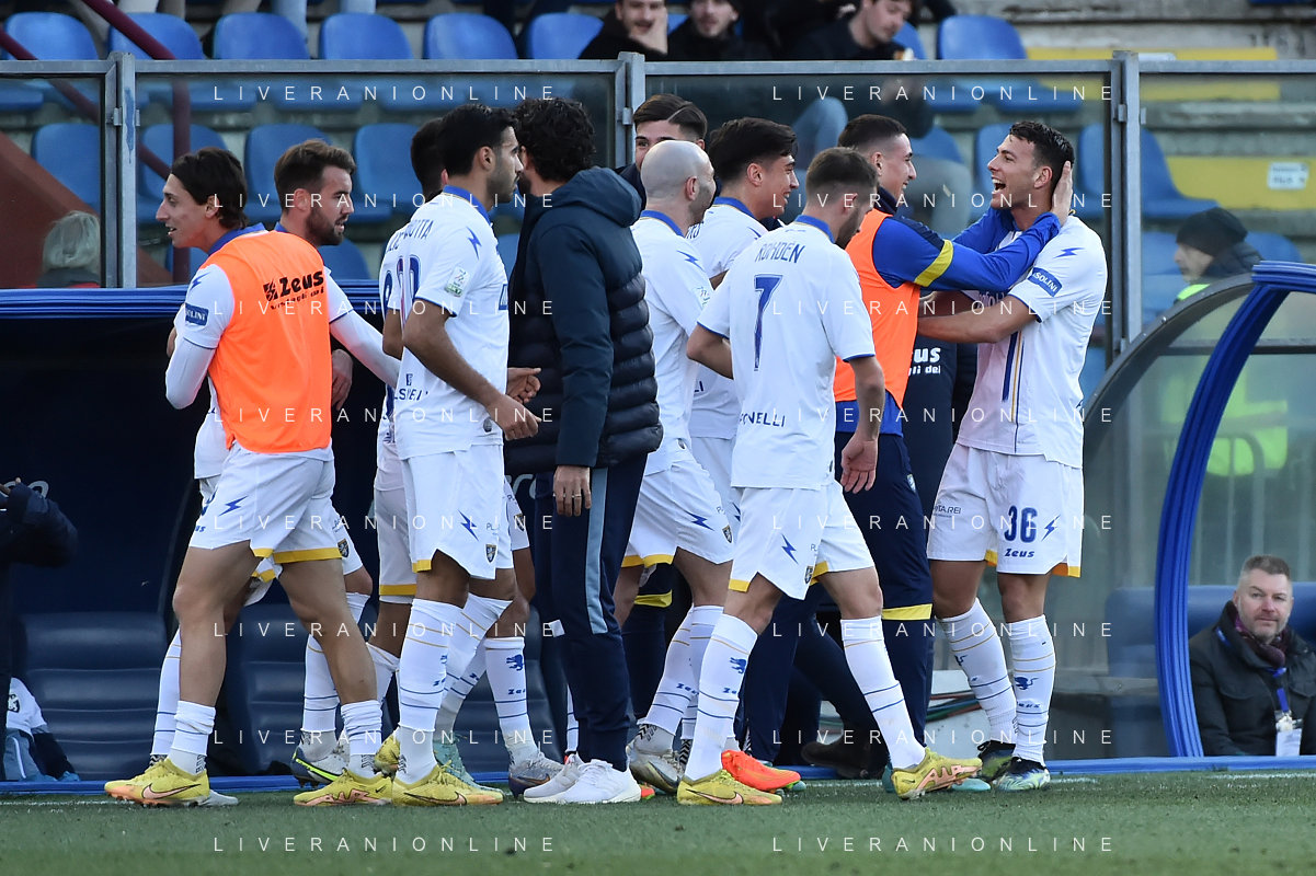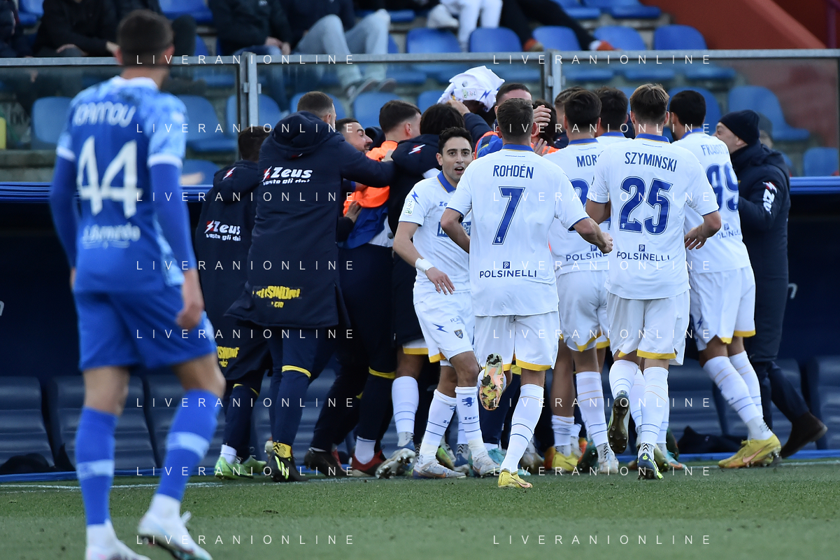 TVRG esultanza Frosinone dopo il gol dell'1 a 0 Luca Matarese Como vs Frosinone Como 04-02-2023 Stadio Giuseppe Sinigaglia Campionato Serie BKT - 23a giornata foto Roberto Garavaglia/ag. Aldo Liverani sas / AGENZIA ALDO LIVERANI SAS