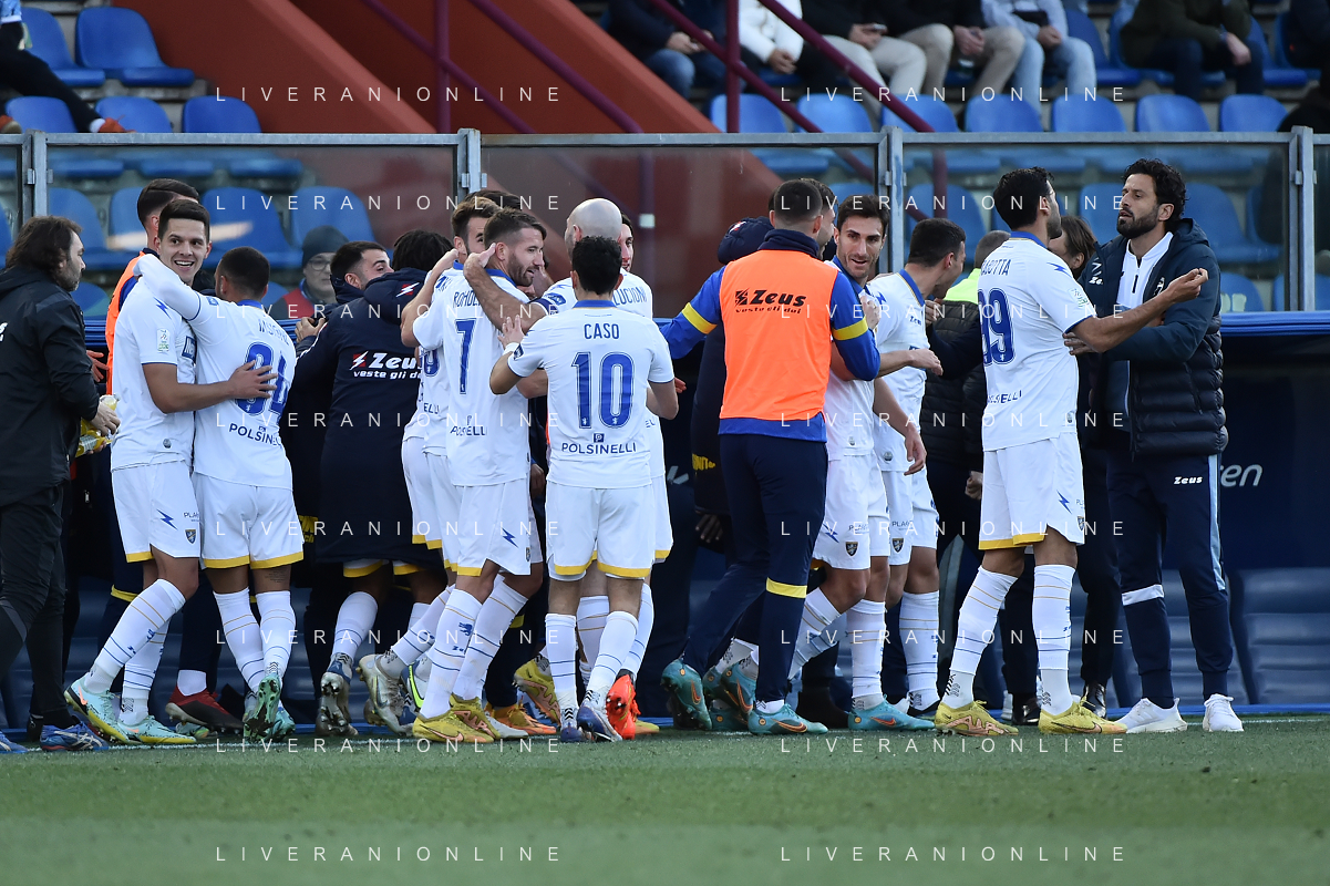 TVRG esultanza Frosinone dopo il gol del 2 a 0 Giuseppe Caso Como vs Frosinone Como 04-02-2023 Stadio Giuseppe Sinigaglia Campionato Serie BKT - 23a giornata foto Roberto Garavaglia/ag. Aldo Liverani sas / AGENZIA ALDO LIVERANI SAS