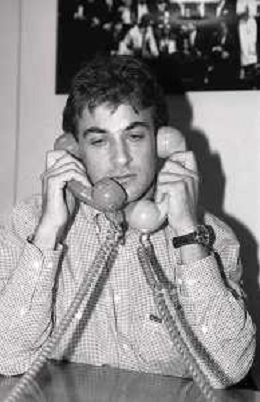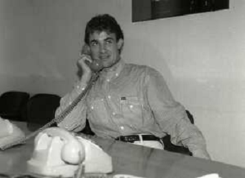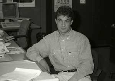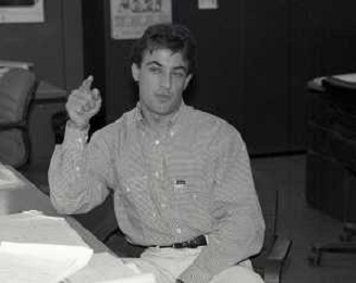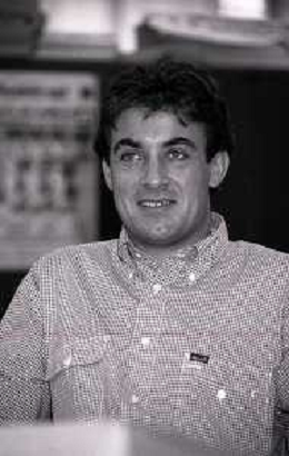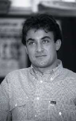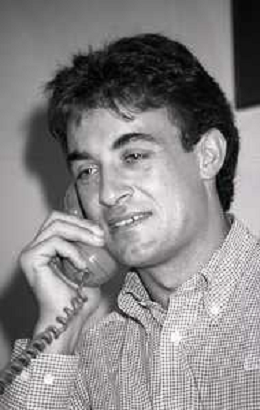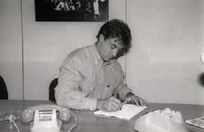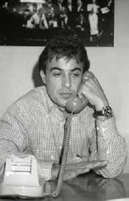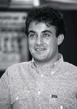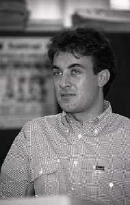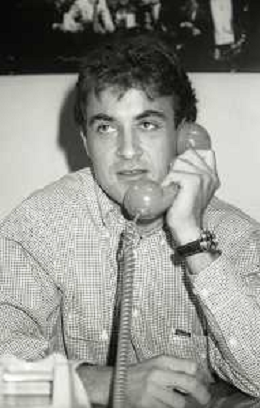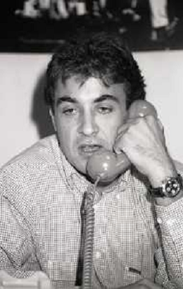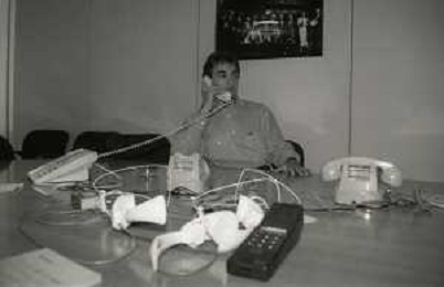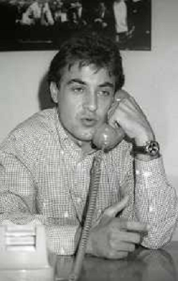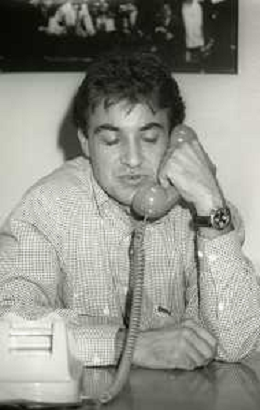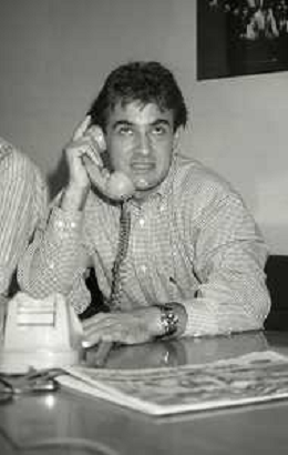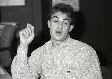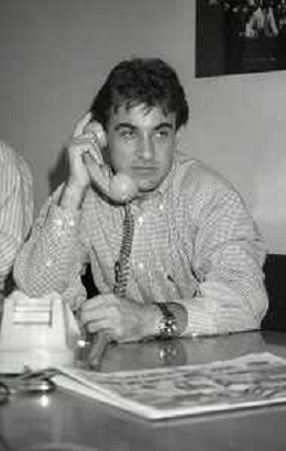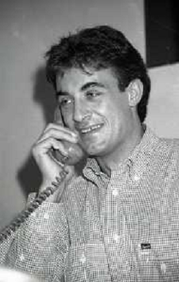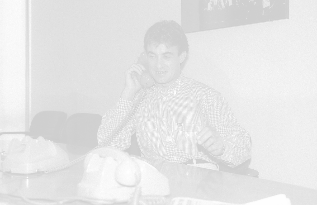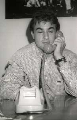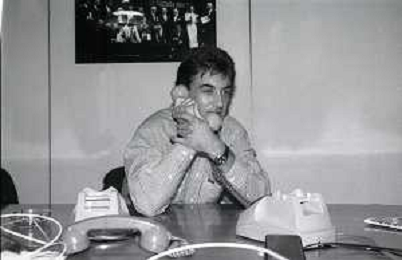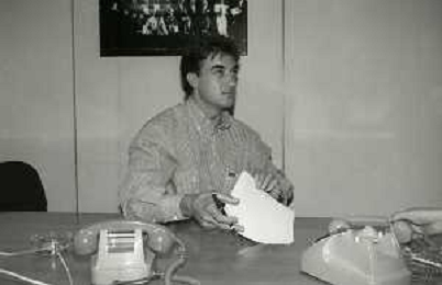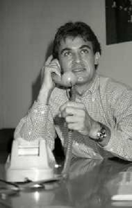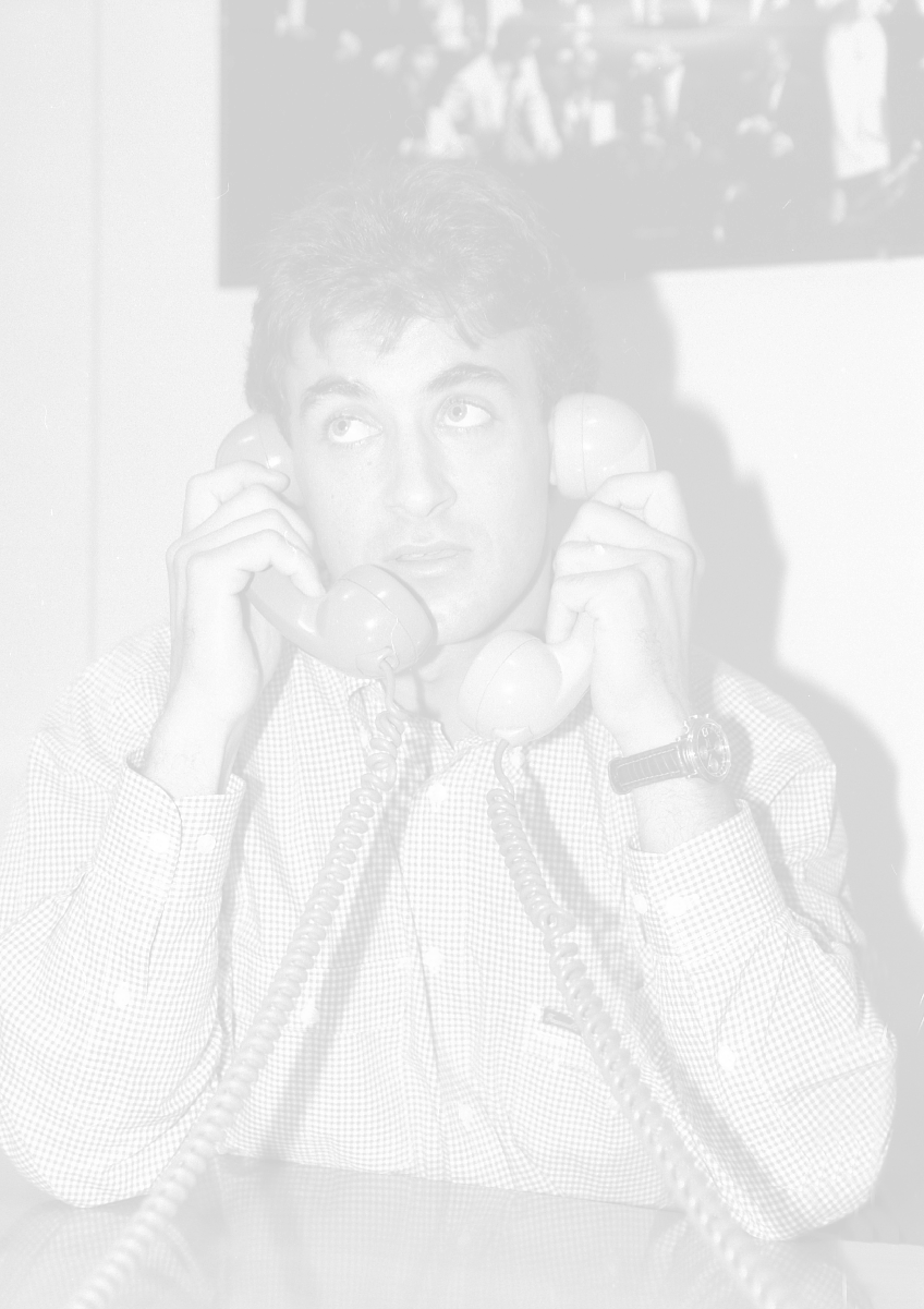 1993 MILANO REDAZIONE DELLA GAZZETTA DELLO SPORT OSPITE PER LE TELEFONATE COI LETTORI JEAN ALESI NELLA FOTO JEAN ALESI CON IL GIORNALISTA PINO ALLIEVI ED ENRICO MINAZZI AG ALDO LIVERANI SAS