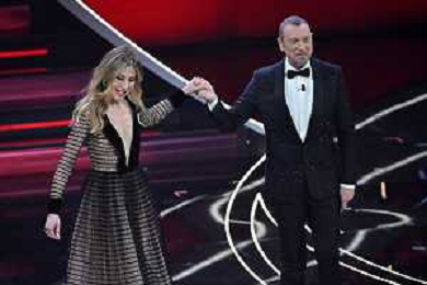 Francesca Fagnani e Amadeus Sanremo 2023 73mo Festival della Canzone Italiana - Seconda Serata Teatro Ariston - Sanremo (IM) 08-02-2023 foto Roberto Garavaglia/ag. Aldo Liverani sas / AGENZIA ALDO LIVERANI SAS