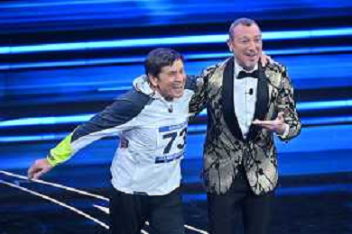 Gianni Morandi e Amadeus Sanremo 2023 73mo Festival della Canzone Italiana - Quarta Serata Teatro Ariston - Sanremo (IM) 10-02-2023 foto Roberto Garavaglia/ag. Aldo Liverani sas / AGENZIA ALDO LIVERANI SAS