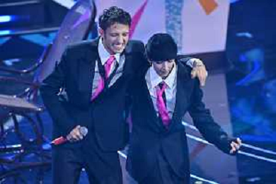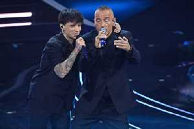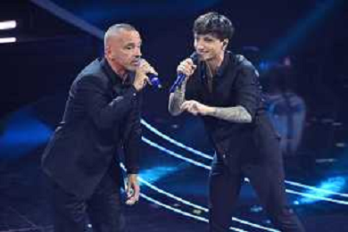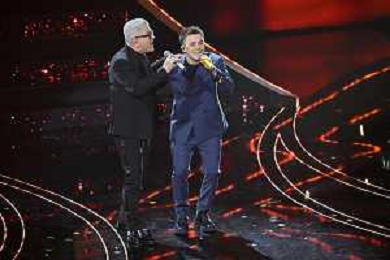 Ultimo ed Eros Ramazzotti Sanremo 2023 73mo Festival della Canzone Italiana - Quarta Serata Teatro Ariston - Sanremo (IM) 10-02-2023 foto Roberto Garavaglia/ag. Aldo Liverani sas / AGENZIA ALDO LIVERANI SAS