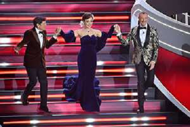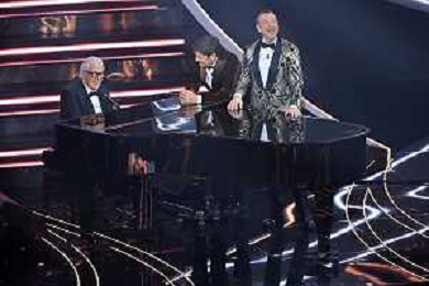 Gianni Morandi, Chiara Francini e Amadeus Sanremo 2023 73mo Festival della Canzone Italiana - Quarta Serata Teatro Ariston - Sanremo (IM) 10-02-2023 foto Roberto Garavaglia/ag. Aldo Liverani sas / AGENZIA ALDO LIVERANI SAS