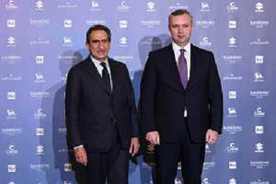 Alberto Biancheri SX sindaco Sanremo e Yaroslav Melnyk DX ambasciatore ucraino in Italia Sanremo 2023 73mo Festival della Canzone Italiana Photocall del 11 febbraio Casino’ Municipale - Sanremo (IM) 11-02-2023 foto Roberto Garavaglia/ag. Aldo Liverani sas / AGENZIA ALDO LIVERANI SAS