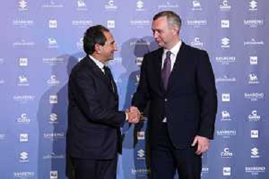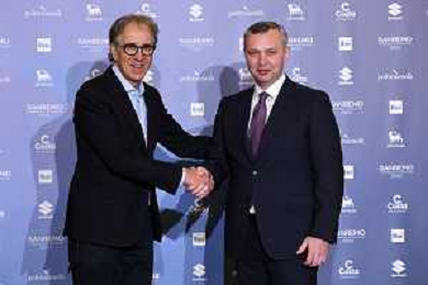 Carlo Fuortes SX amministratore delegato Rai e Yaroslav Melnyk DX ambasciatore ucraino in Italia Sanremo 2023 73mo Festival della Canzone Italiana Photocall del 11 febbraio Casino’ Municipale - Sanremo (IM) 11-02-2023 foto Roberto Garavaglia/ag. Aldo Liverani sas / AGENZIA ALDO LIVERANI SAS