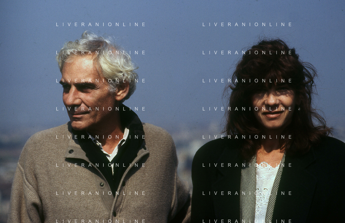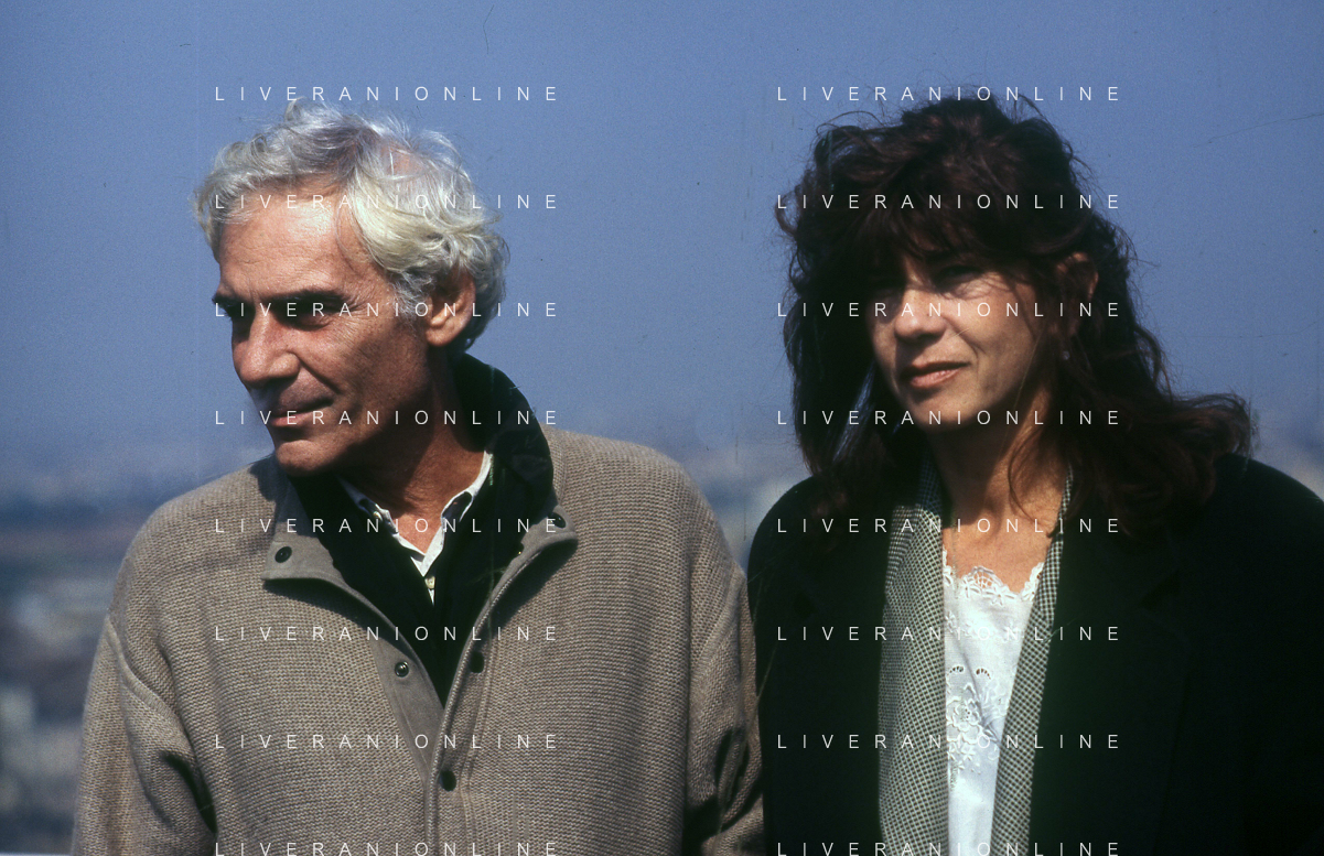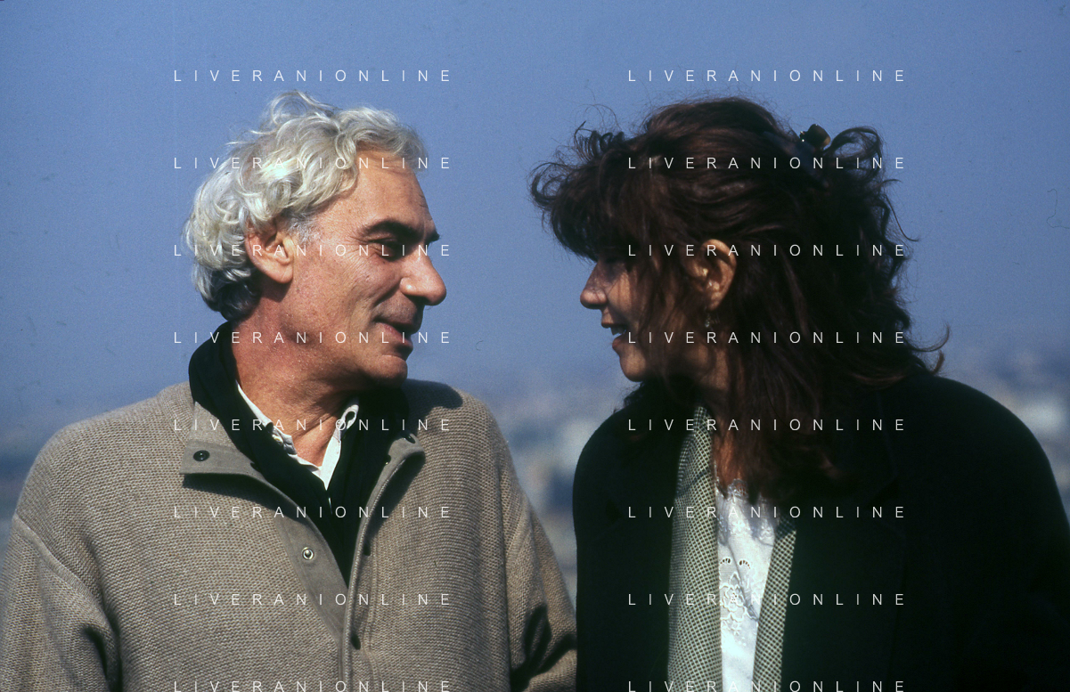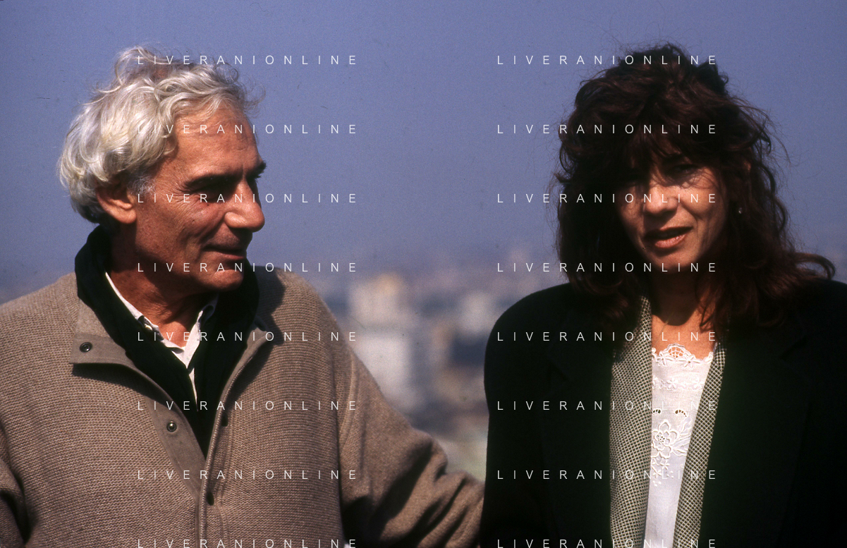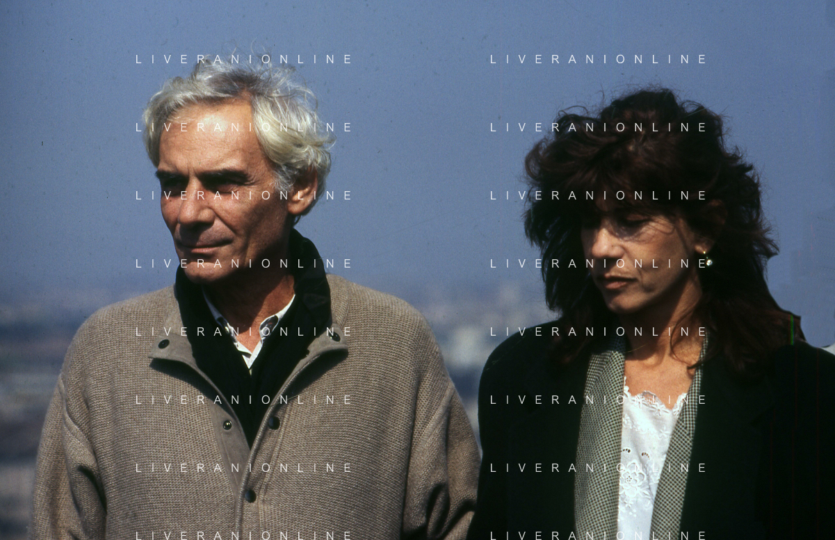 RETROSPETTIVA GIAN MARIA VOLONTE' ATTORE NELLA FOTO GIAN MARIA VOLONTE ' A MILANO NELL'ANNO 1990 TERRAZZA MARTINI CON ANGELICA IPPOLITO AG ALDO LIVERANI SAS
