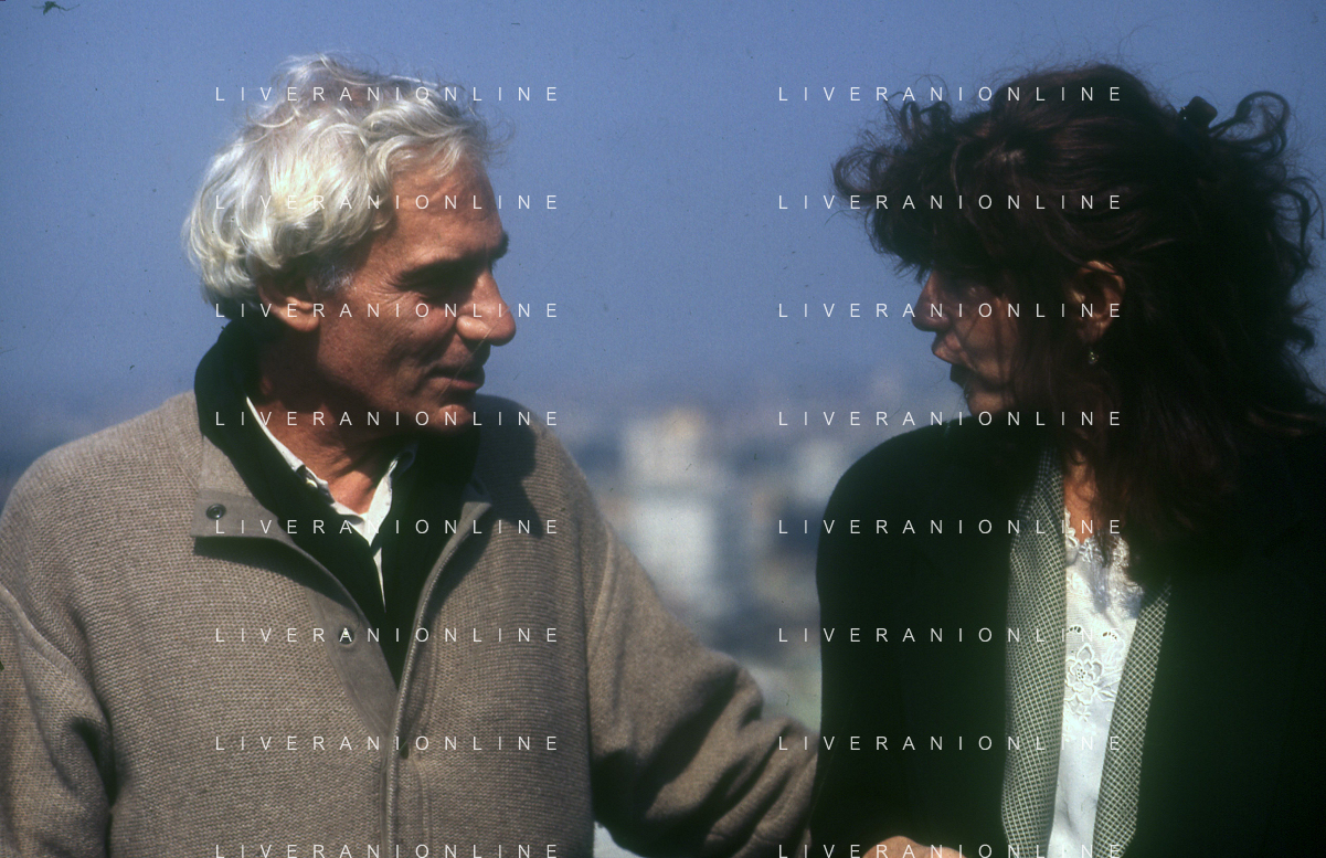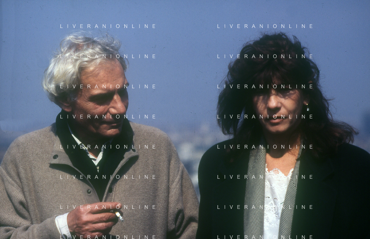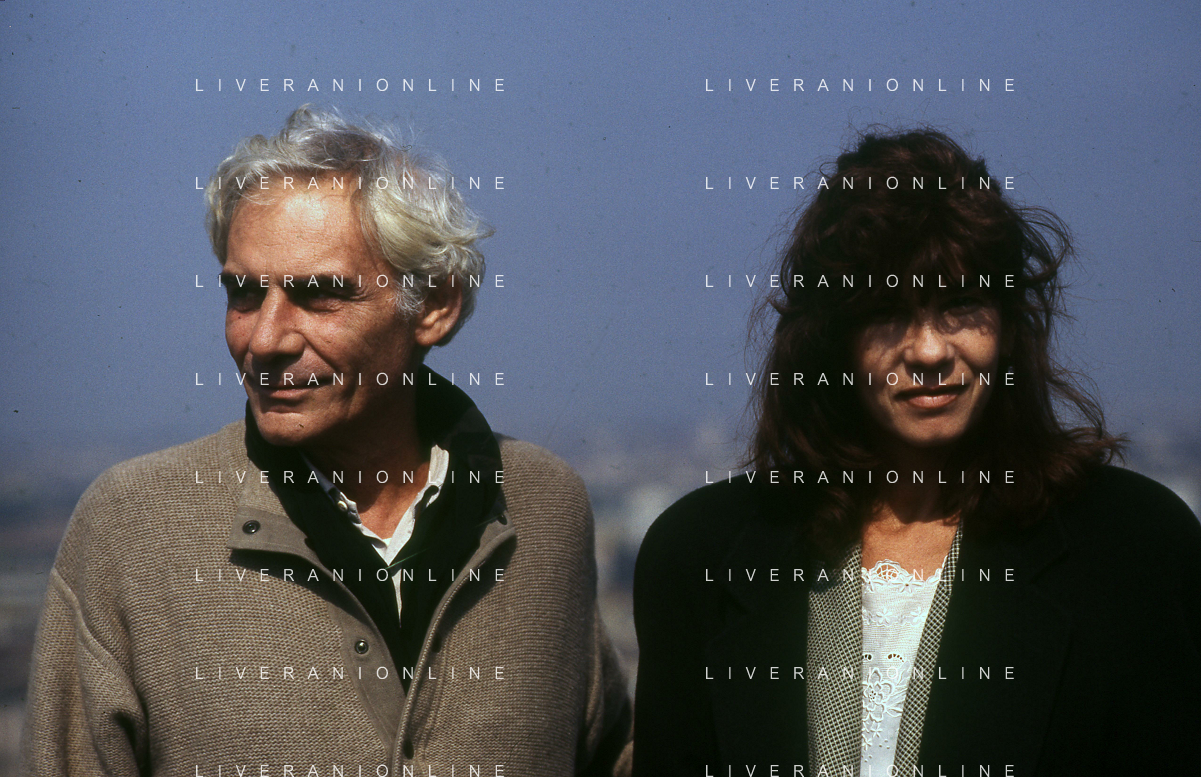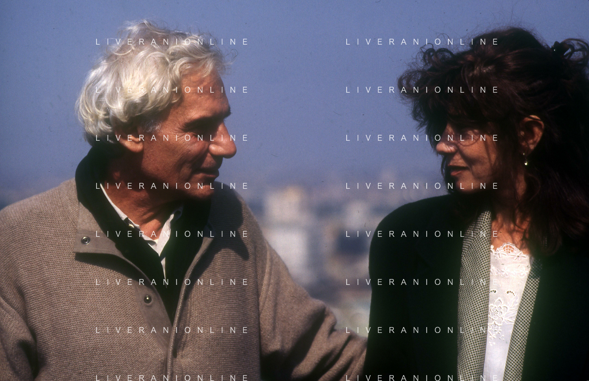 RETROSPETTIVA GIAN MARIA VOLONTE' ATTORE NELLA FOTO GIAN MARIA VOLONTE ' A MILANO NELL'ANNO 1990 TERRAZZA MARTINI CON ANGELICA IPPOLITO AG ALDO LIVERANI SAS