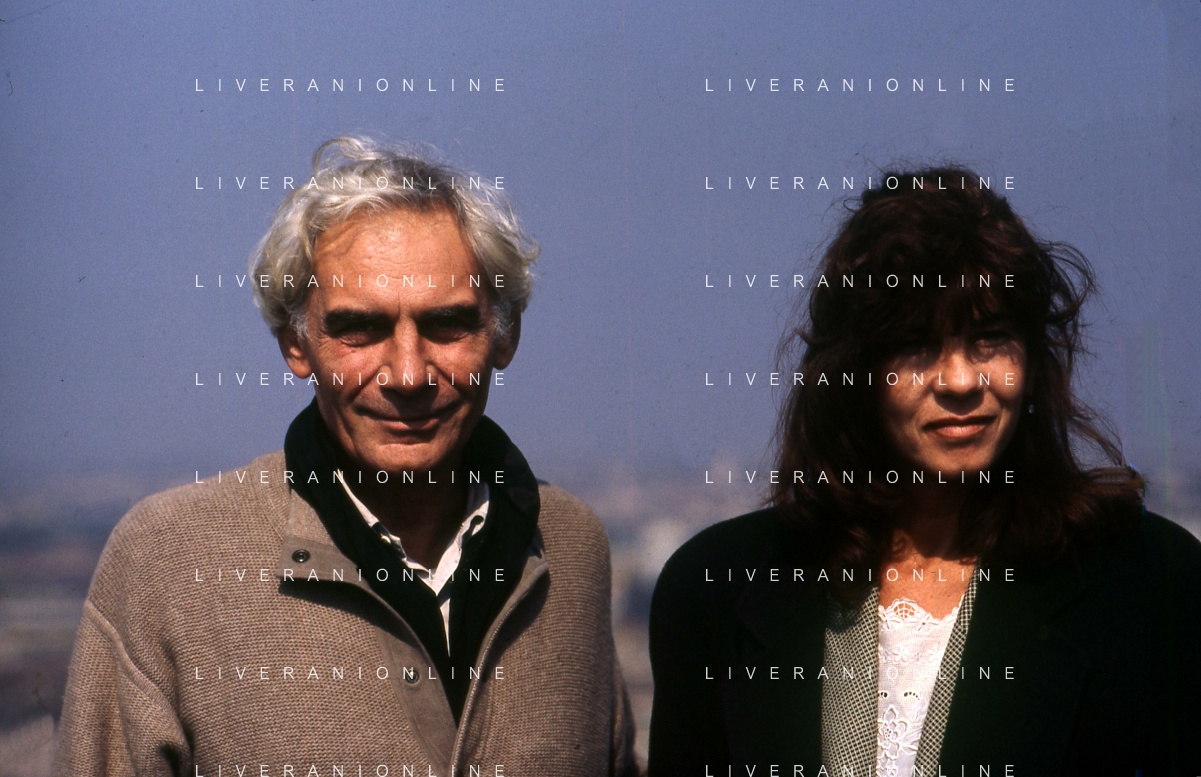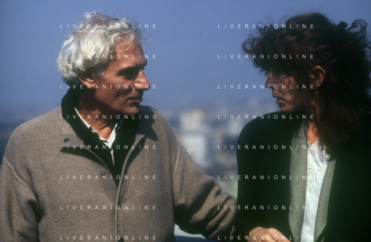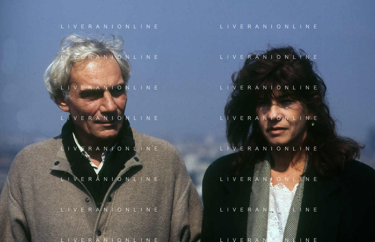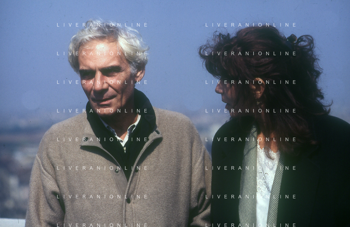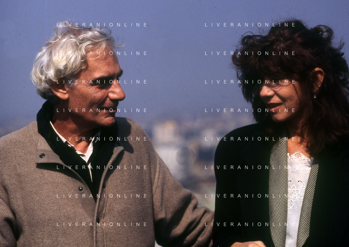 RETROSPETTIVA GIAN MARIA VOLONTE' ATTORE NELLA FOTO GIAN MARIA VOLONTE ' A MILANO NELL'ANNO 1990 TERRAZZA MARTINI CON ANGELICA IPPOLITO AG ALDO LIVERANI SAS