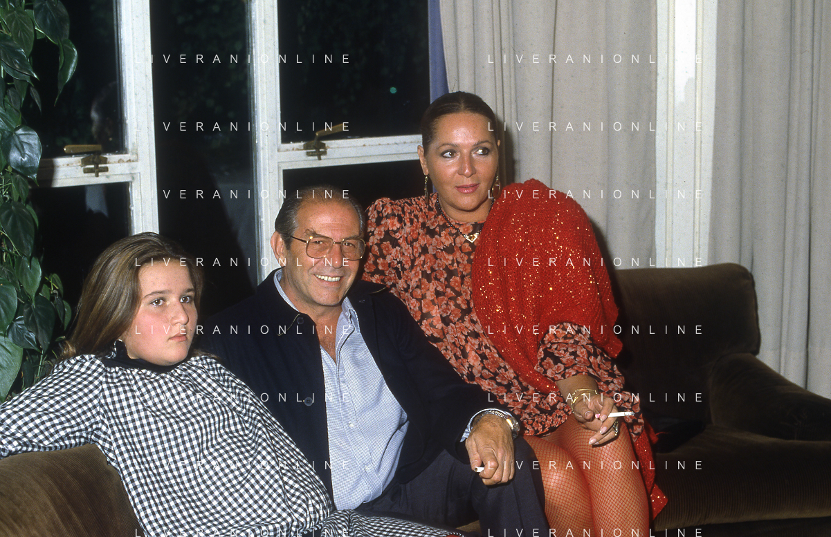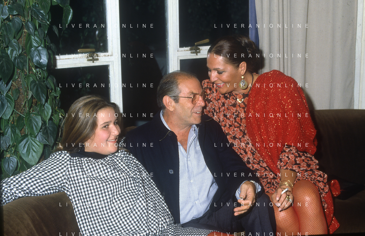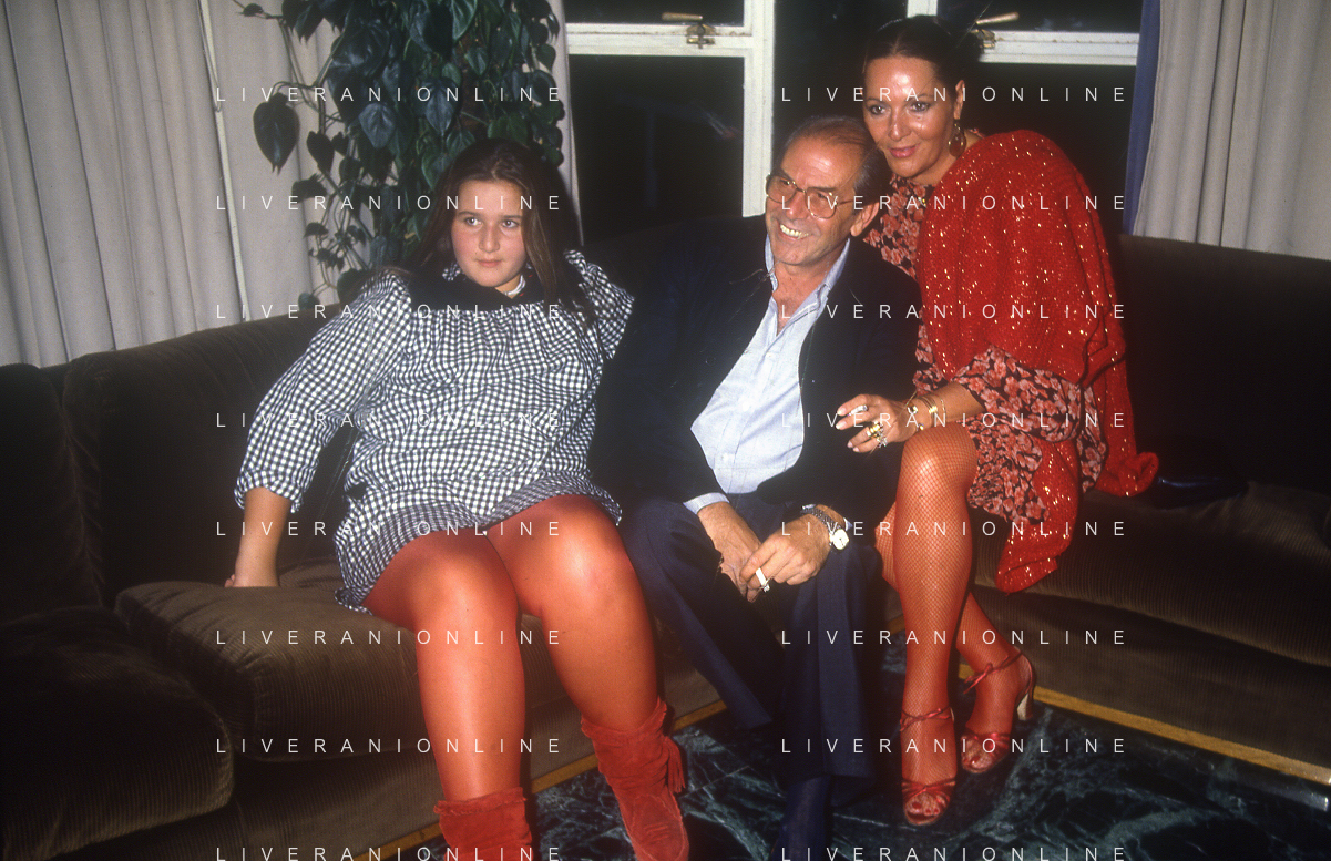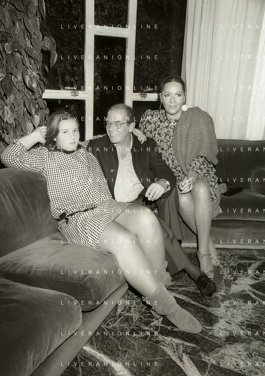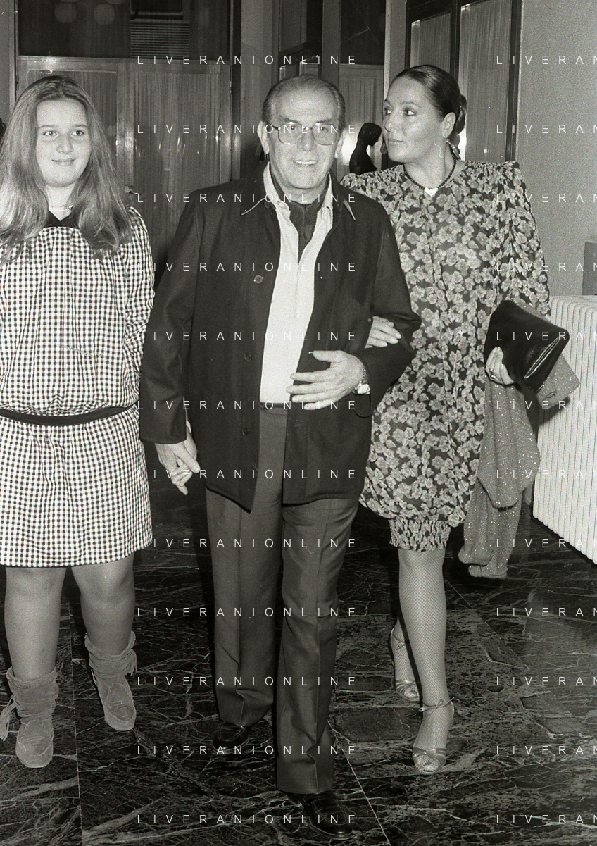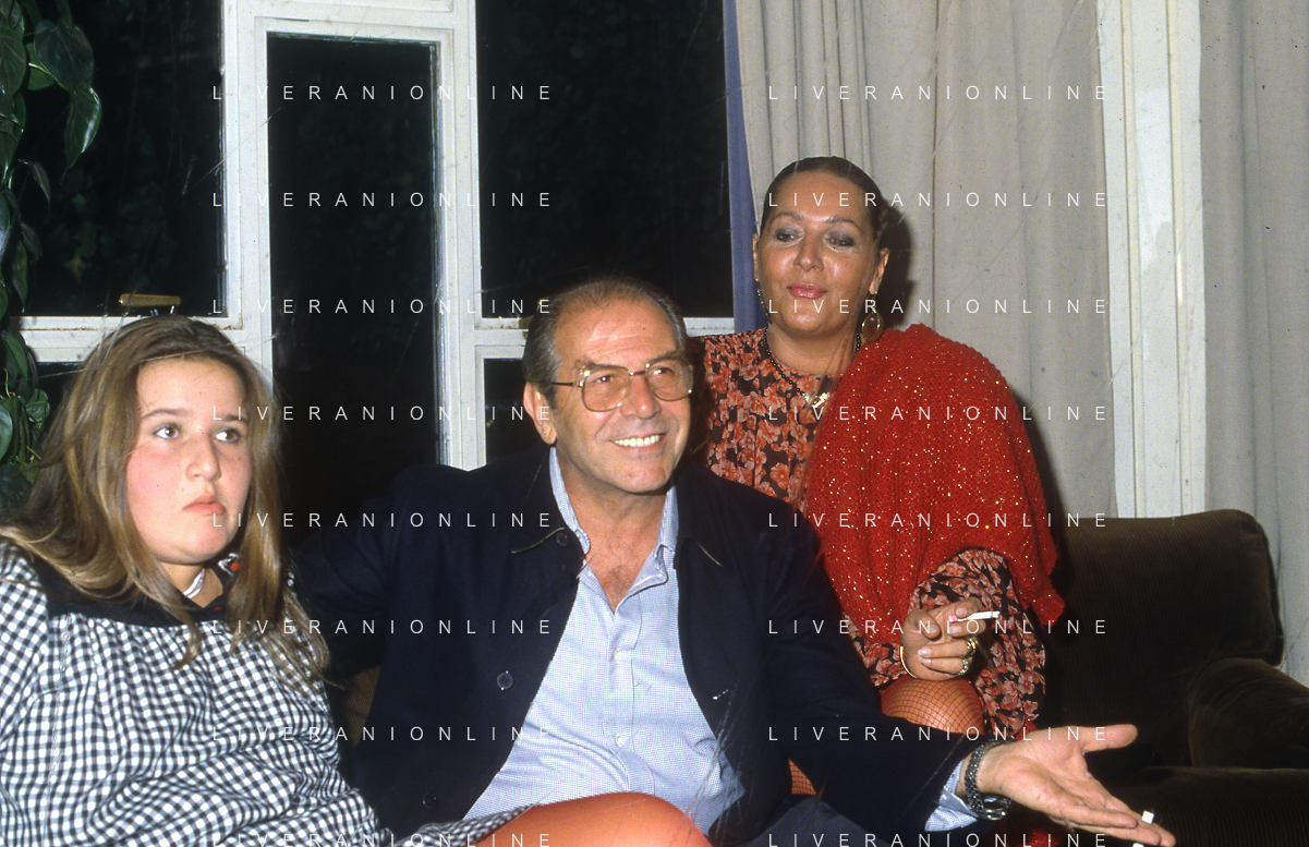 RETROSPETTIVA ENRICO MARIA SALERNO ATTORE NELLA FOTO ENRICO MARIA SALERNO NELL'ANNO 1983 CON LA MOGLIE MARISA VALENTI E LA FIGLIA ALESSIA A SAINT VINCENT AG ALDO LIVERANI SAS