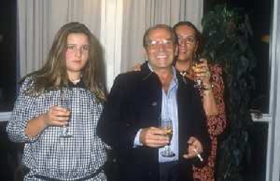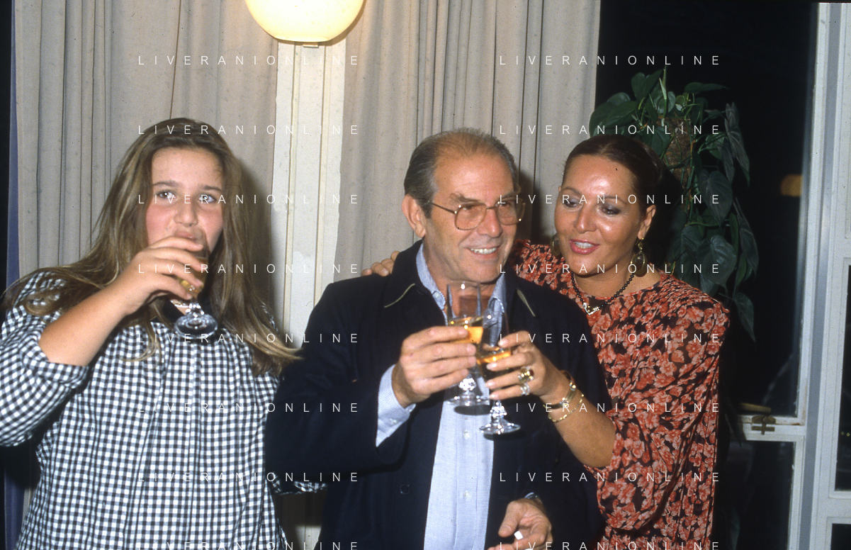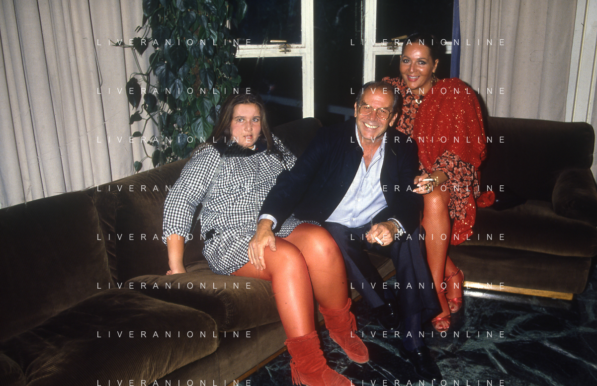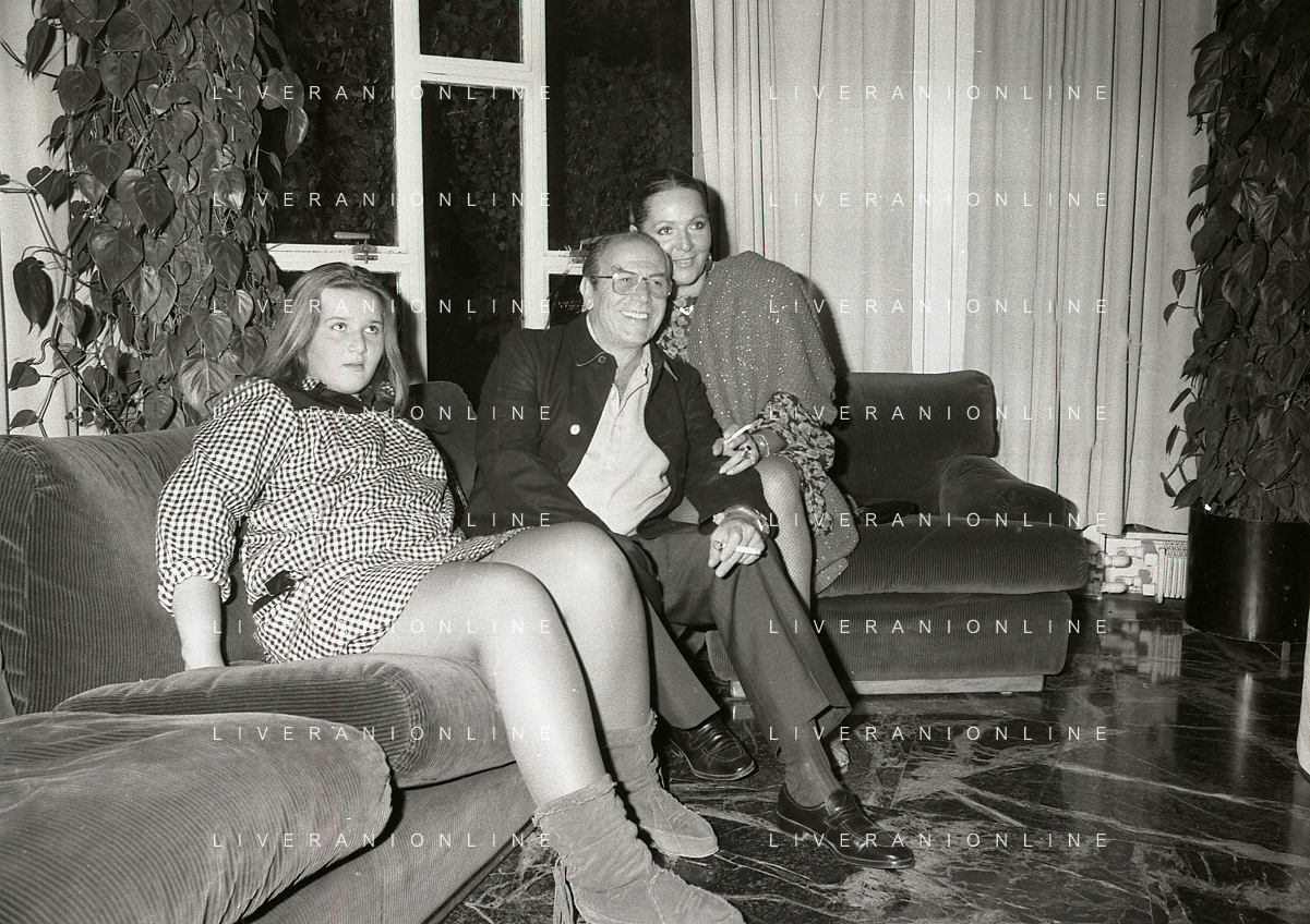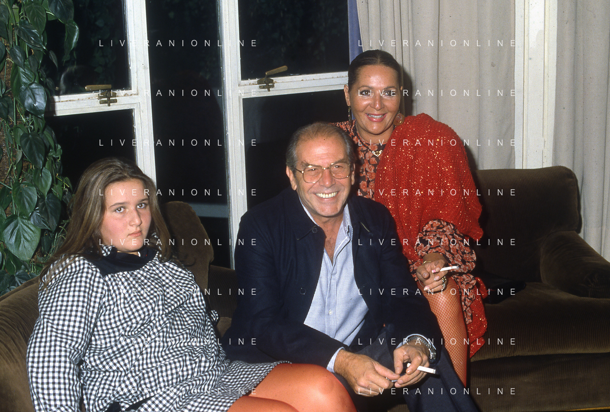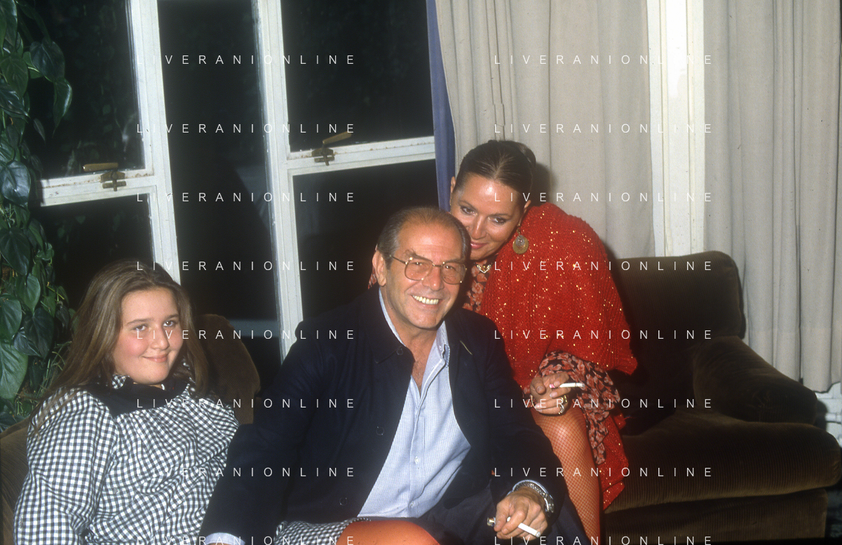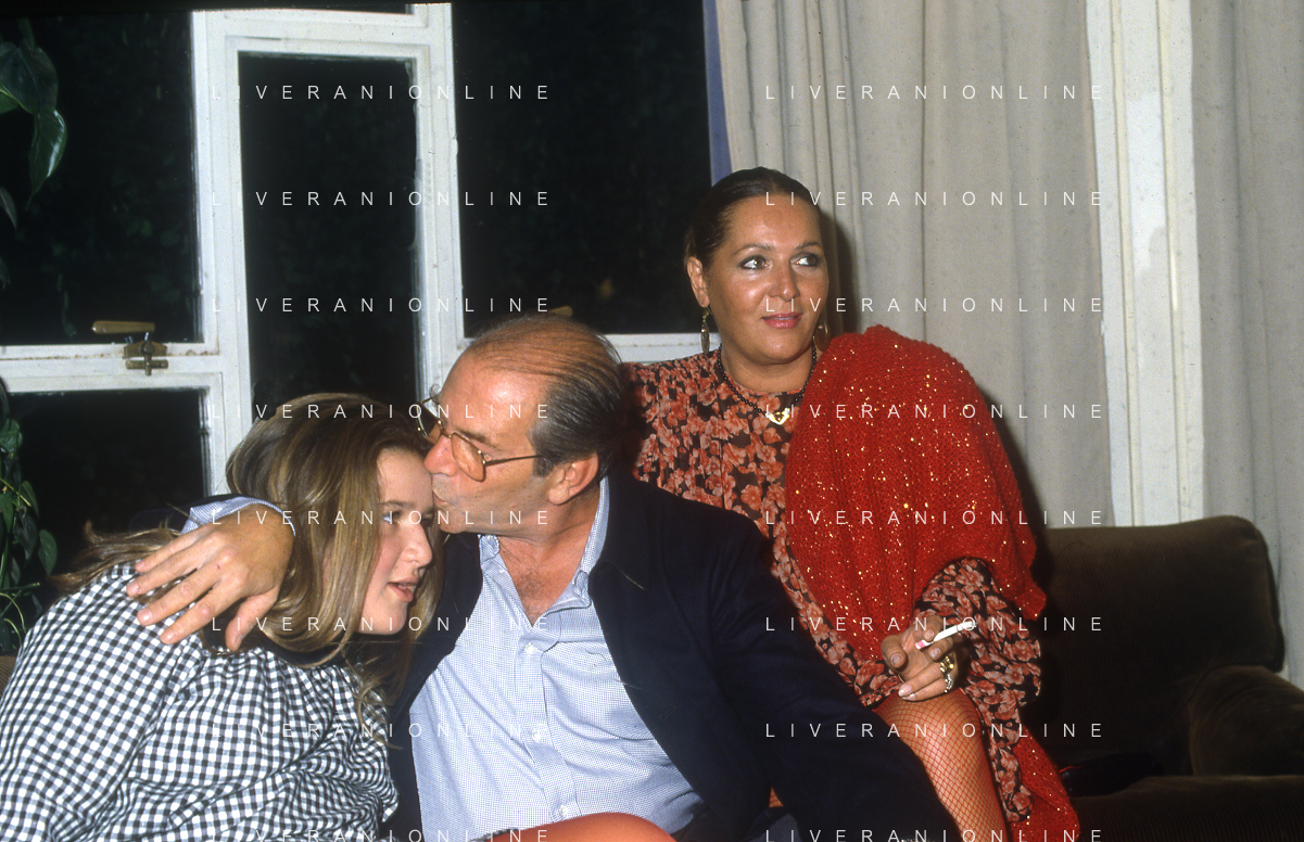 RETROSPETTIVA ENRICO MARIA SALERNO ATTORE NELLA FOTO ENRICO MARIA SALERNO NELL'ANNO 1983 CON LA MOGLIE MARISA VALENTI E LA FIGLIA ALESSIA A SAINT VINCENT AG ALDO LIVERANI SAS