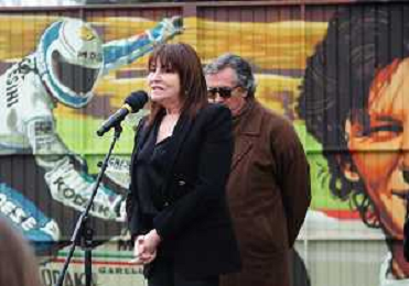 IMOLA 23 02 2023 AUTODROMO ENZO E DINO FERRARI VARIANTE ALTA "CIAO FAUSTO" PER RICORDARE UN GRANDE CAMPIONE IMOLESE E INAUGURAZIONE DEL MURALES DEDICATO A FAUSTO GRESINI L'AUTORE FUNGO NELLA FOTO NADIA GRESINI MOGLIE DI FAUSTO FOTO GIANNI SANNA-AG ALDO LIVERANI SAS