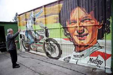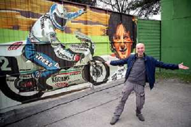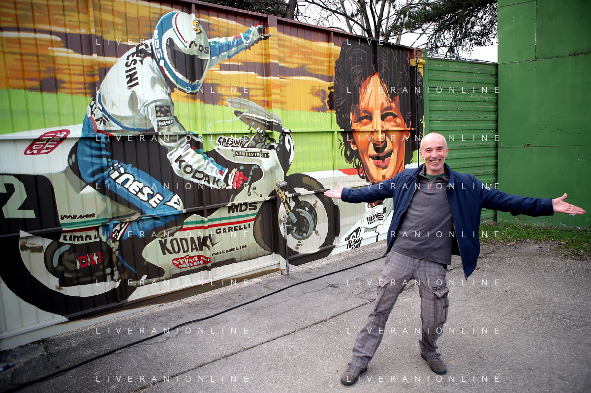 IMOLA 23 02 2023 AUTODROMO ENZO E DINO FERRARI VARIANTE ALTA "CIAO FAUSTO" PER RICORDARE UN GRANDE CAMPIONE IMOLESE E INAUGURAZIONE DEL MURALES DEDICATO A FAUSTO GRESINI L'AUTORE FUNGO NELLA FOTO FUNGO L'AUTORE DEL MURALES FOTO GIANNI SANNA-AG ALDO LIVERANI SAS