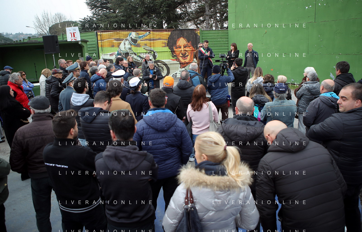 IMOLA 23 02 2023 AUTODROMO ENZO E DINO FERRARI VARIANTE ALTA "CIAO FAUSTO" PER RICORDARE UN GRANDE CAMPIONE IMOLESE E INAUGURAZIONE DEL MURALES DEDICATO A FAUSTO GRESINI L'AUTORE FUNGO NELLA FOTO PUBBLICO FOTO GIANNI SANNA-AG ALDO LIVERANI SAS